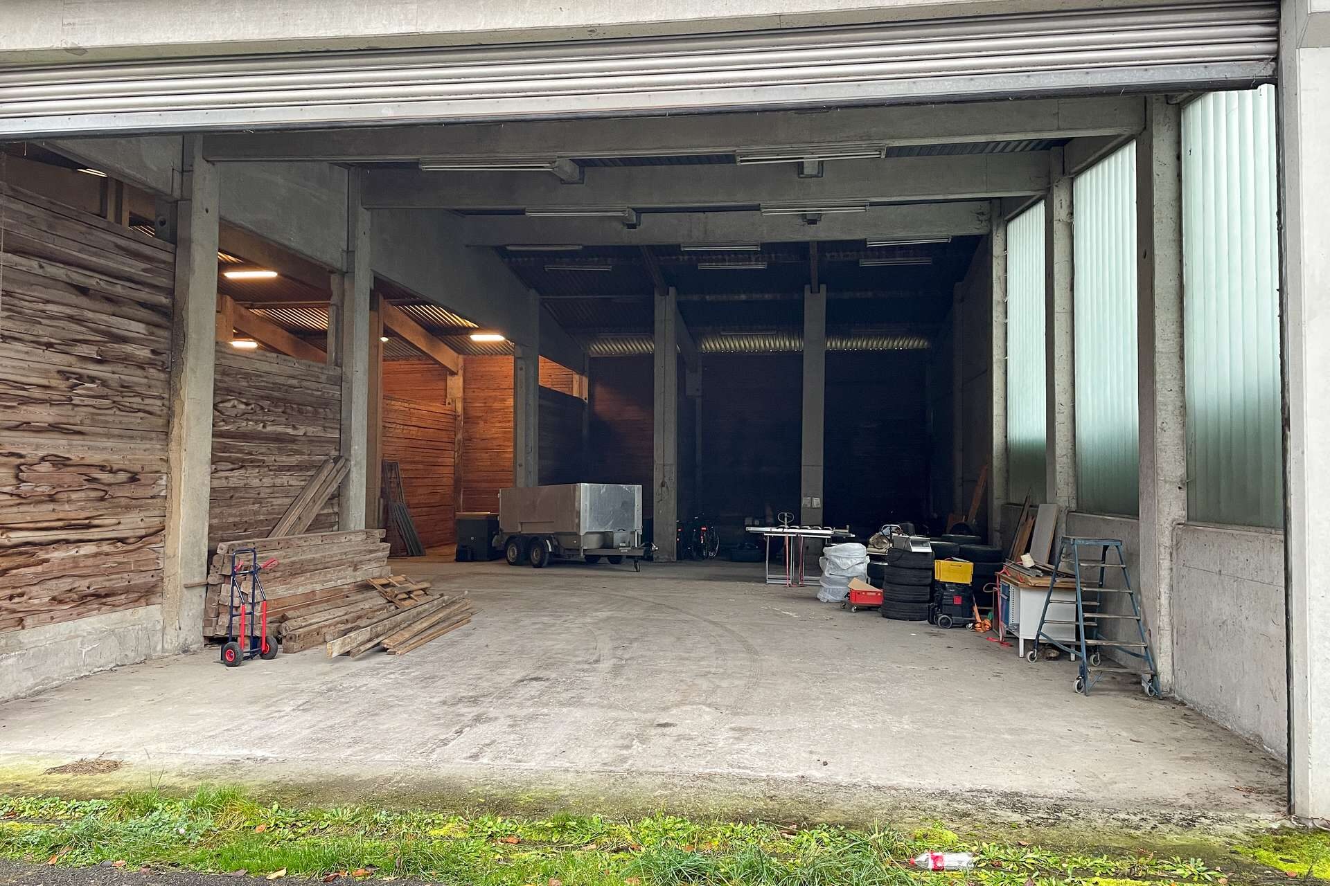 Die Halle ist mit einem großen LKW jeweils von rechts und links durch zwei hohe elektrisches Rolltore befahrbar. Es braucht nicht gewendet zu werden.