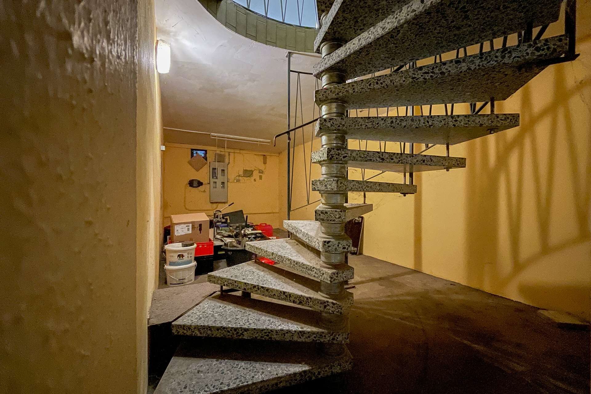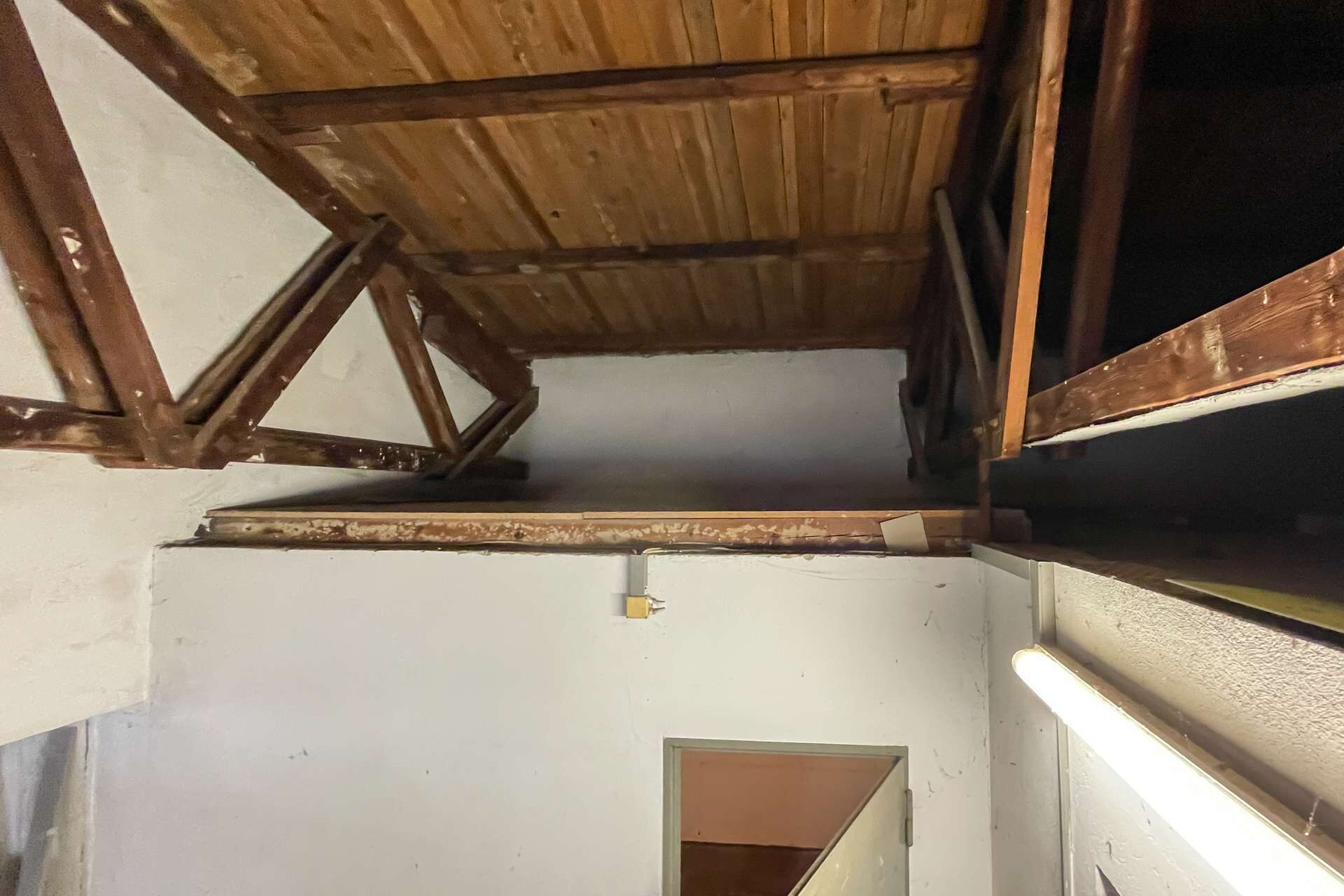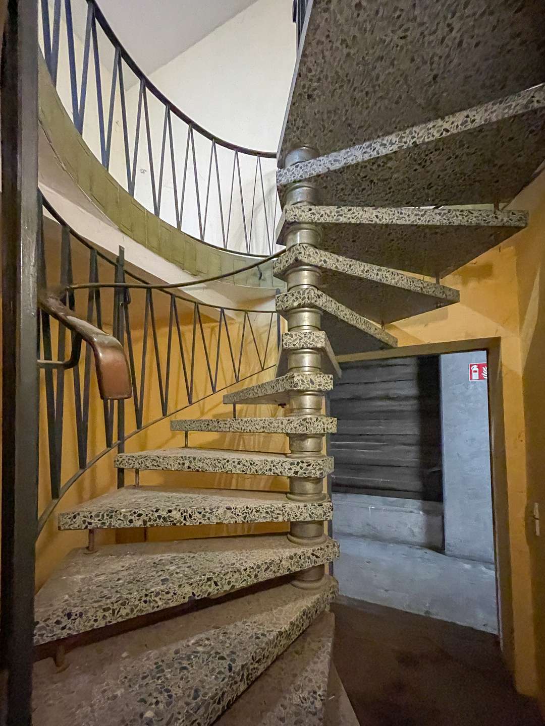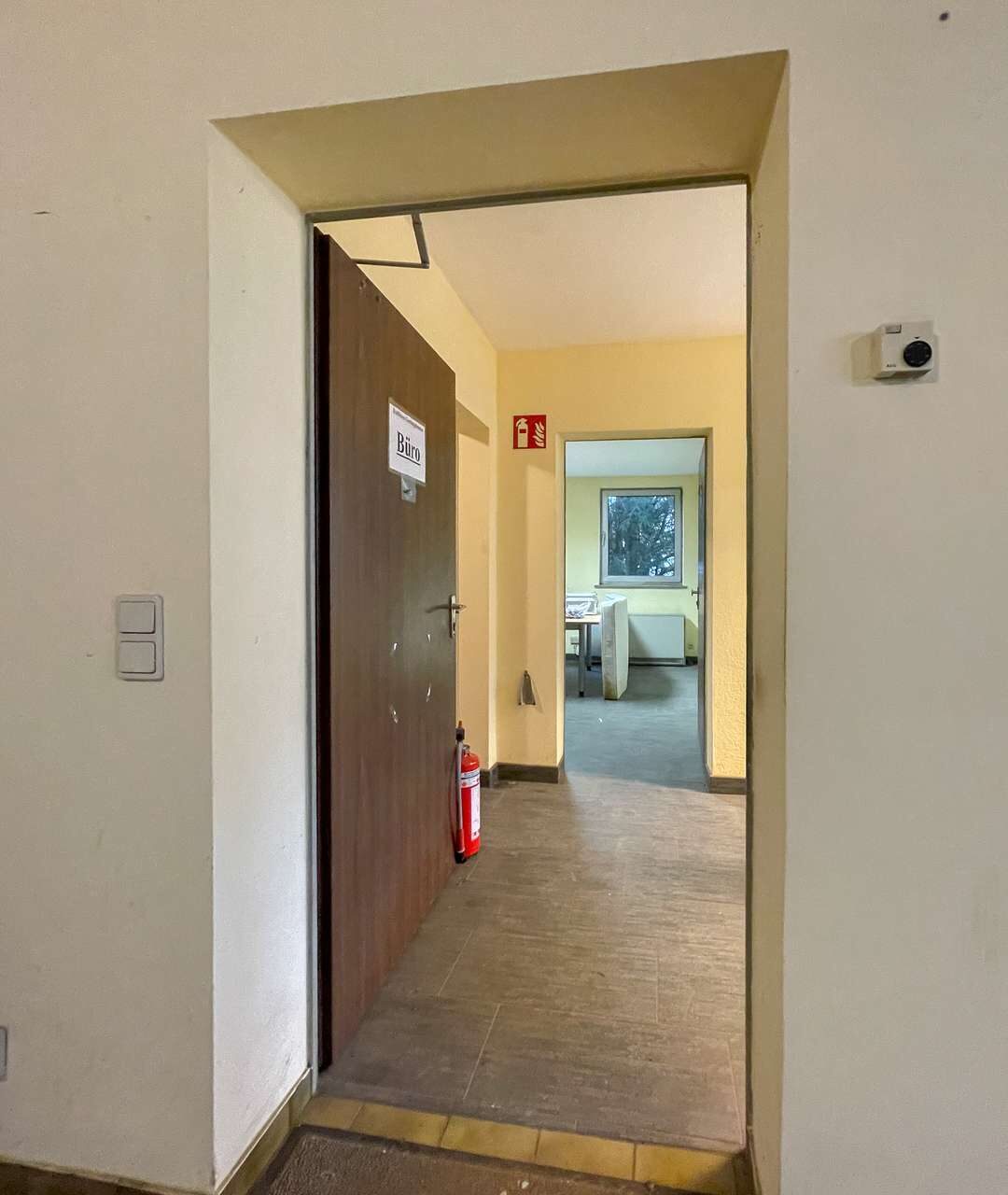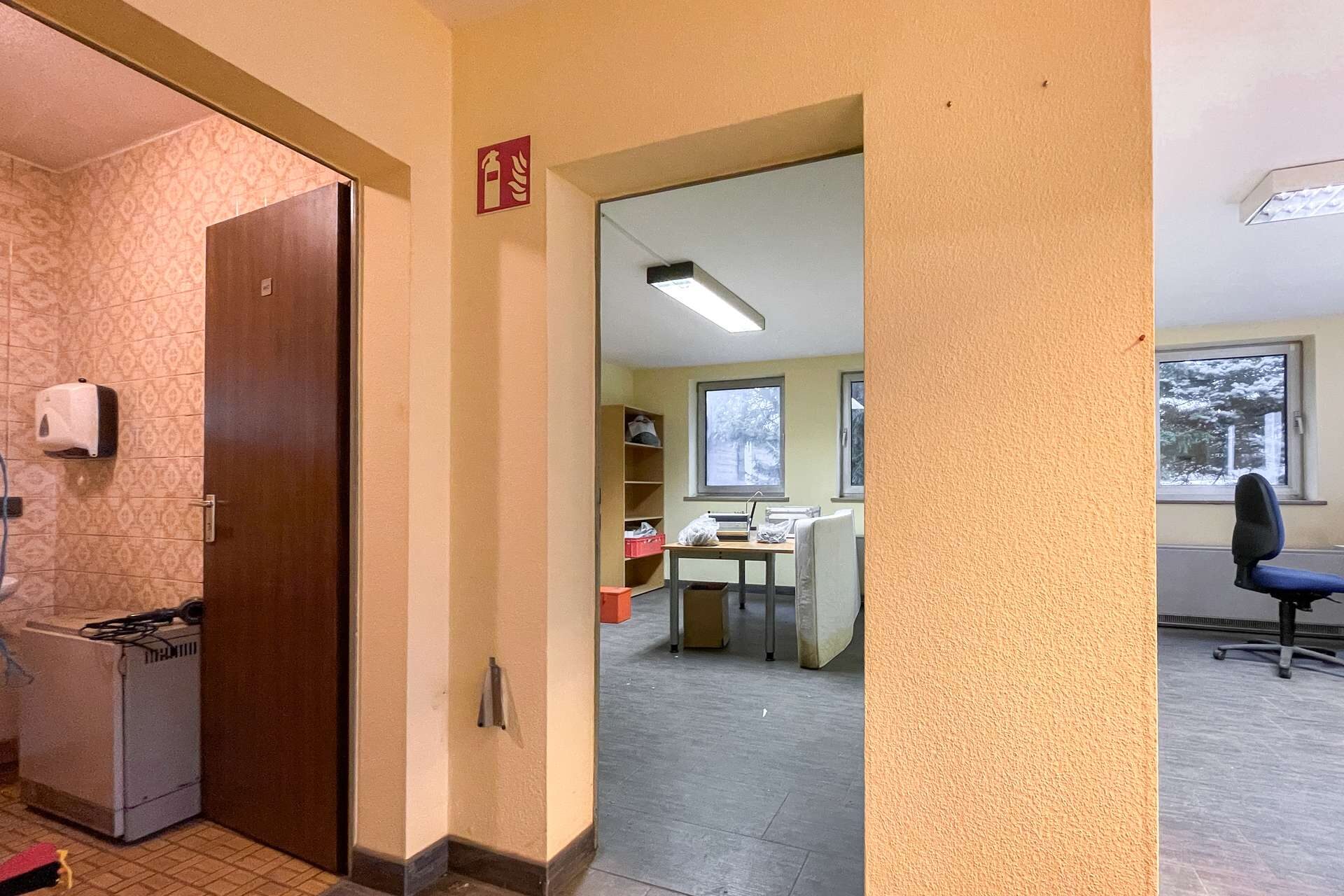 In dem Elektroverteilraum führt eine Wendeltreppe zum Büro und weiteren Lagerräumen im 1 OG. Das Büro besteht aus 2 Zimmern, WC und Dusche.