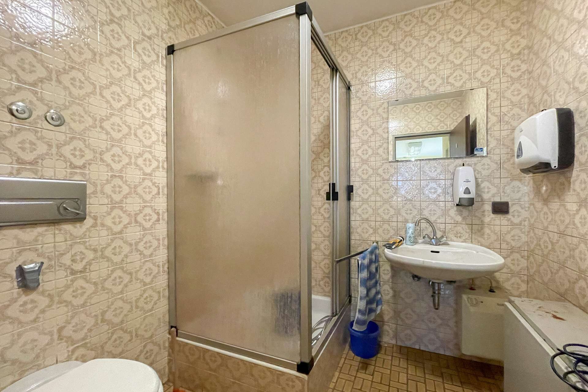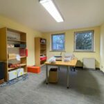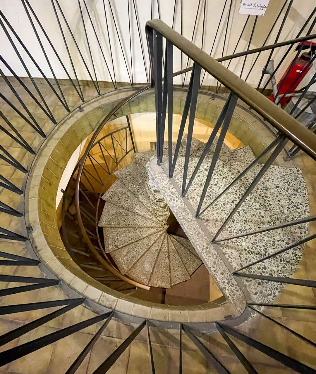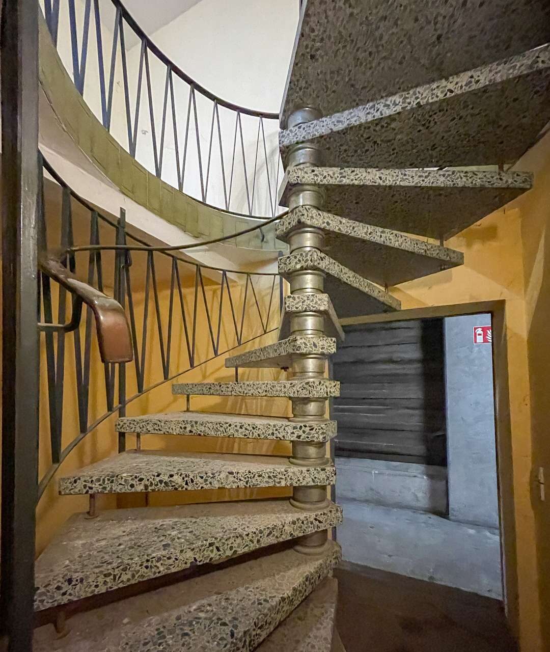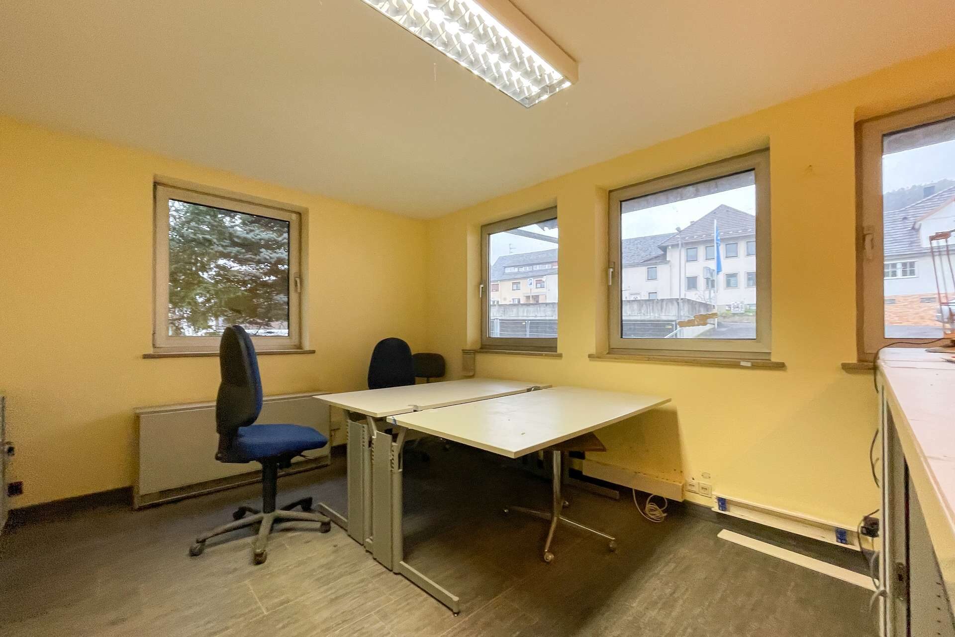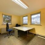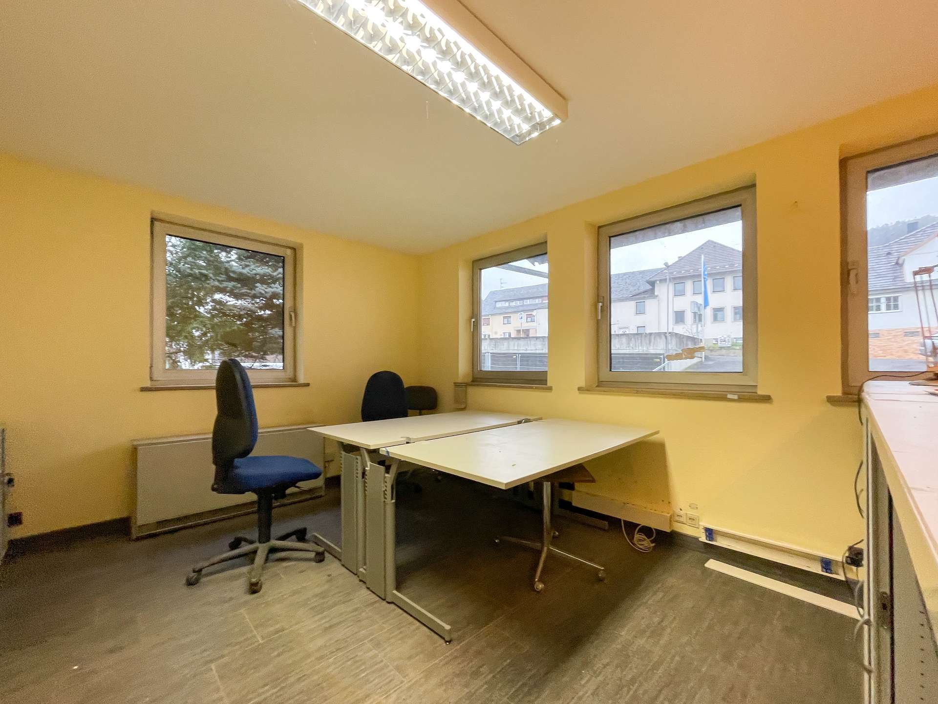 In dem Elektroverteilraum führt eine Wendeltreppe zum Büro und weiteren Lagerräumen im 1 OG. Das Büro besteht aus 2 Zimmern, WC und Dusche.