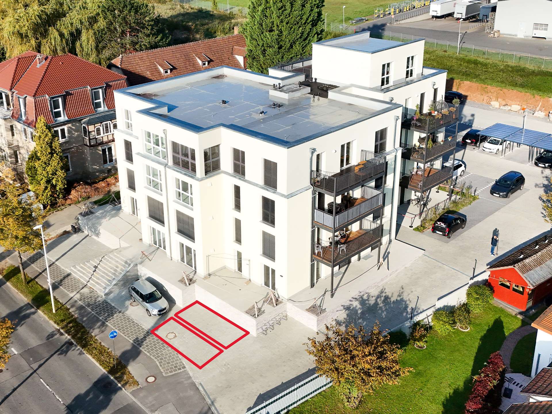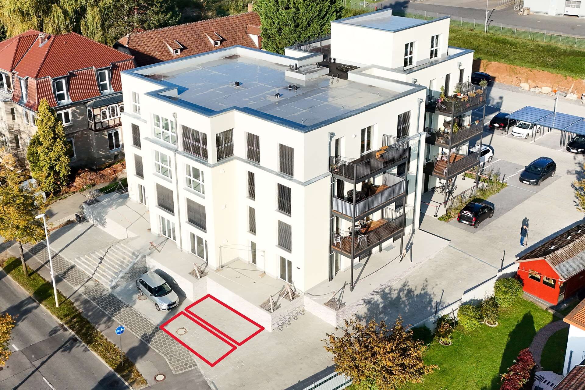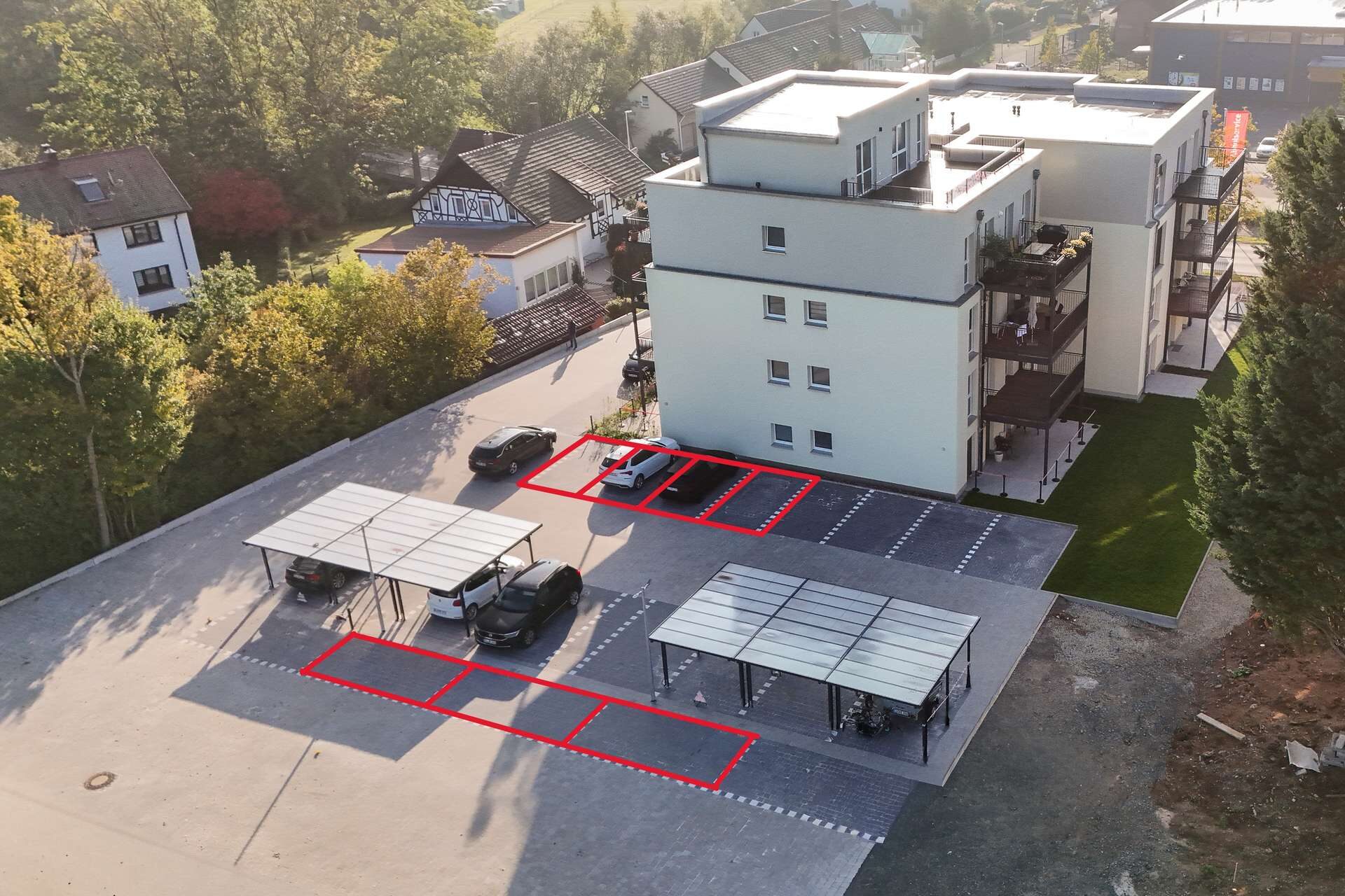 Zur Wohnung gehören ein Stellplatz und ein Kellerabteil, die praktischen Stauraum und komfortables Parken direkt am Haus ermöglichen.