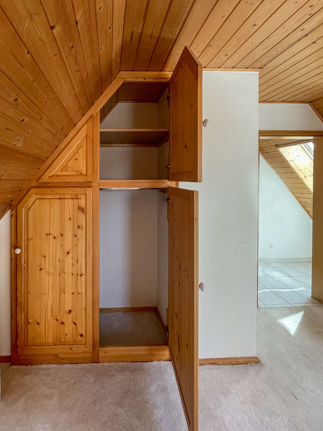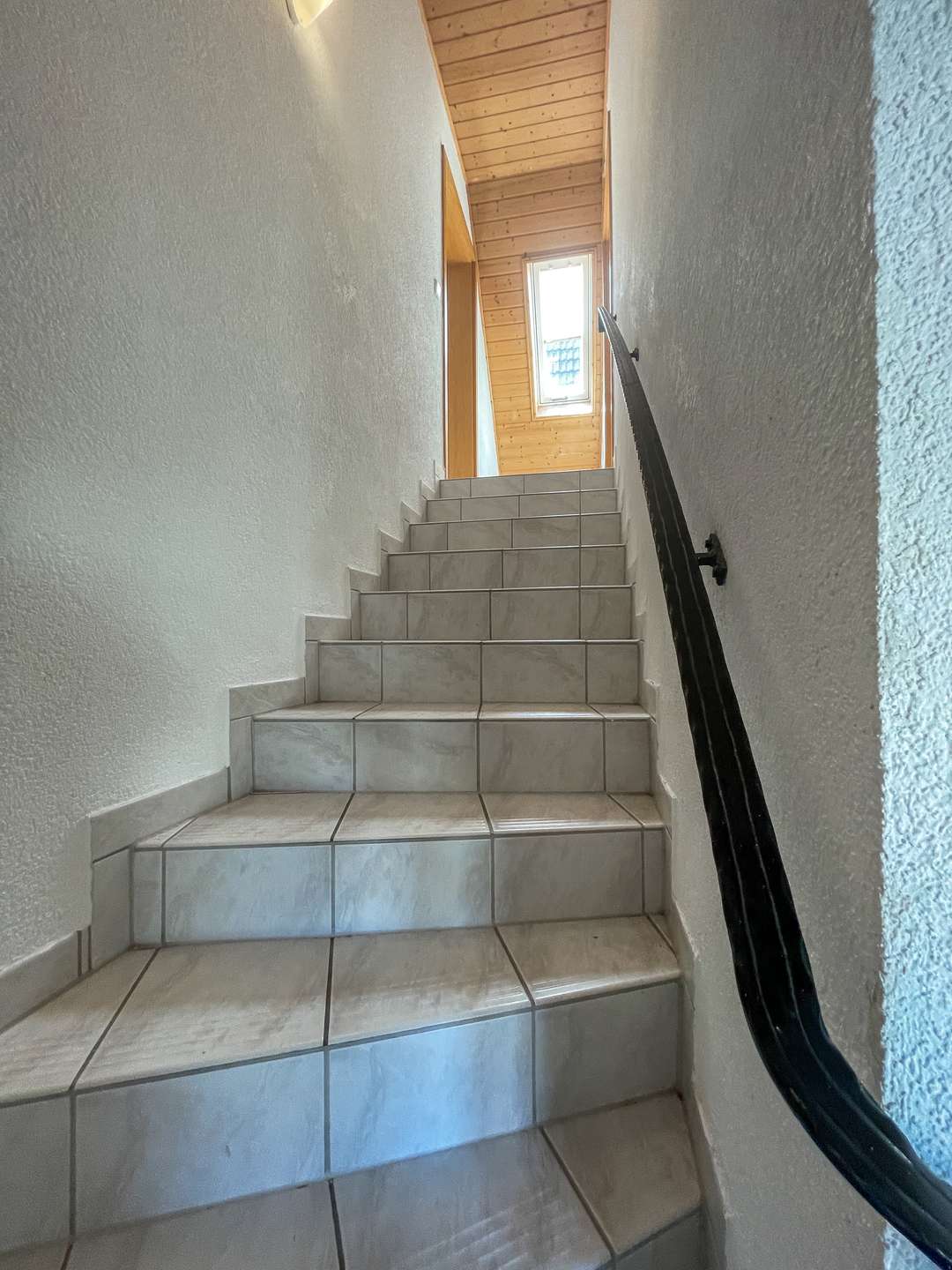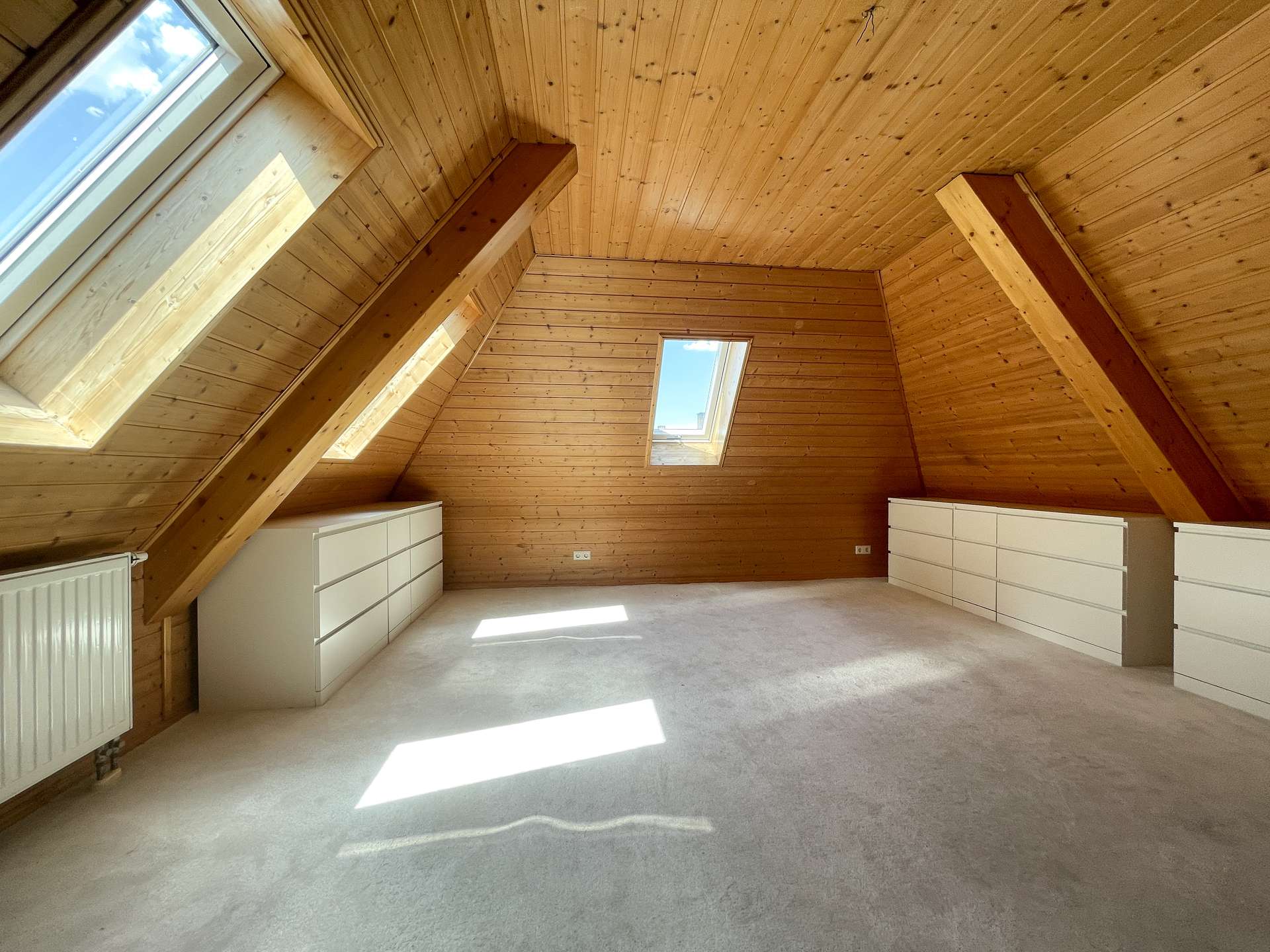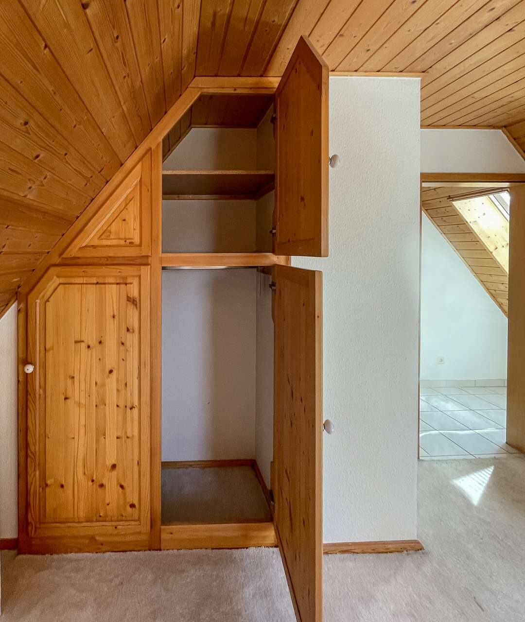Das Dachgeschoss beherbergt ein ruhiges Schlafzimmer sowie ein geräumiges Badezimmer mit Badewanne und Dusche – perfekt zum Entspannen am Abend.