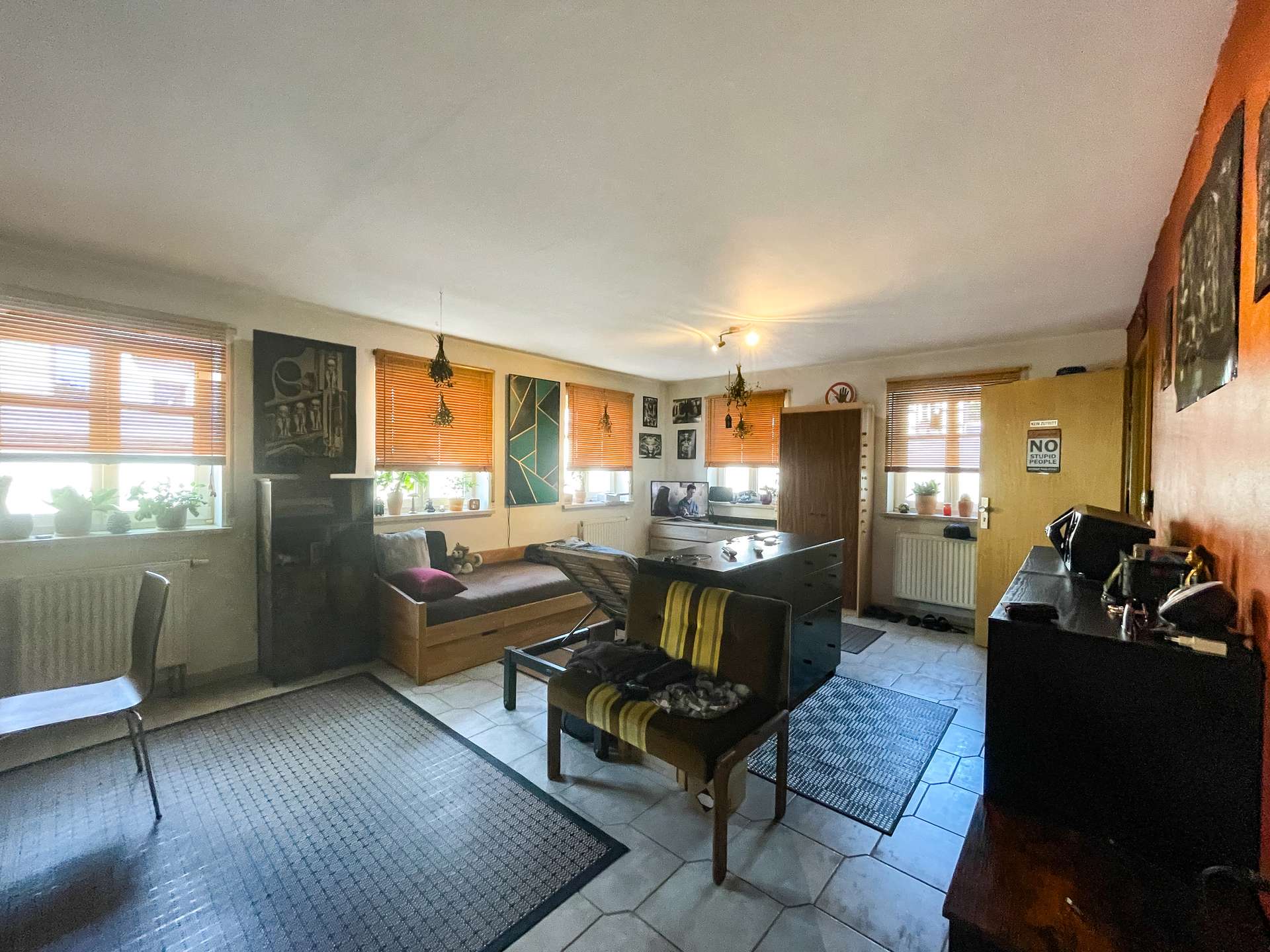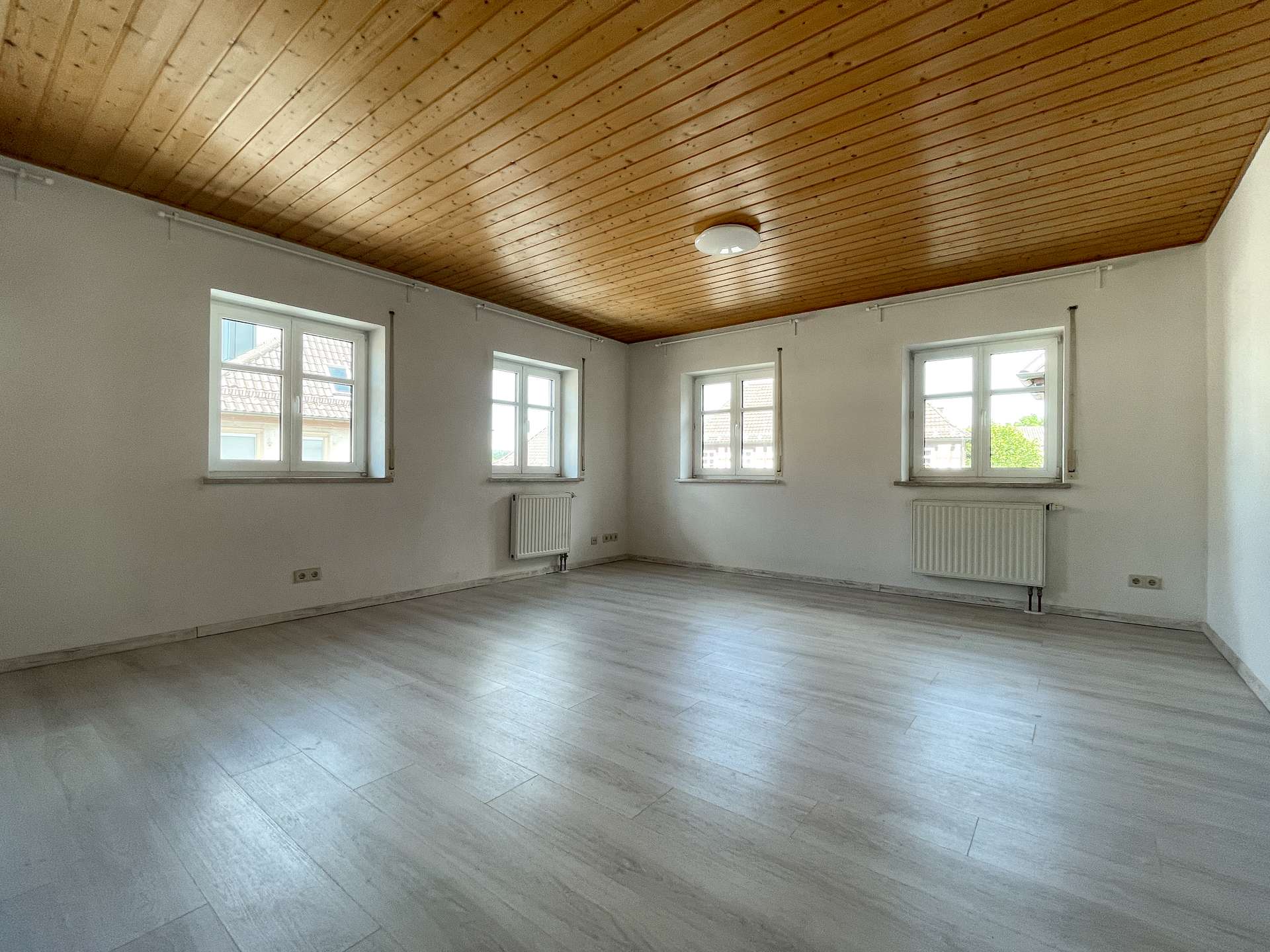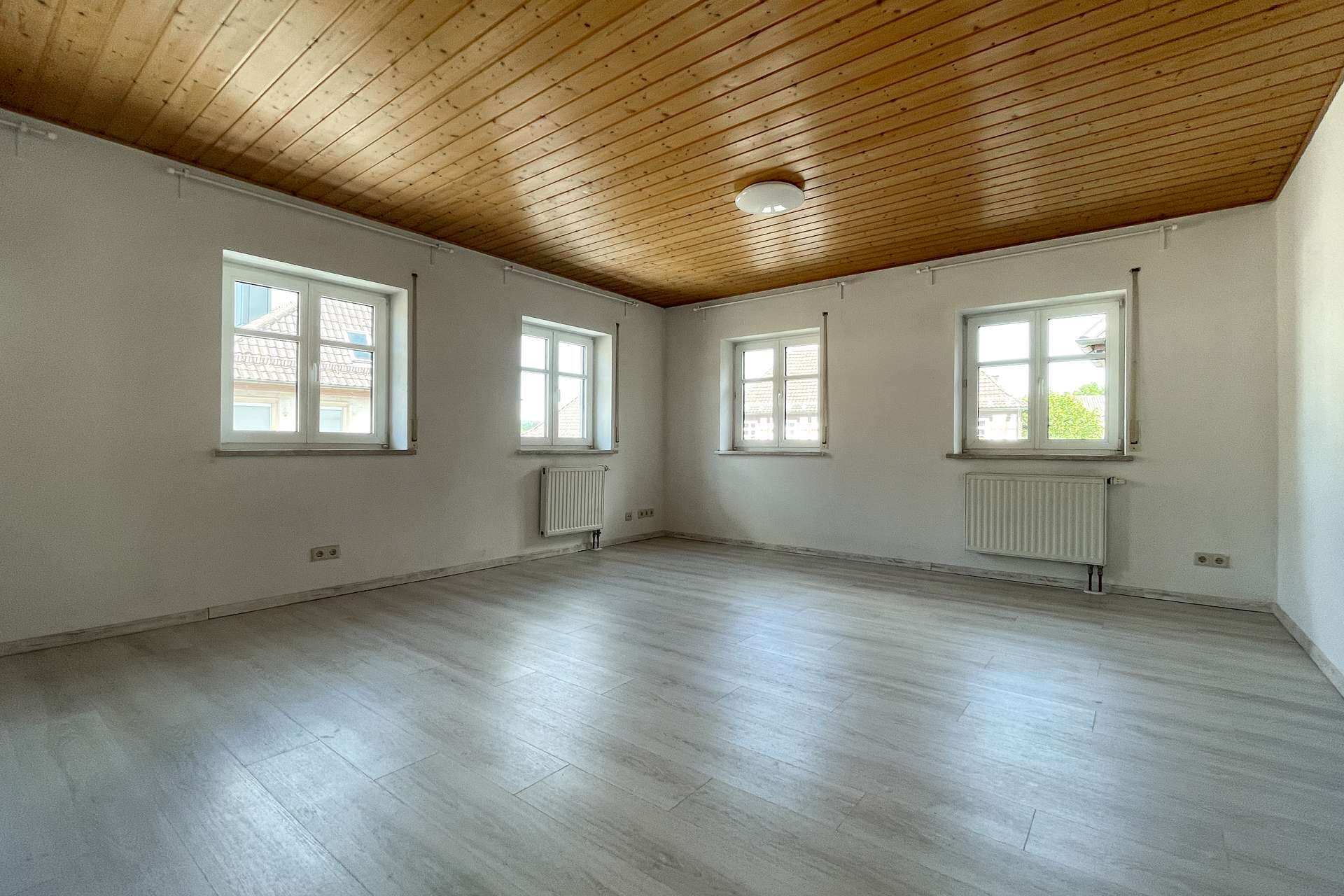 In der Maisonette Wohnung im Obergeschoss erwartet Sie ein helles, freundliches Wohnzimmer, das durch seine offene Gestaltung zum Verweilen und Wohlfühlen einlädt. Große Fenster sorgen für viel Tageslicht und schaffen eine angenehme Wohnatmosphäre.