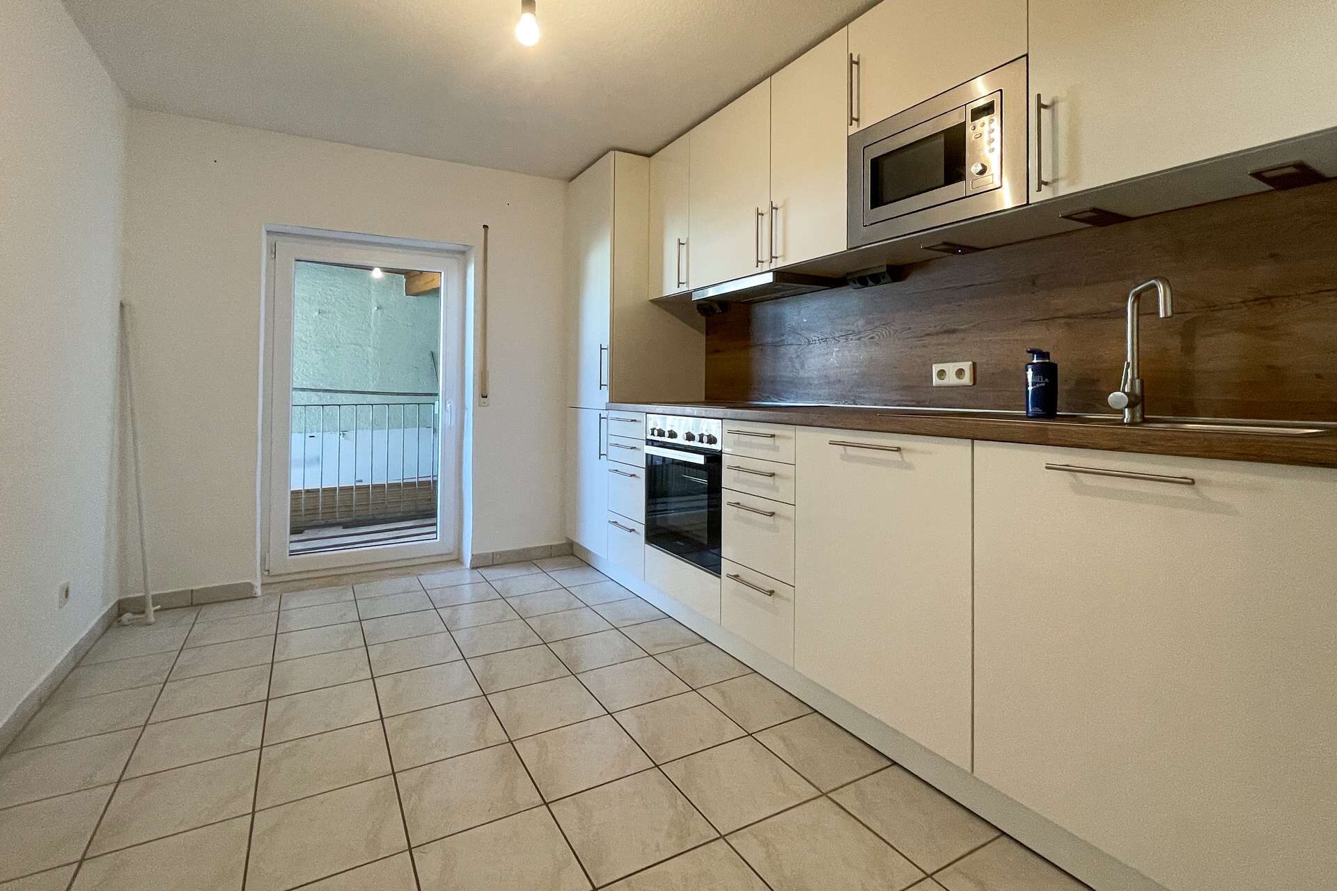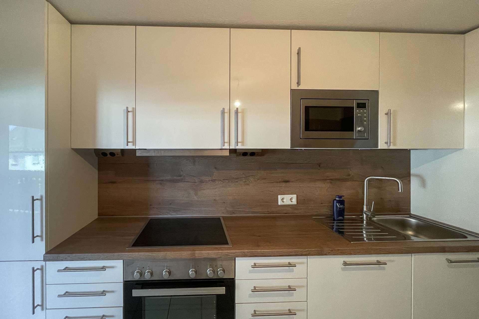 Die angrenzende Küche ist mit einer modernen Einbauküche ausgestattet, die bereits im Kaufpreis enthalten ist. Sie bietet ausreichend Platz zum Kochen und Genießen – ob im Alltag oder bei geselligen Abenden mit Familie und Freunden.