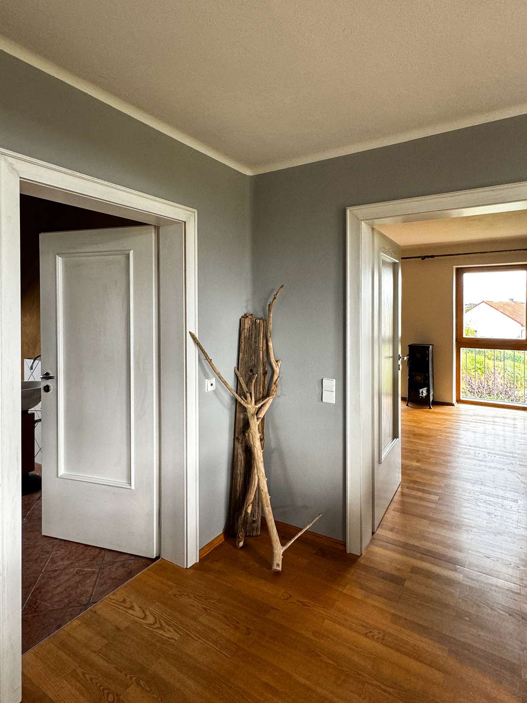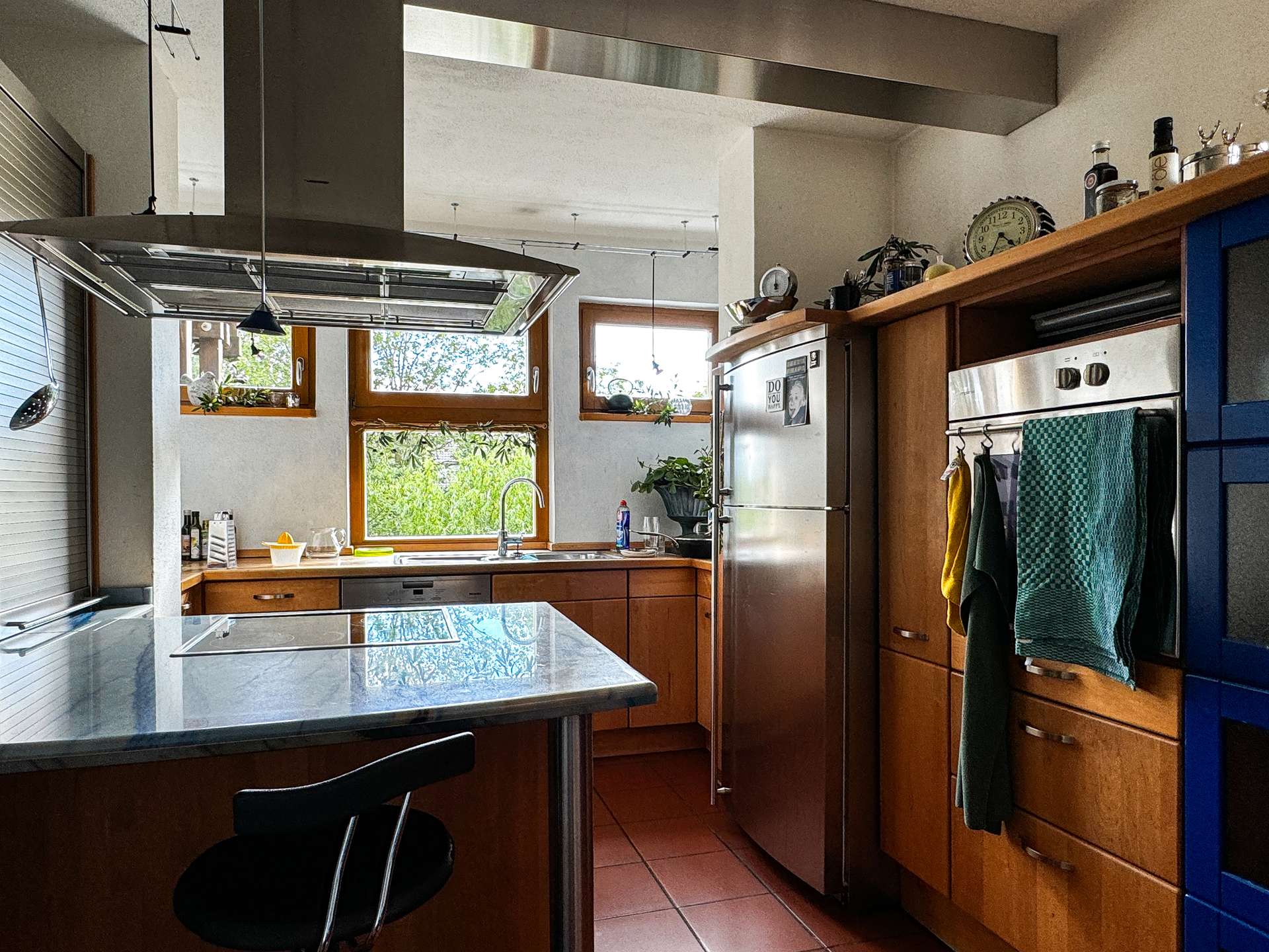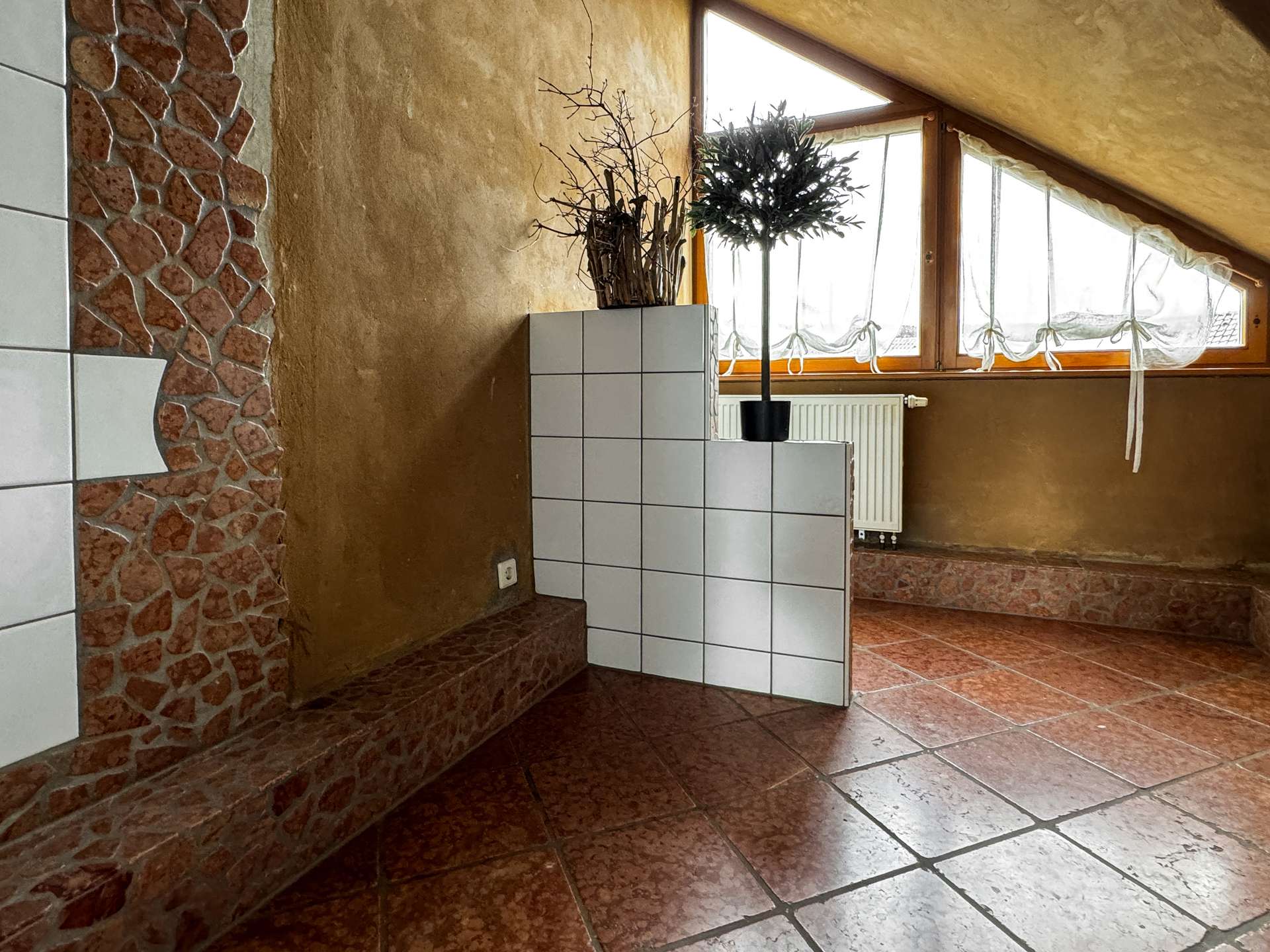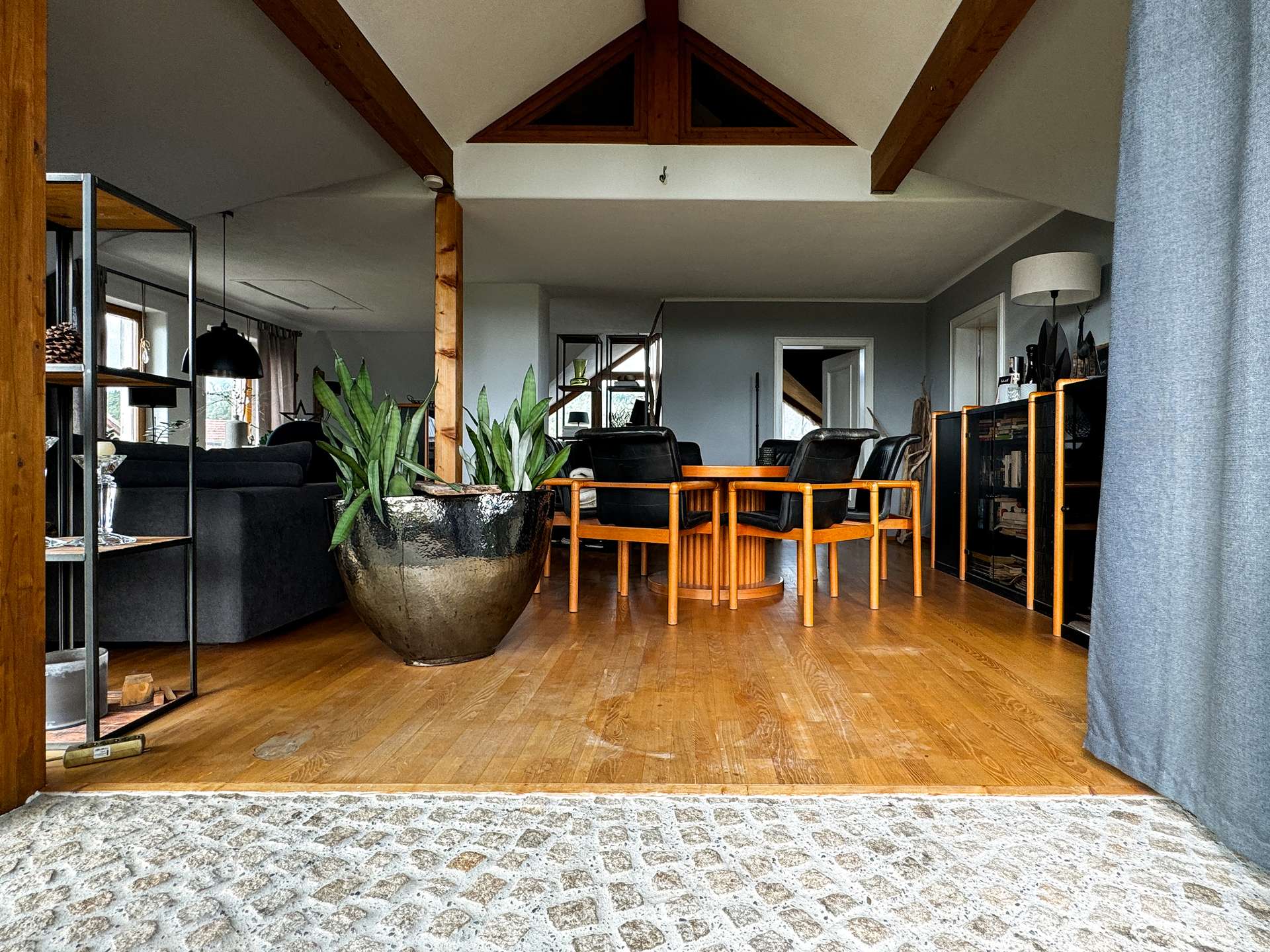 Im Jahr 1997 wurde das Ober- und Dachgeschoss komplett neu ausgebaut. Diese Etage besticht durch eine offene Raumaufteilung und hochwertige Materialien. Die Böden sind mit edlem Parkett und Kork belegt, teilweise mit Fußbodenheizung ausgestattet. Die Einbauküche aus hochwertigem Vollholz bietet viel Stauraum und ist ideal für kulinarische Abenteuer. Das Dachgeschoss ist biologisch mit Zellulose gedämmt und mit Lehmputz verputzt, was für ein gesundes Raumklima sorgt.