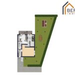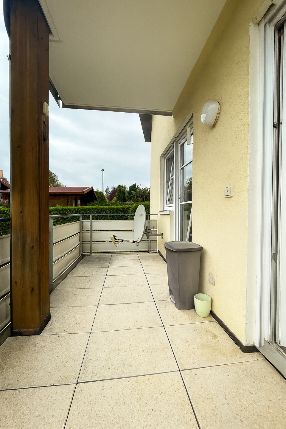 Im Erdgeschoss befinden sich eine Diele, eine Küche und ein Gästezimmer. Vom überdachten Balkon eröffnet sich ein angenehmer Blick ins Grüne.