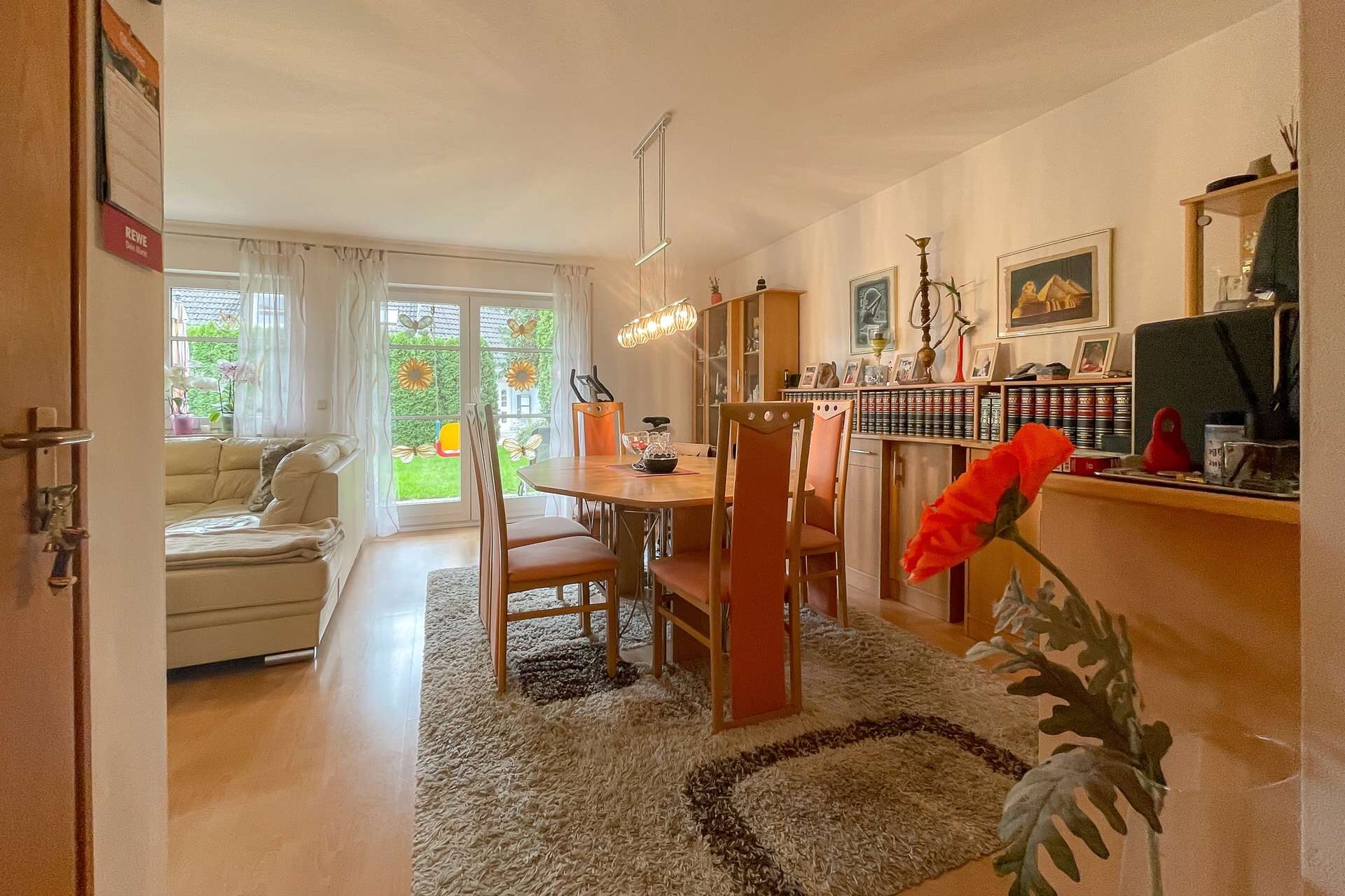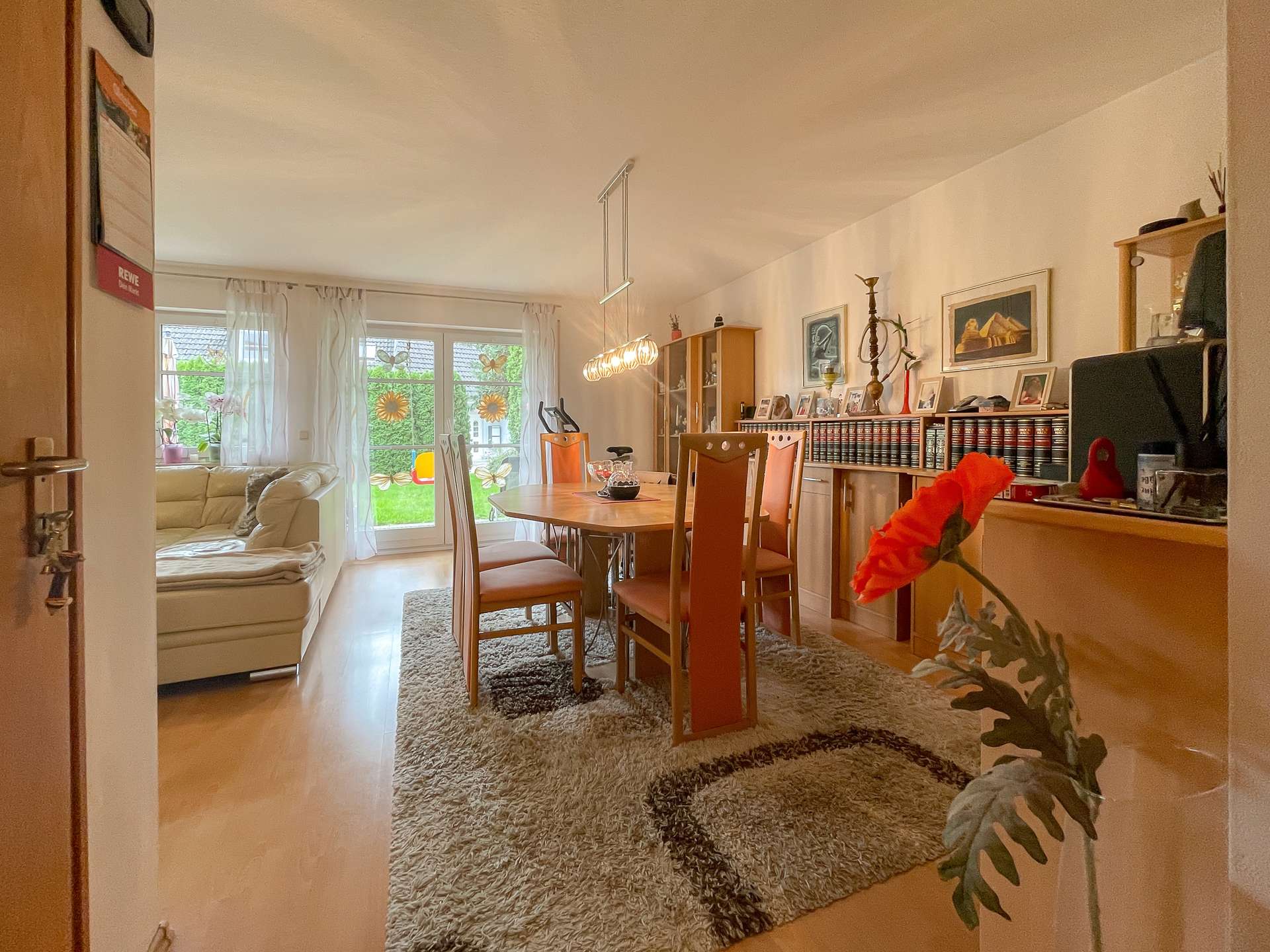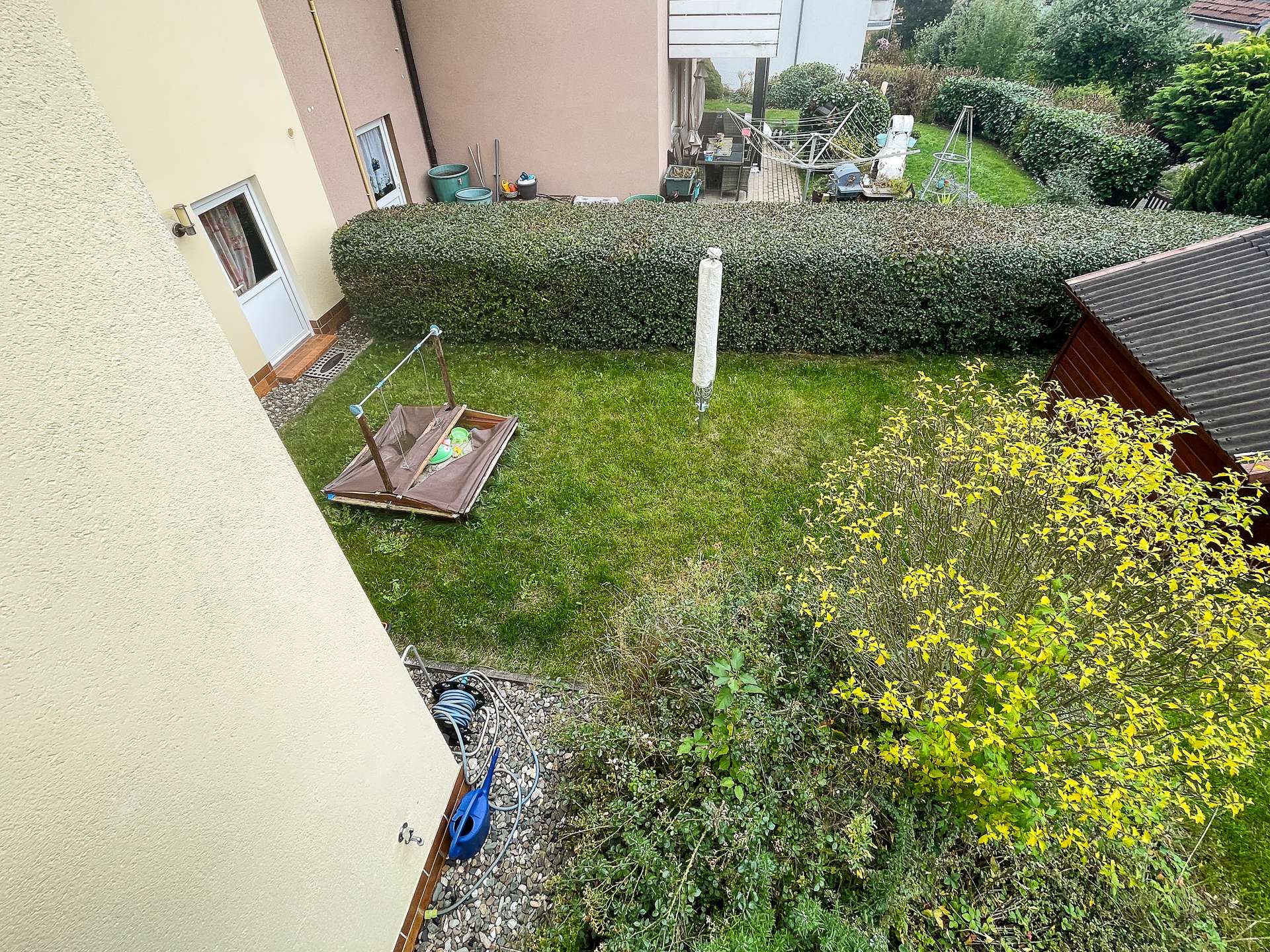 Von der überdachten Terrasse gelangt man direkt in den ca. 140 m² großen Garten – ein echtes Highlight, das die Wohnqualität zusätzlich steigert.