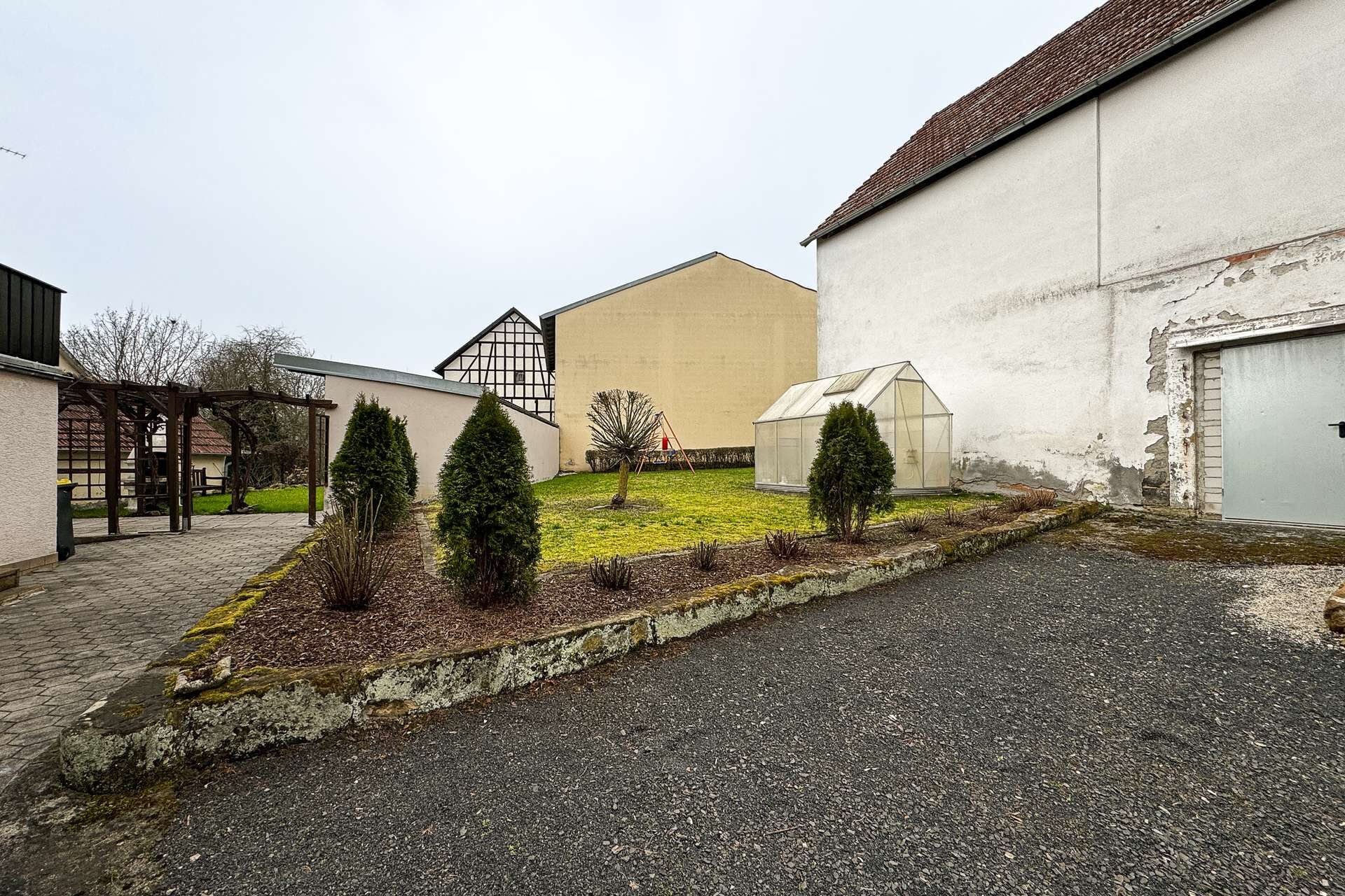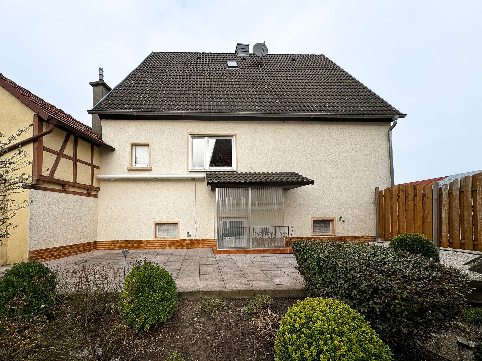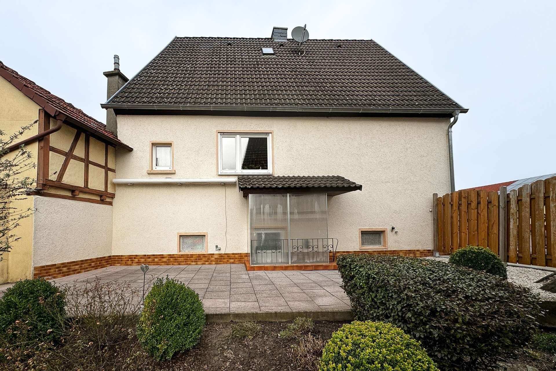 Besonders attraktiv wird dieses Angebt durch den ca.300 m² großen Garten, sowie den gepflasterten Hof und die Garage mit Scheune. Im Hof und in der Garage finden Sie ausreichend Platz für Ihre Fahrzeuge und um Ihren Hobbys nachzugehen. Über die Terrasse gelangen Sie direkt in den wunderschönen pflegeleichten Garten, der von der Straße abgewandt liegt. Unter der Terrasse befindet sich zudem ein alter Felsenkeller.