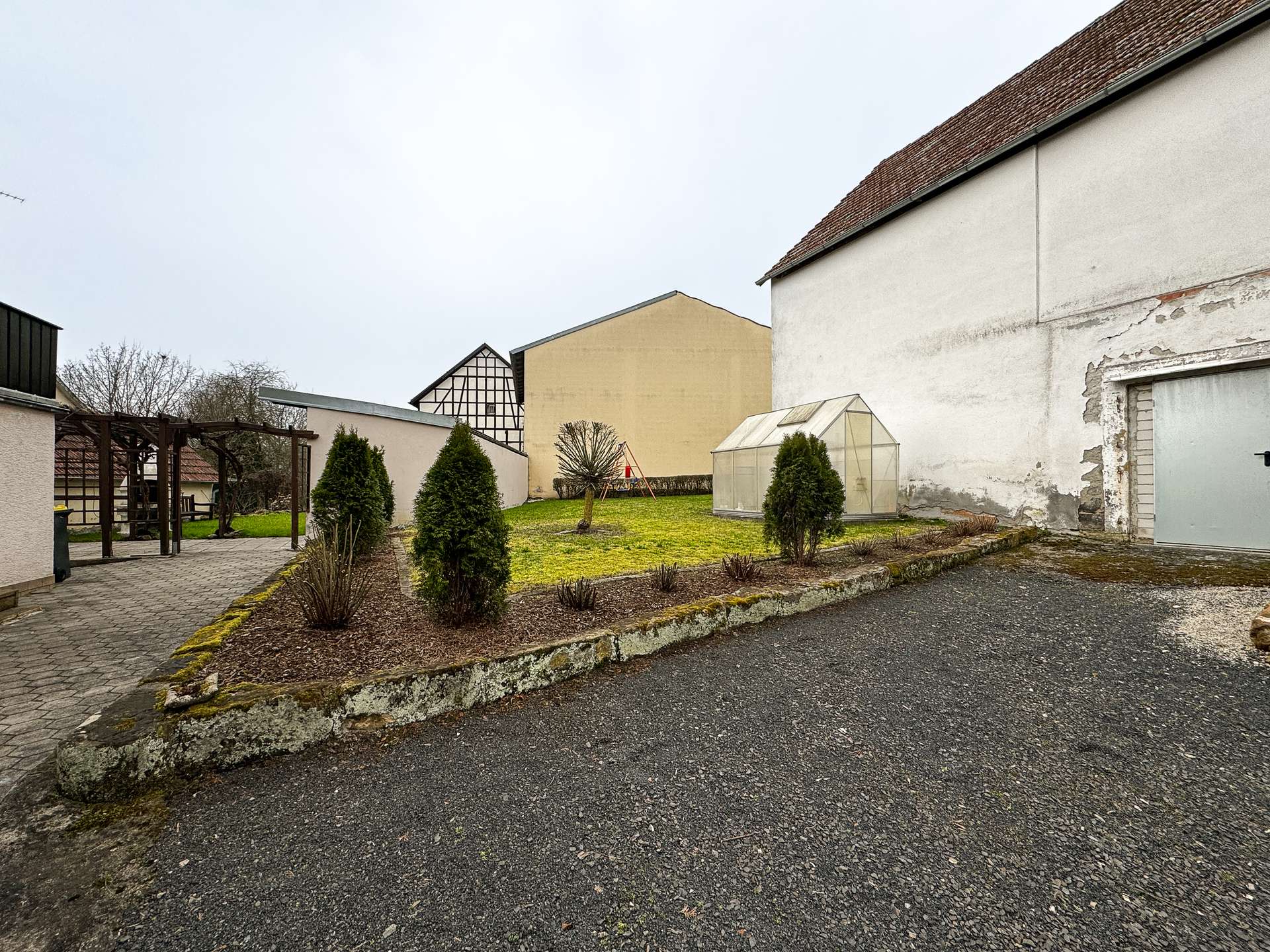 Die Nachbarschaft ist geprägt von Einfamilienhäusern und kleinen landwirtschaftlichen Betrieben, was für eine ländliche und familienfreundliche Umgebung spricht.