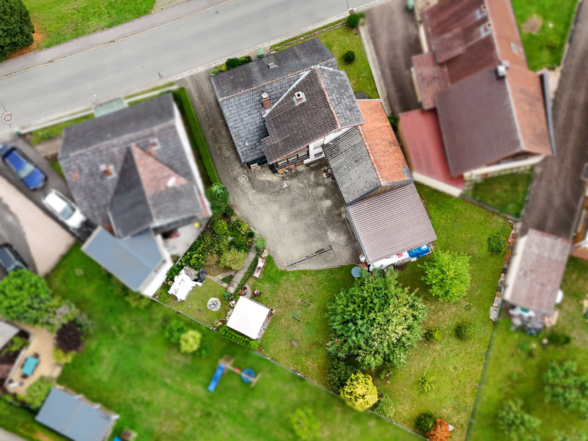 Das großzügige Grundstück umfasst 770 m², wovon ca. 300 m² Gartenfläche zur Erholung und Freizeitgestaltung einladen. Ein gepflasterter Hof, zwei Garagen sowie ein zusätzlicher Außenstellplatz stehen zur Verfügung. Abstellmöglichkeiten im Keller und ein praktischer Abstellraum im Haus sorgen für Ordnung und Stauraum.