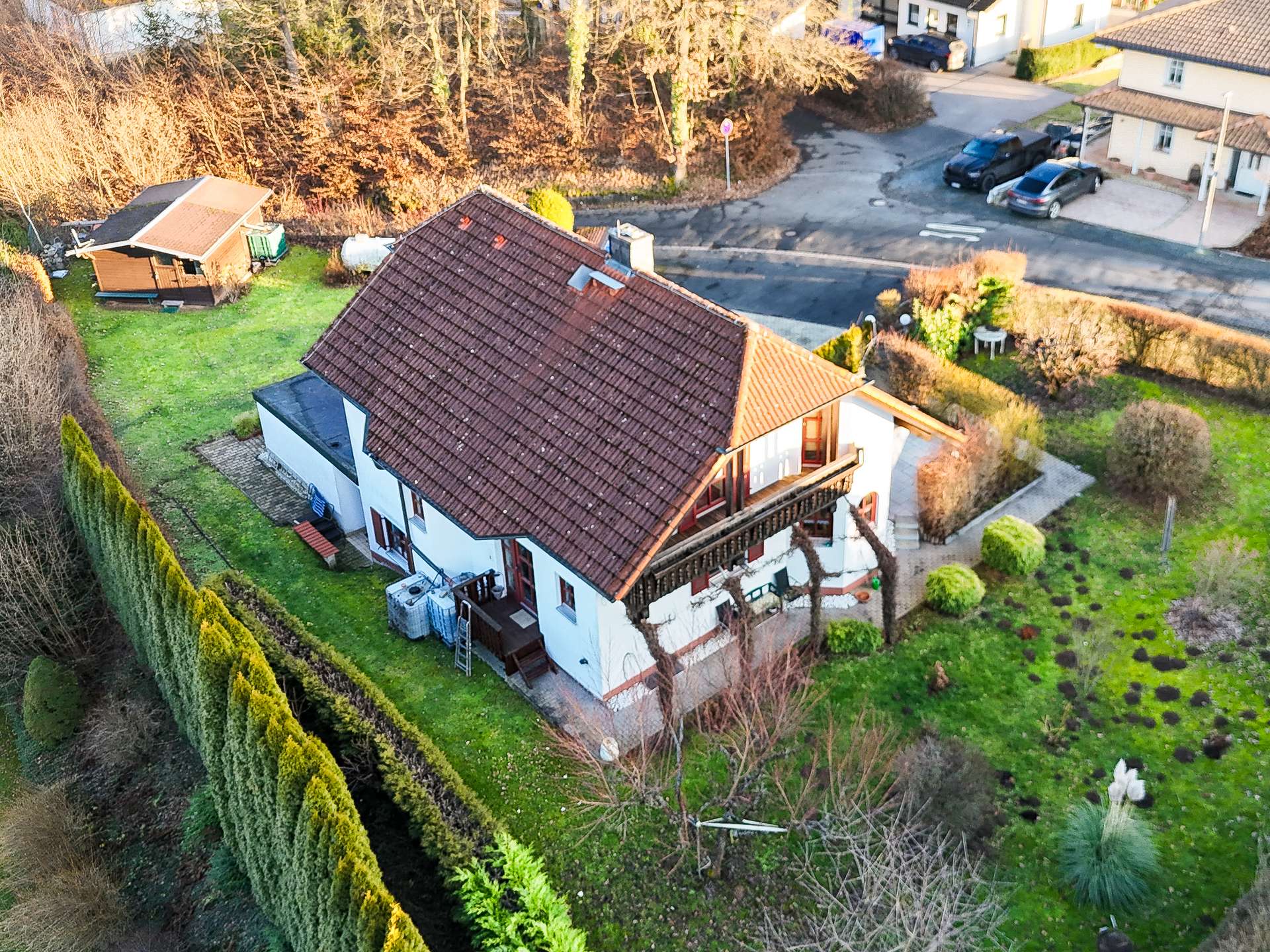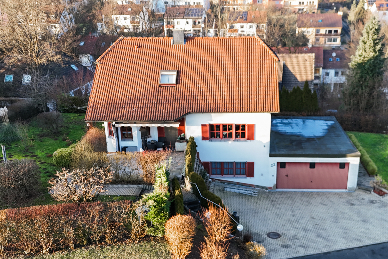 Dieses großzügige Einfamilienhaus mit Garten und Doppelgarage wurde im Jahr 1992 auf einem 1119 m² großen Eckgrundstück erbaut. Die Wohnfläche beträgt 182 m².