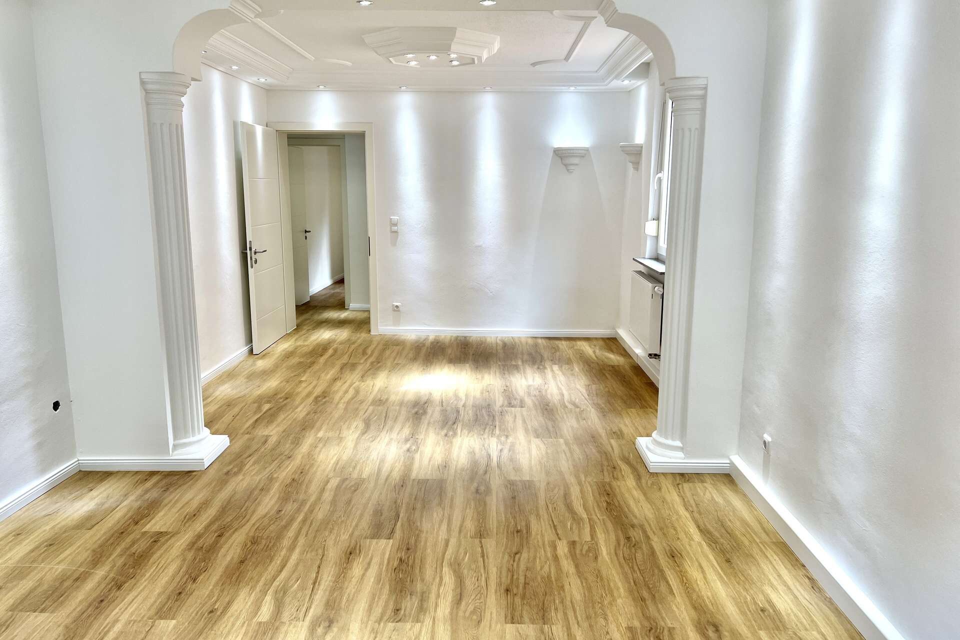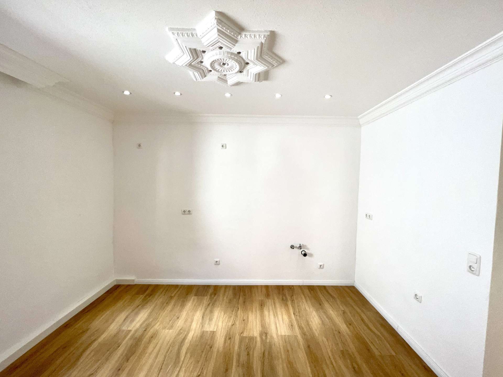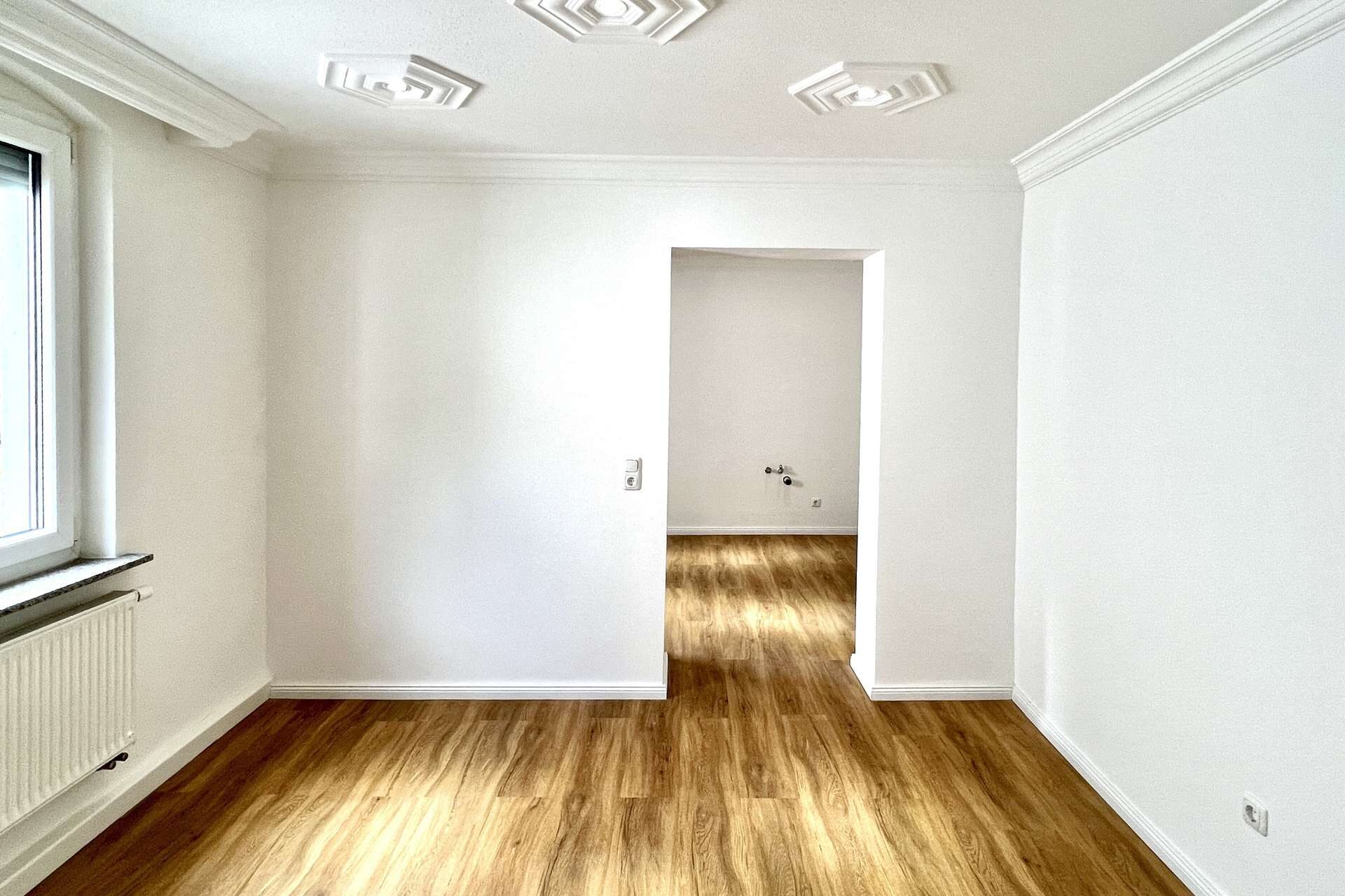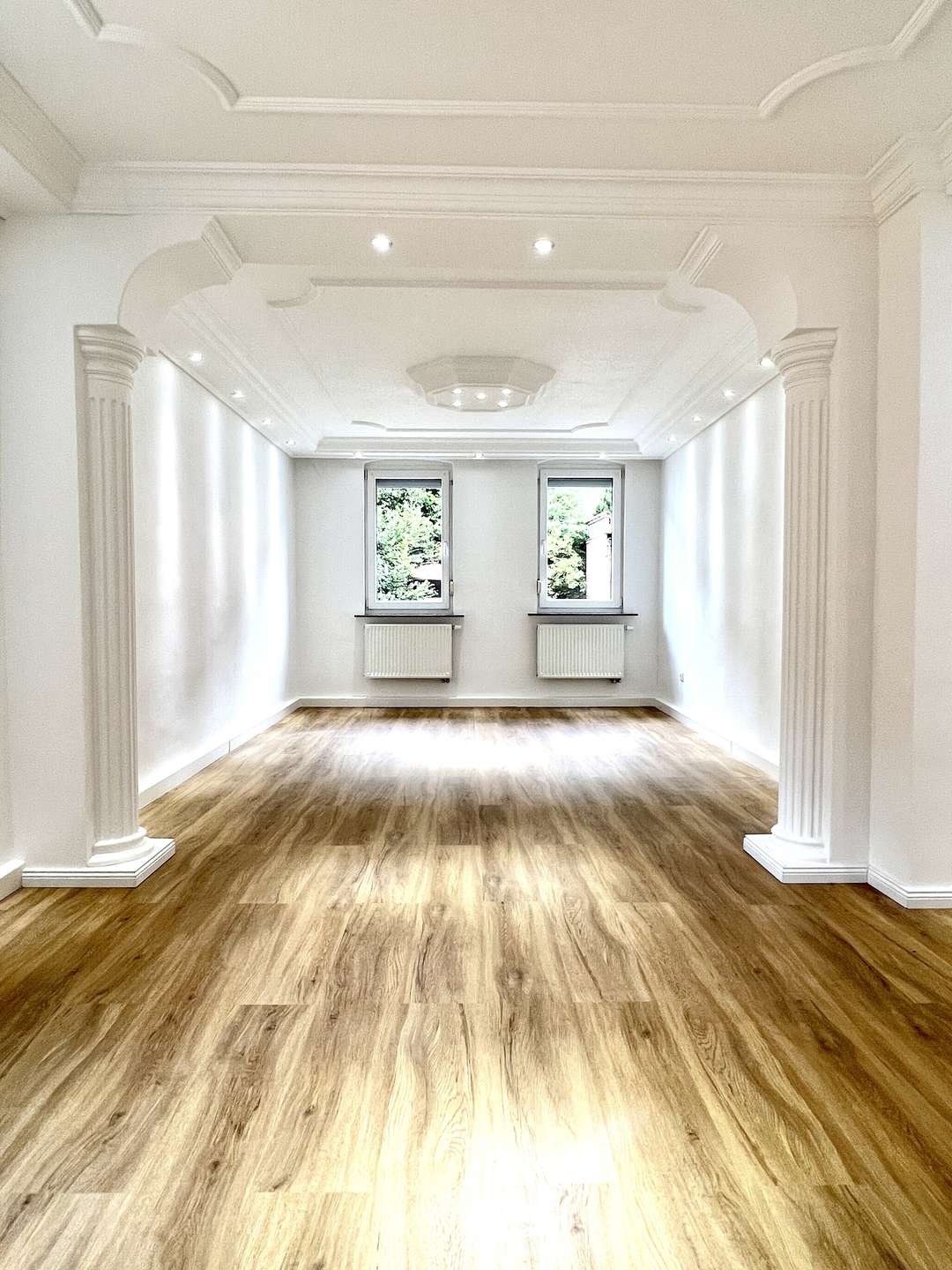 Das Wohnzimmer ist wie die anderen Räume auch frisch renoviert und lichtdurchflutet, durch den großzügigen Schnitt bietet es genug Platz für eine großzügige Wohnlandschaft und mehr. Das geräumige Schlafzimmer mit ca. 25 m² lässt sich optimal in Ankleide- und Schlafbereich aufteilen. Auch hier werden Stuckelemente den lichtdurchfluteten Raum optisch auf. Alle Räume verfügen über große Fenster und sind mit hochwertigem Vinyl in moderner Holzoptik ausgelegt. Bei Bedarf kann eine Garage auf dem Grundstück mit erworben werden.