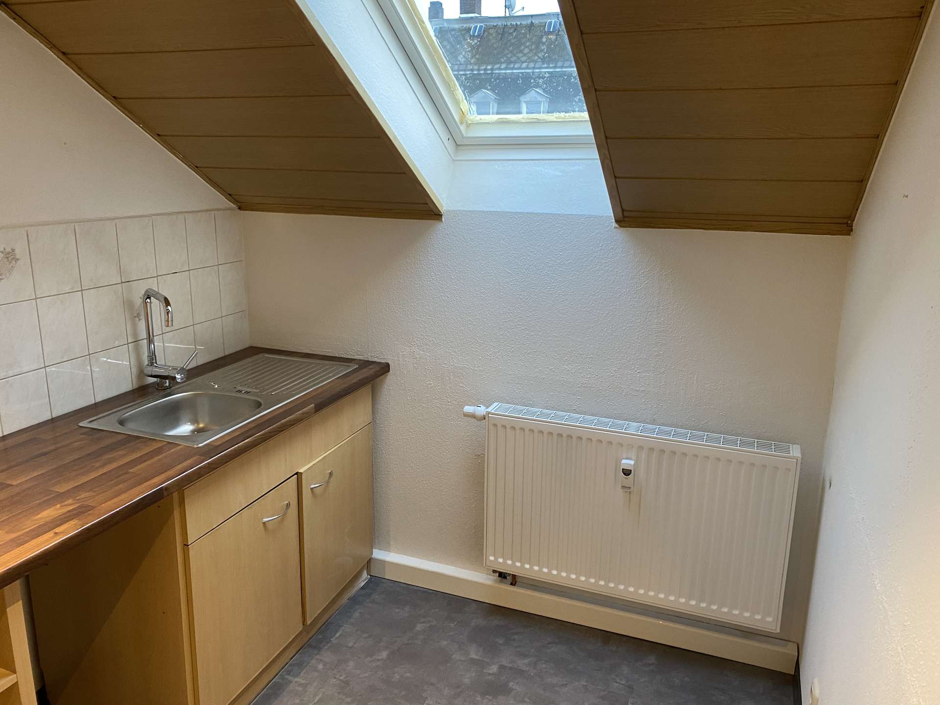 Alle Wohnräume sind weiß gestrichen und mit modernem Laminat oder Vinylboden ausgelegt. Die Dachgeschosswohnungen sind durch die geringere Deckenhöhe nicht für größere Personen geeignet. Durch die neue Pellet-Zentralheizung befinden sich die Nebenkosten im moderaten Bereich. Die Wohnung befindet sich in einem Mehrfamilienhaus in bester Lage von Oelsnitz. Das Rathaus ist z. B. fußläufig in zwei Minuten zu erreichen. Stellplätze gibt es in der näheren Umgebung reichlich.