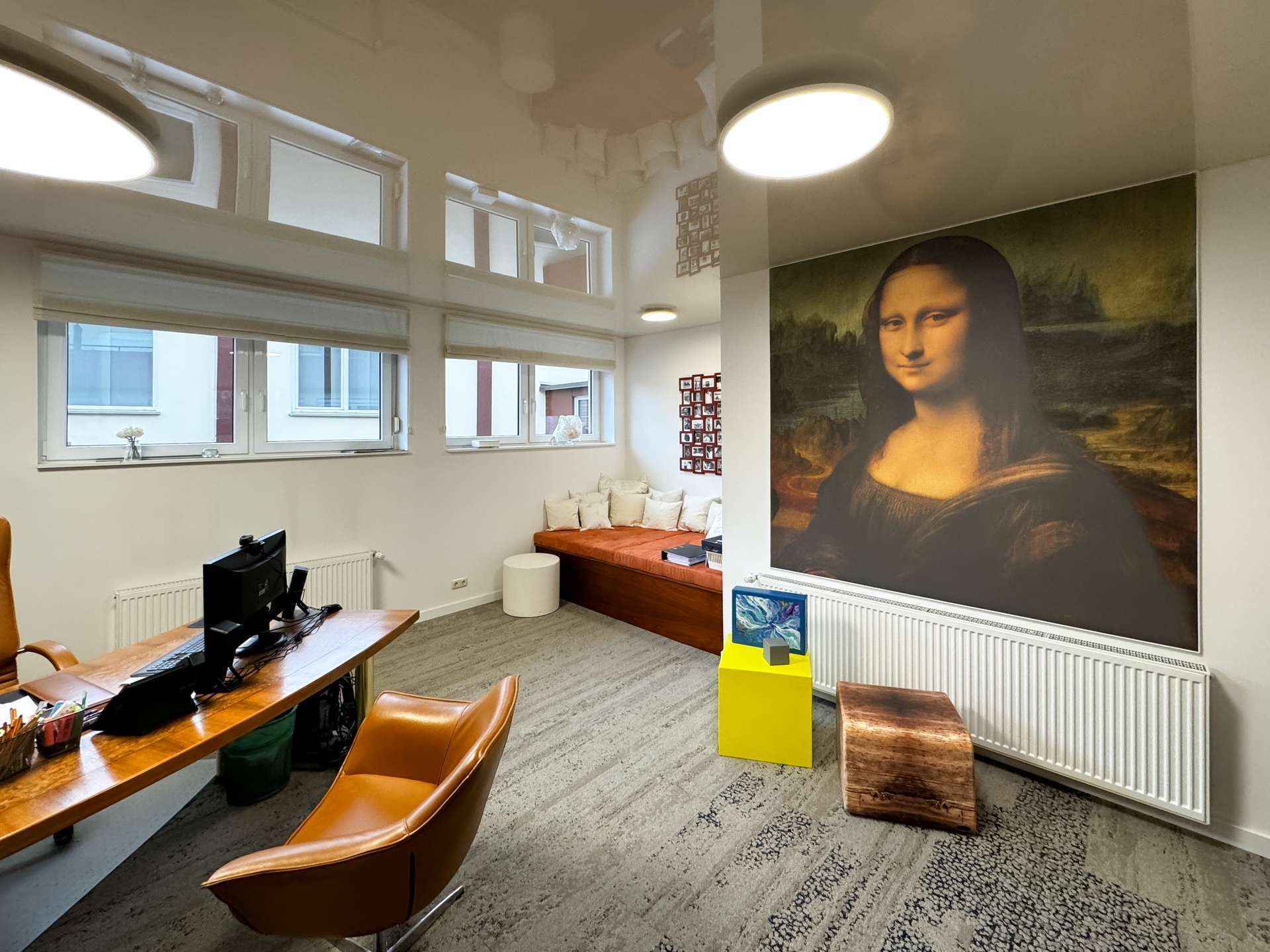 Die vorhandenen Möbel können zusätzlich erworben werden – diese sind nicht im Mietpreis inbegriffen. Für Ihre Mitarbeiter und Kunden stehen ausreichend Parkplätze im Hof zur Verfügung.