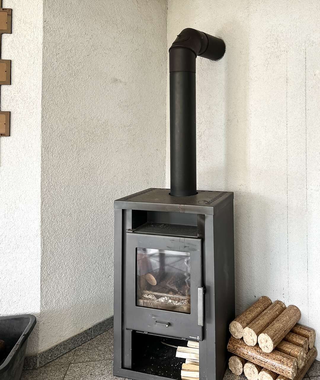 Die Immobilie wurde zudem energetisch verbessert: Sowohl Dach als auch Außenwände sind gedämmt, was zur Energieeffizienz beiträgt. Eine Photovoltaikanlage mit 2,5 kWp sorgt zusätzlich für eine umweltfreundliche Stromversorgung. Die Beheizung erfolgt über eine Zentralheizung, unterstützt durch den Kaminofen im Wohnbereich.