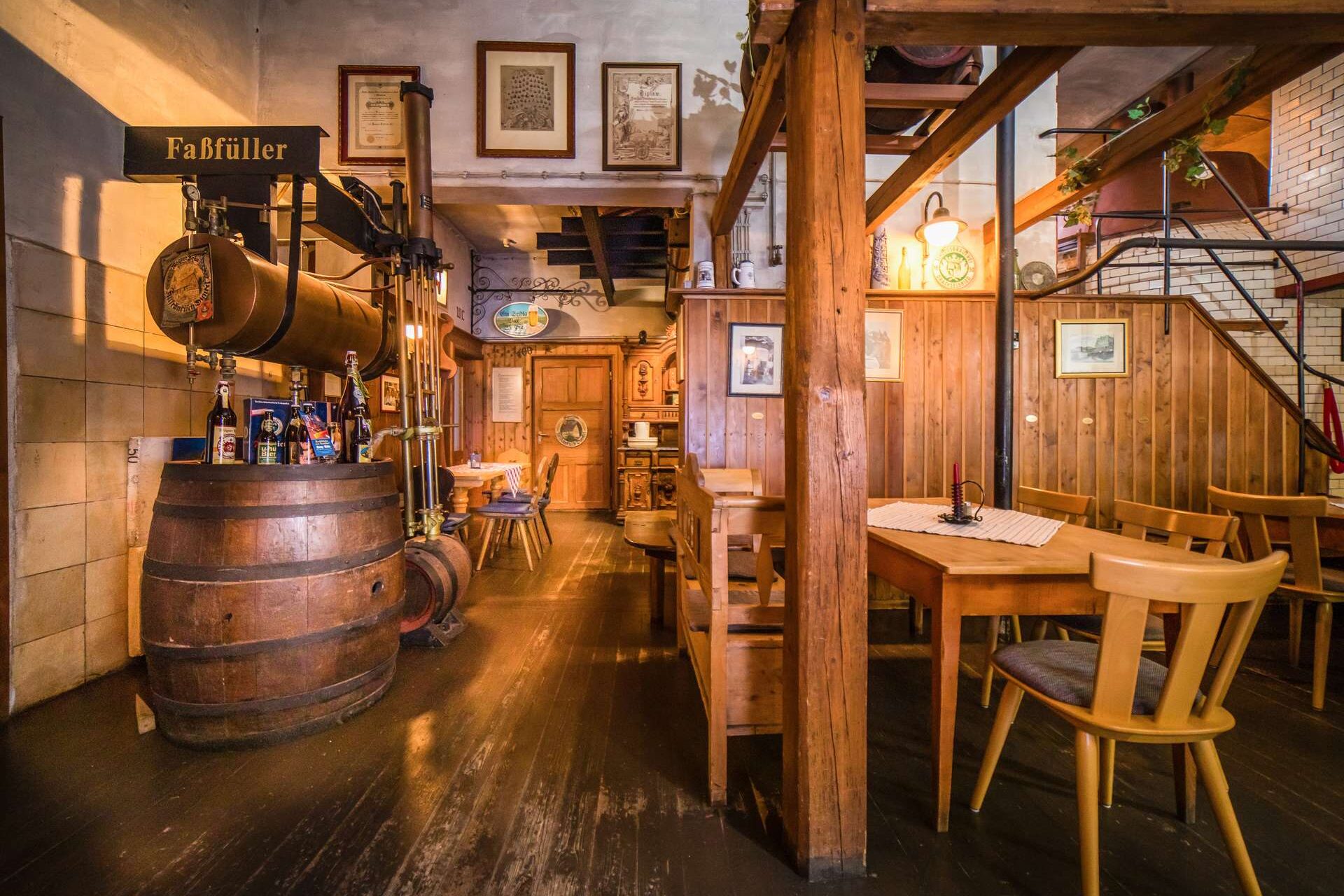 Auf dem 832 m² großen Grundstück wurde das Gasthaus und die ehemalige Brauerei mit Abfüllung ab 1887 erbaut. Die 1770 m² erstrecken sich über insgesamt drei Etagen. Die Gaststätte im Erdgeschoss verfügt insgesamt über 90 Sitzplätze und ist urig eingerichtet. Viele alte und Antike Gegenstände der Braukunst geben ein wunderbares Ambiente. Die alte Einrichtung der ursprünglichen Brauerei wurde liebevoll erhalten und bietet einen idealen Rahmen für Führungen zur Brauereikunst. Das Objekt verfügt zudem über zahlreiche Lagerräume und eine Küche. Im Keller wurden die alten Lagertanks zu Kunstobjekten zum Fühlen umgestaltet. Legen Sie sich hin und spüren Sie die Kunst mit allen Sinnen.