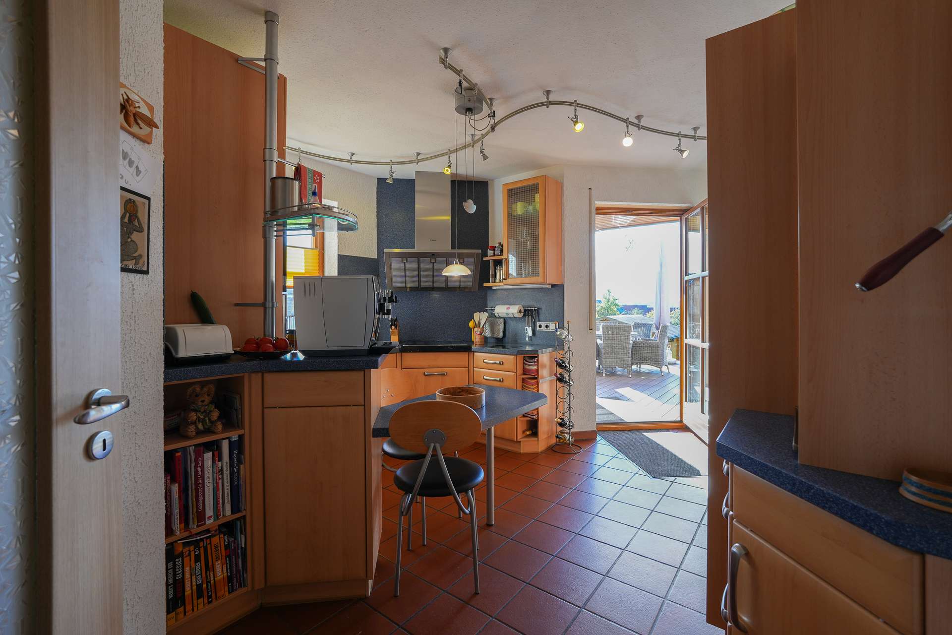 Im Erdgeschoss erwarten Sie eine großzügige Diele, ein Gäste-WC, ein Abstellraum sowie ein offener Wohn- und Essbereich, der durch seine großzügigen Fensterflächen ein helles, freundliches Ambiente schafft. Die angrenzende Küche ist mit einer hochwertigen Einbauküche ausgestattet und verfügt über eine praktische Speisekammer. Sowohl vom Wohnbereich als auch von der Küche besteht ein direkter Zugang zur Terrasse – ideal für entspannte Stunden im Freien und gesellige Abende mit Familie und Freunden.