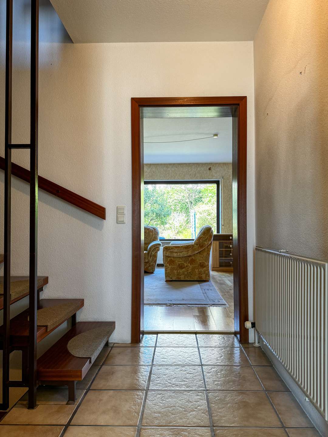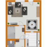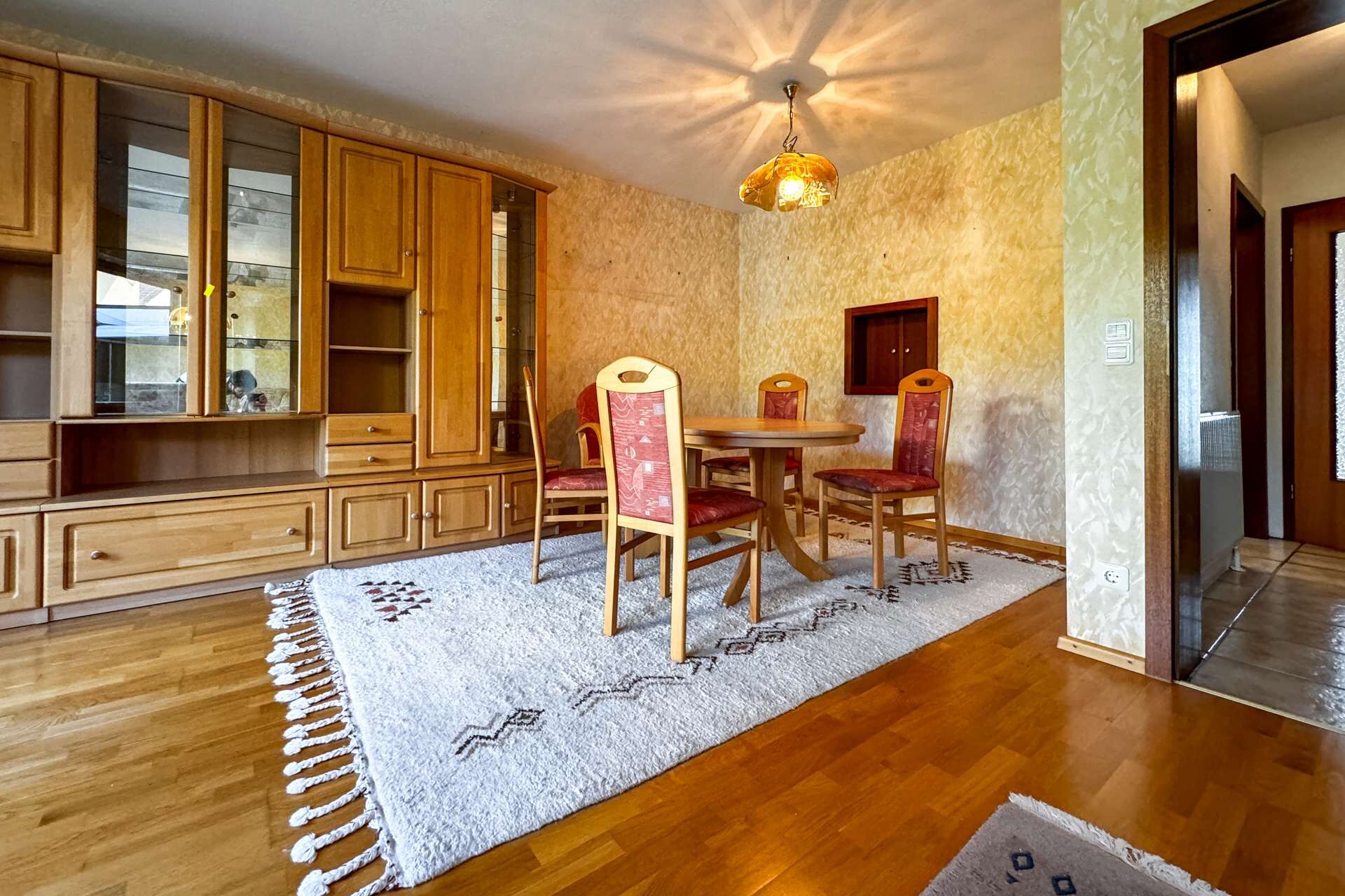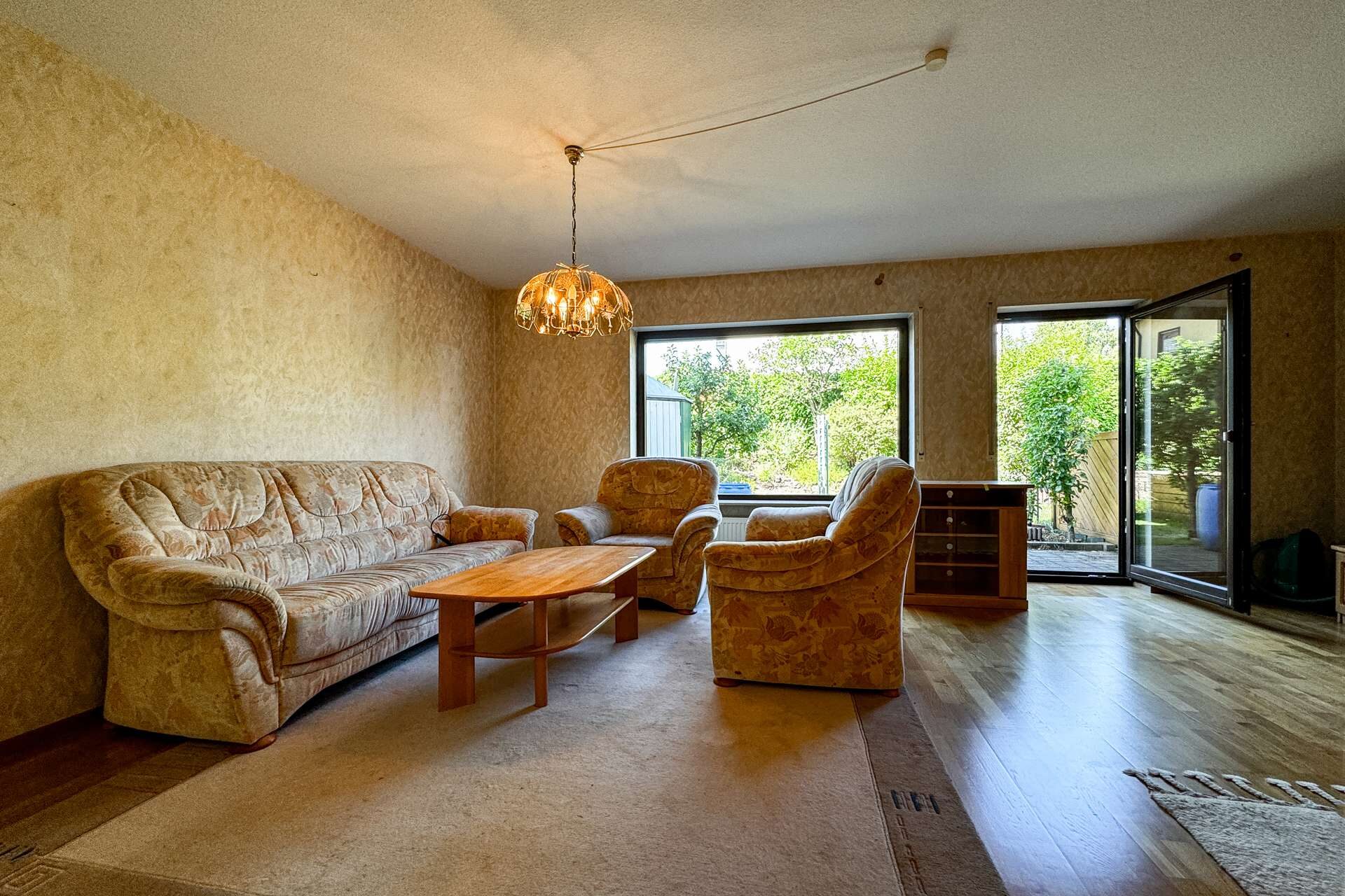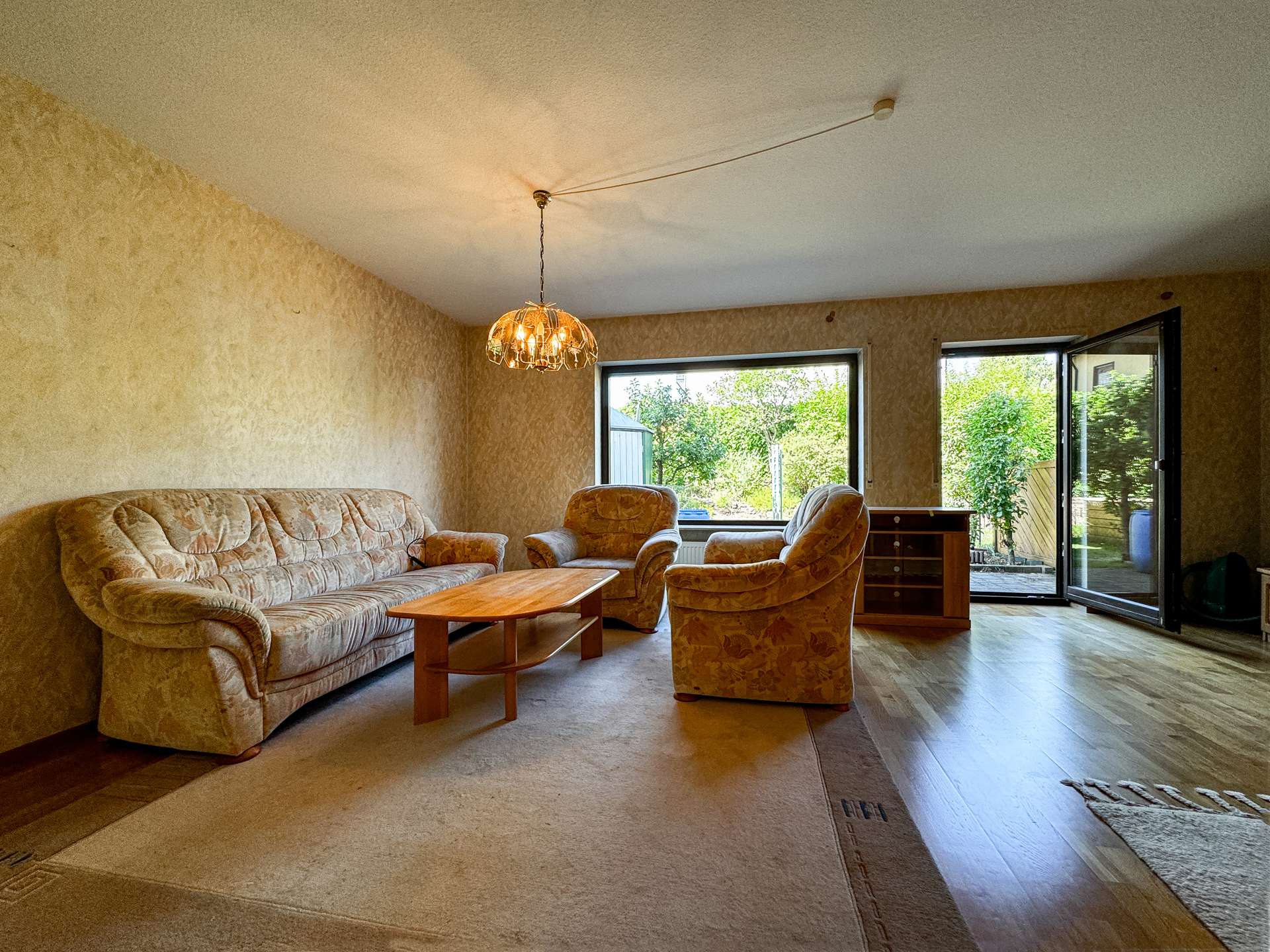 Im Erdgeschoss befindet sich der großzügige Wohn- und Essbereich sowie die Küche mit Durchreiche. Hier können Sie gemeinsame Abende mit Freunden und Familie verbringen oder auch entspannt den Feierabend genießen. Die großen Fenster sorgen für eine helle und freundliche Atmosphäre. Von hier aus haben Sie auch direkten Zugang zur eigenen Gartenfläche mit Terasse, die mit ca. 60 m² ausreichend Platz bietet.