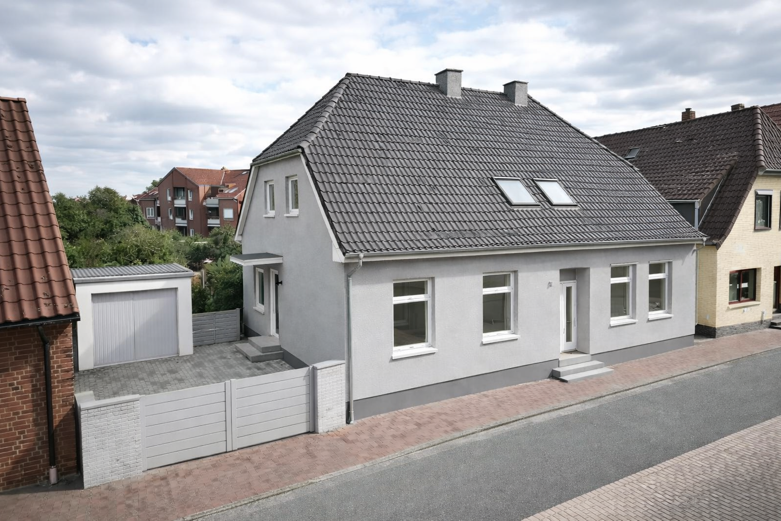 Das Gebäude verfügt über gut geschnittene, funktionale Grundrisse mit hellen Wohnräumen. Große Fensterflächen sorgen für eine angenehme Belichtung und eine freundliche Wohnatmosphäre. Die flexible Raumaufteilung eignet sich sowohl für die Nutzung als Einfamilienhaus als auch – je nach Bedarf – als Ein- bis Zweifamilienhaus.