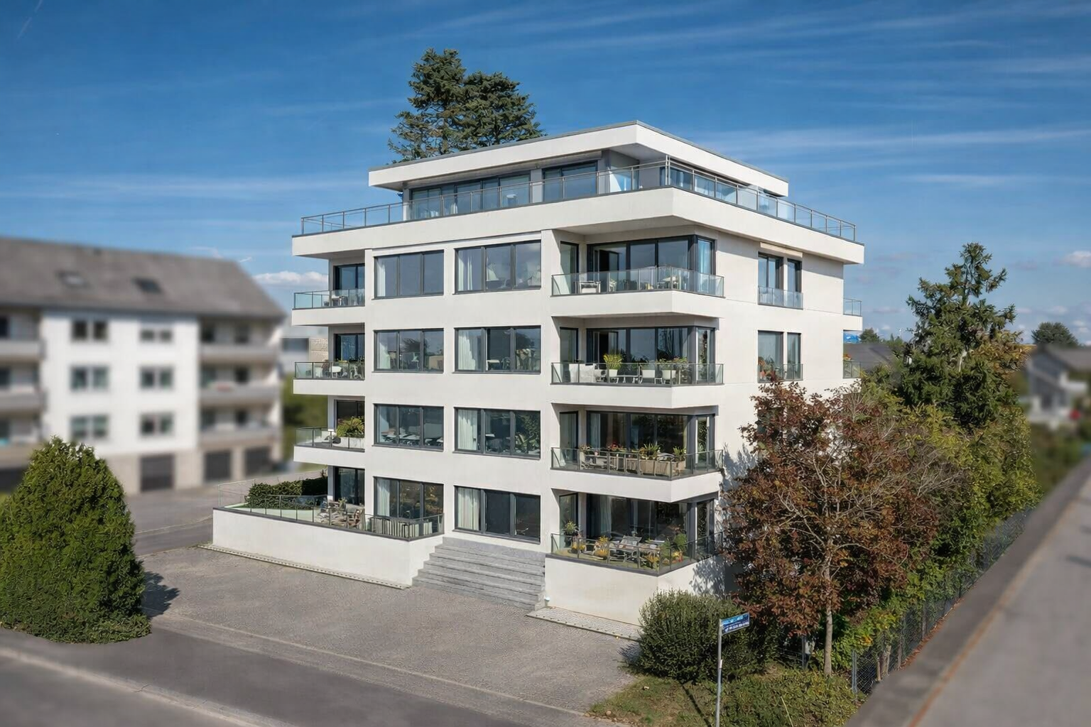 Das Penthouse im Staffelgeschoss bildet den hochwertigen Abschluss der Immobilie und überzeugt mit umlaufender Terrasse, großzügigen Fensterflächen und moderner Ausstattung. Die Einheit wurde in den vergangenen Jahren umfassend renoviert.