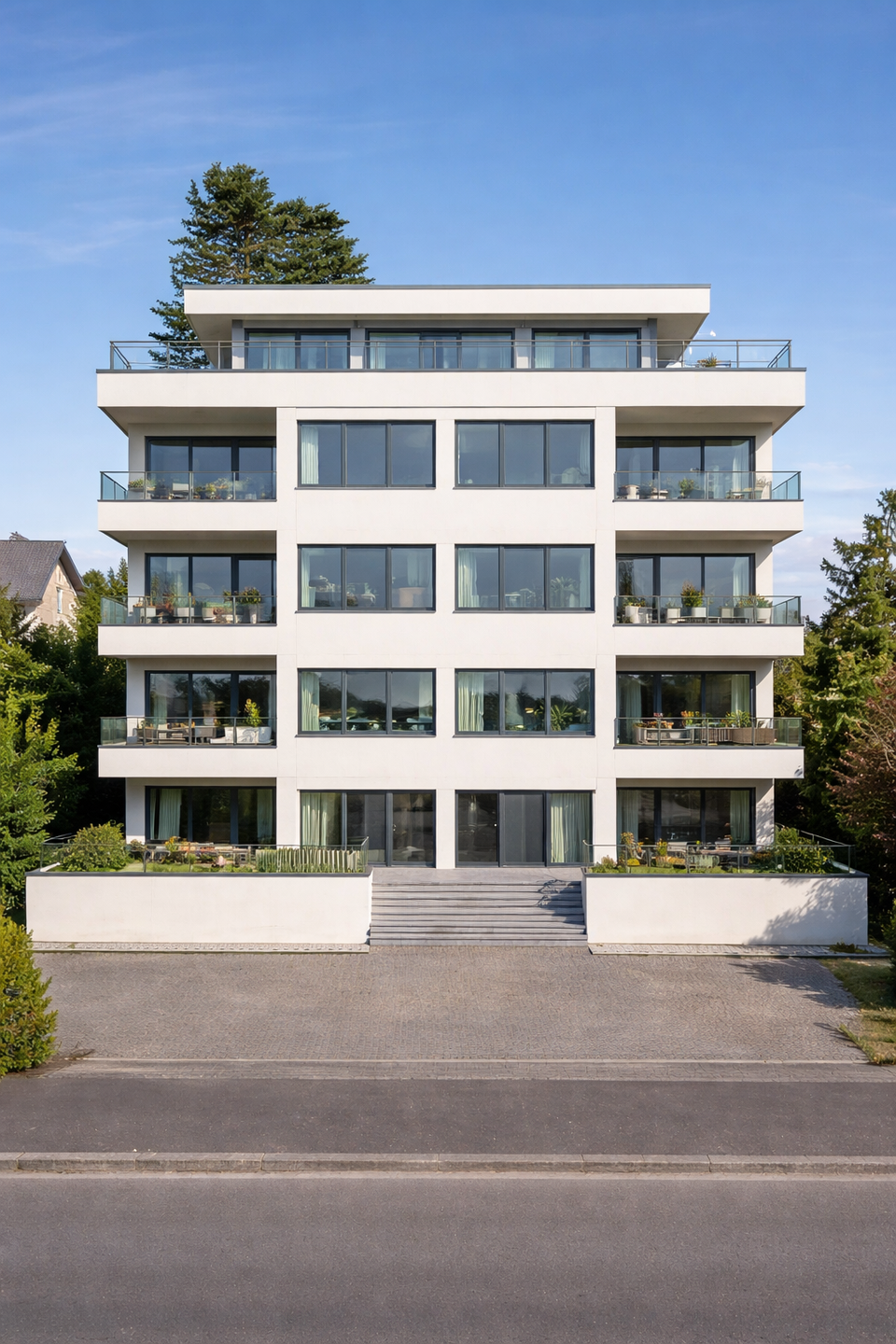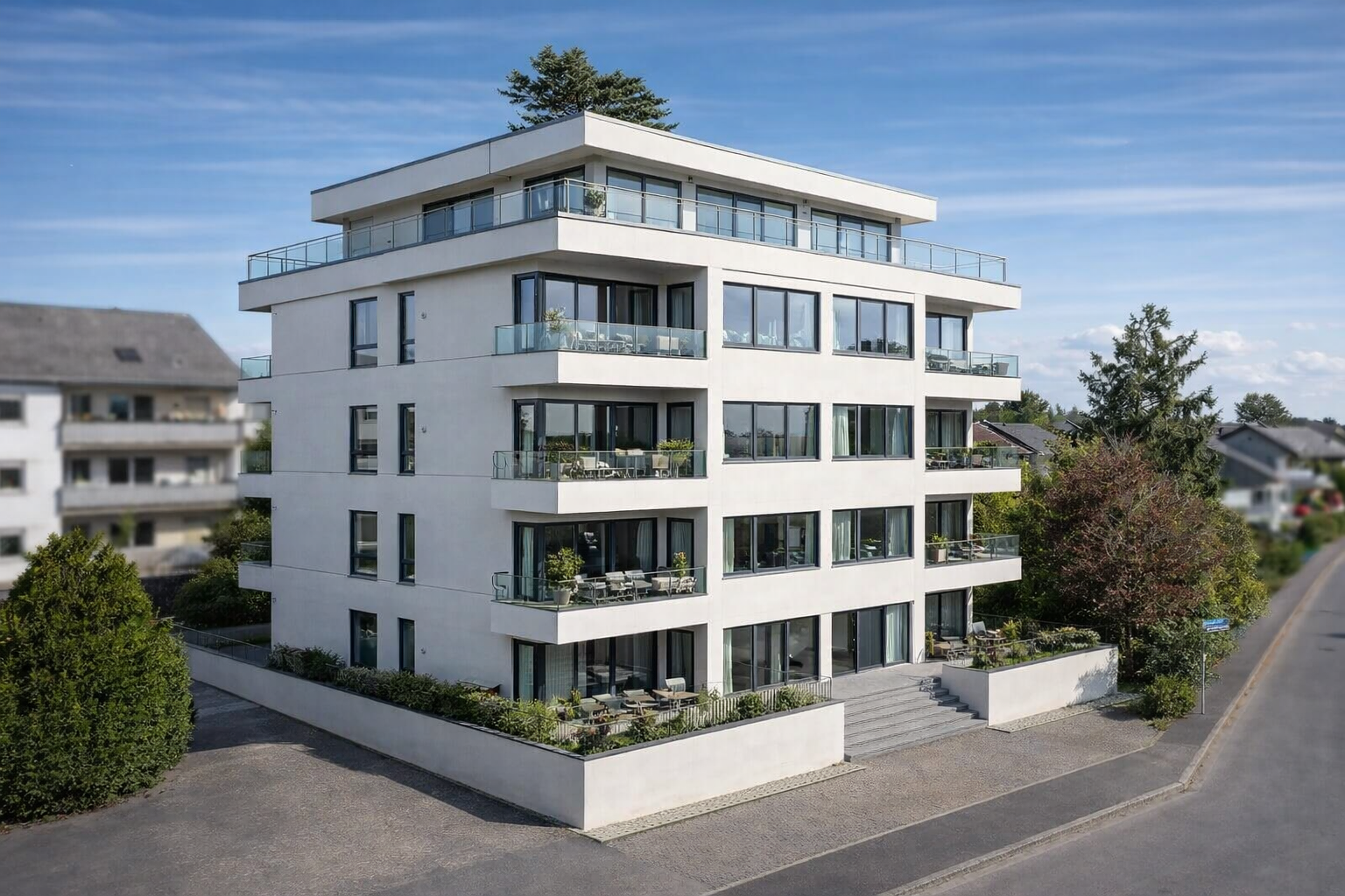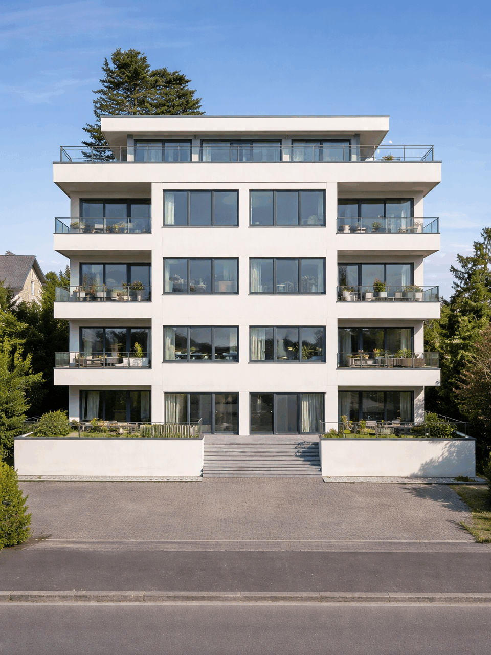 Die Grundrissgestaltung variiert zwischen den Etagen und bietet Investoren ein hohes Maß an Flexibilität. Im Erdgeschoss befinden sich drei Wohneinheiten, darunter eine Einheit mit großzügiger Terrasse. Die Wohnungen der oberen Regelgeschosse verfügen über großzügige, helle Grundrisse und sind jeweils mit zwei Balkonen ausgestattet, die den Wohnkomfort deutlich erhöhen.