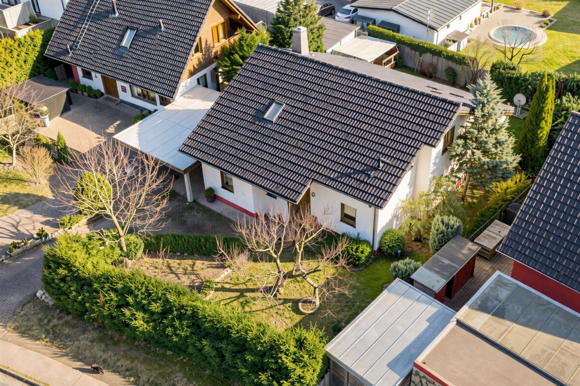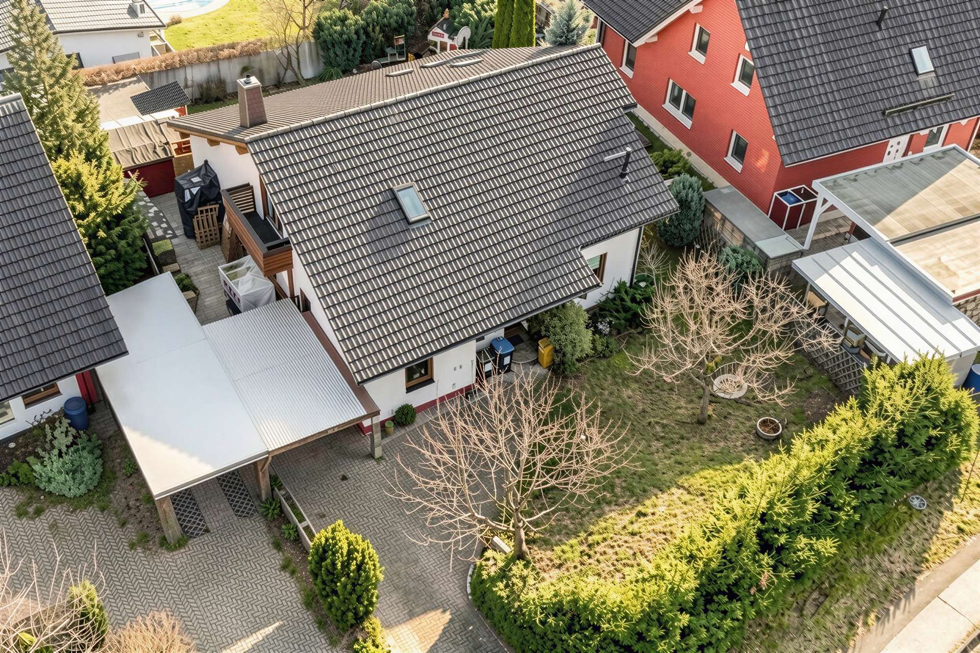 Wintergarten und Balkon erweitern die Aufenthaltsbereiche und schaffen zusätzliche Möglichkeiten, das Leben im Freien zu genießen. Ergänzt wird der Außenbereich durch ein Carport, das komfortables und wettergeschütztes Parken direkt am Haus ermöglicht.
