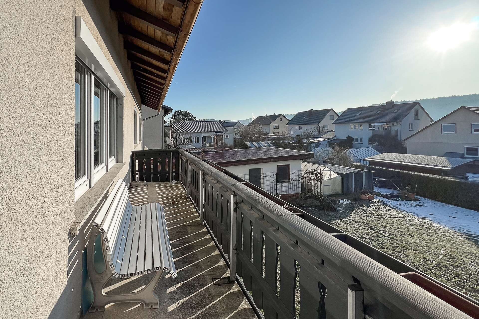 Die Wohnung im Obergeschoss verfügt über einen vergleichbaren Grundriss und punktet zusätzlich mit einem schönen Balkon, der einen freien Blick ins Grüne eröffnet und zu entspannten Stunden in ruhiger Umgebung einlädt.