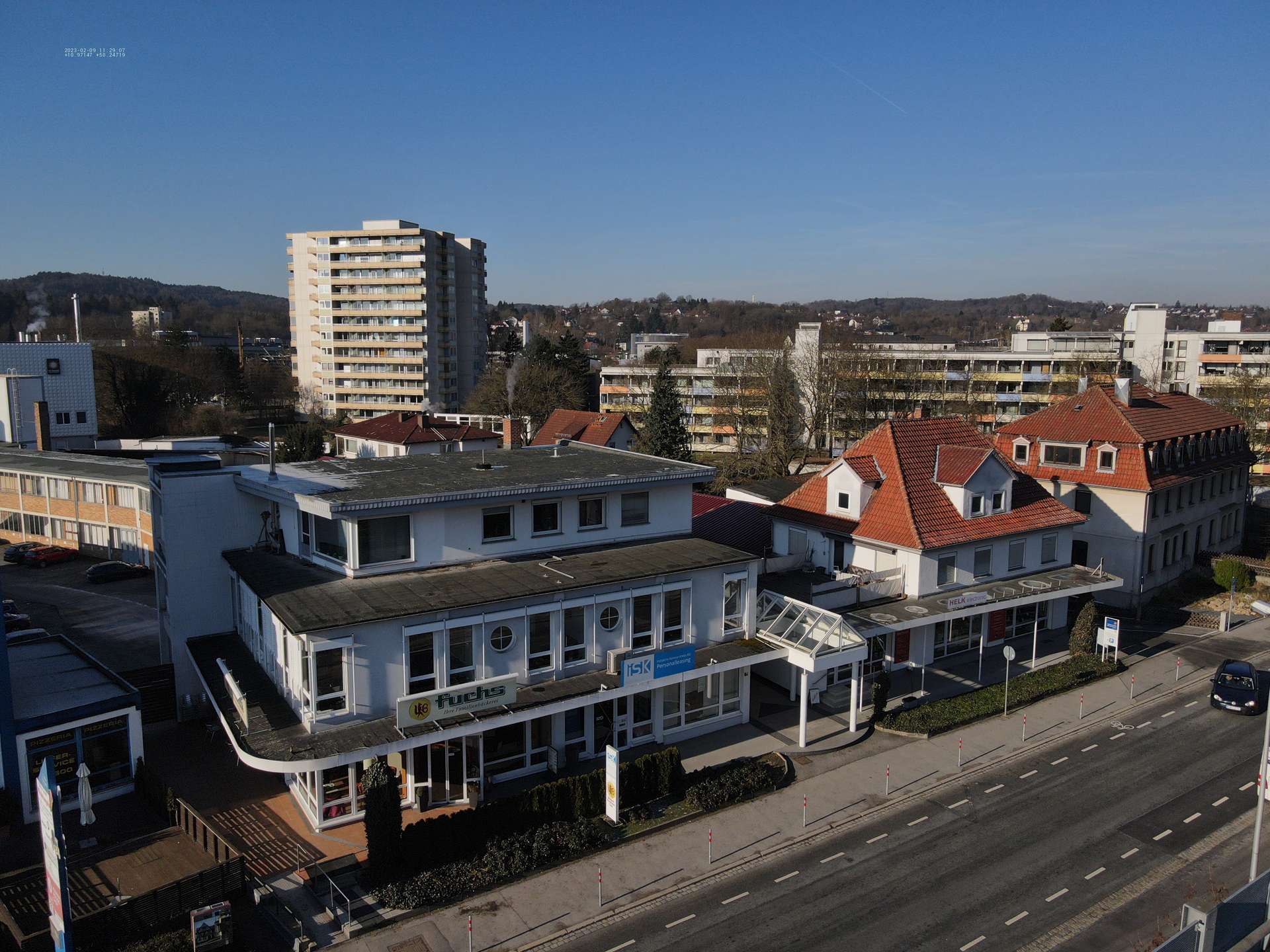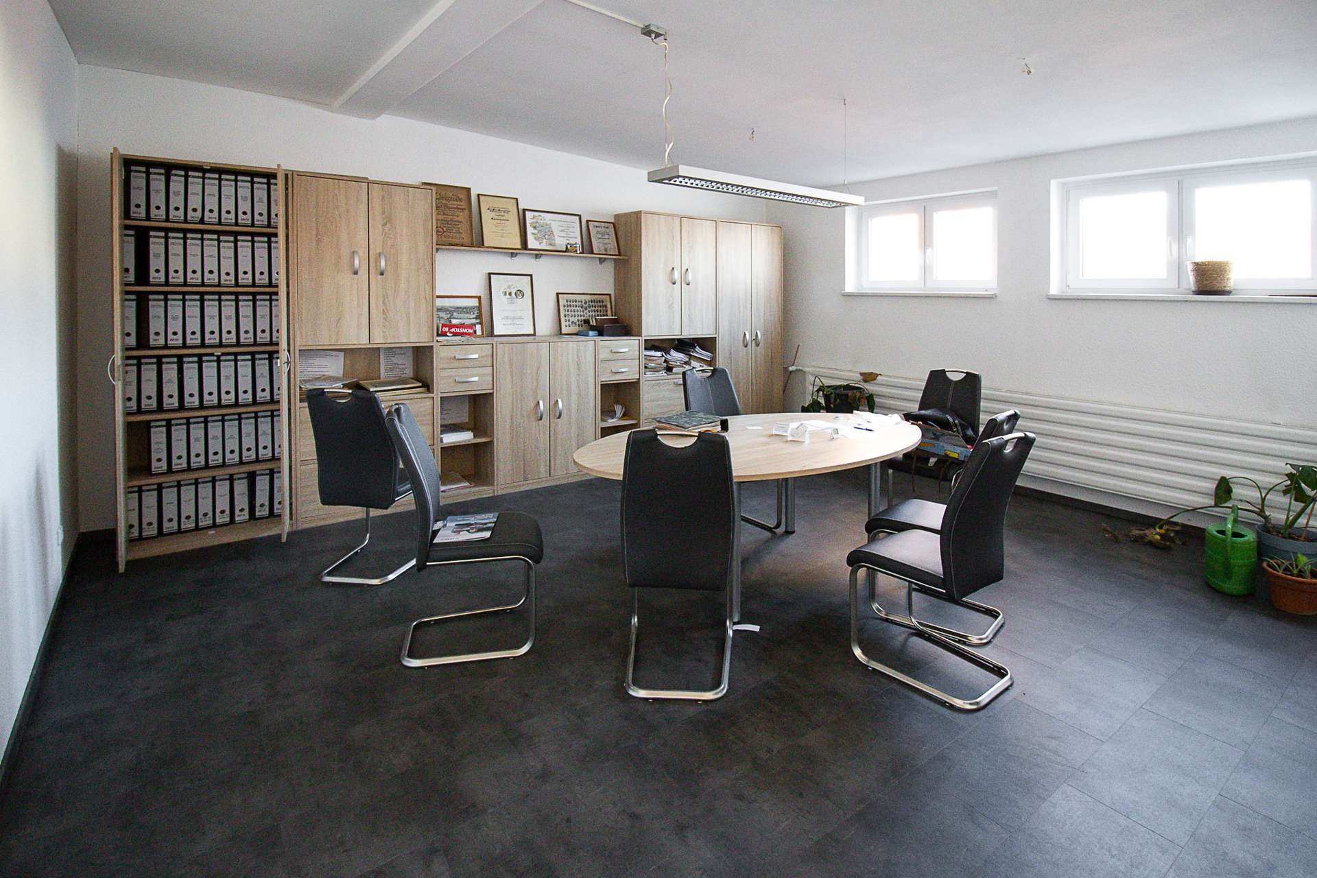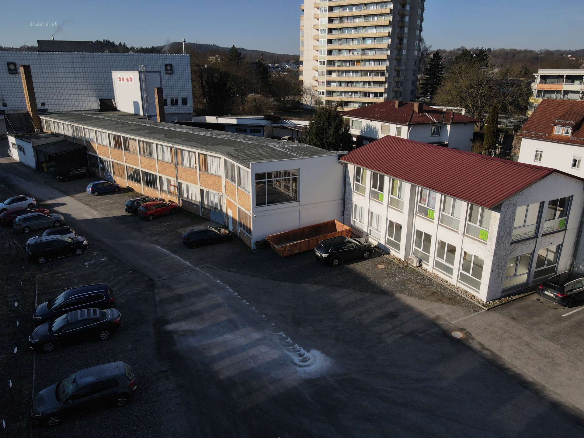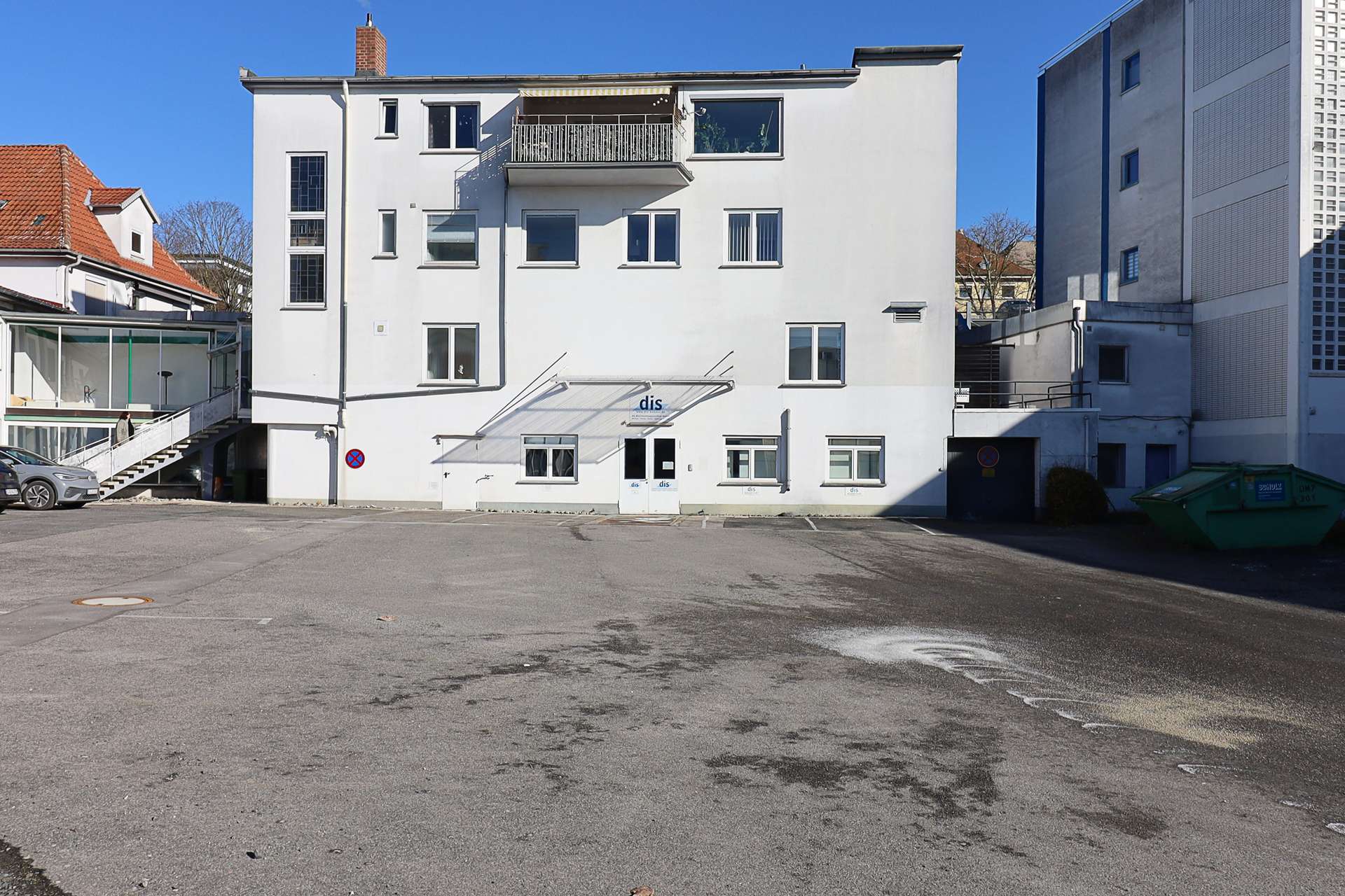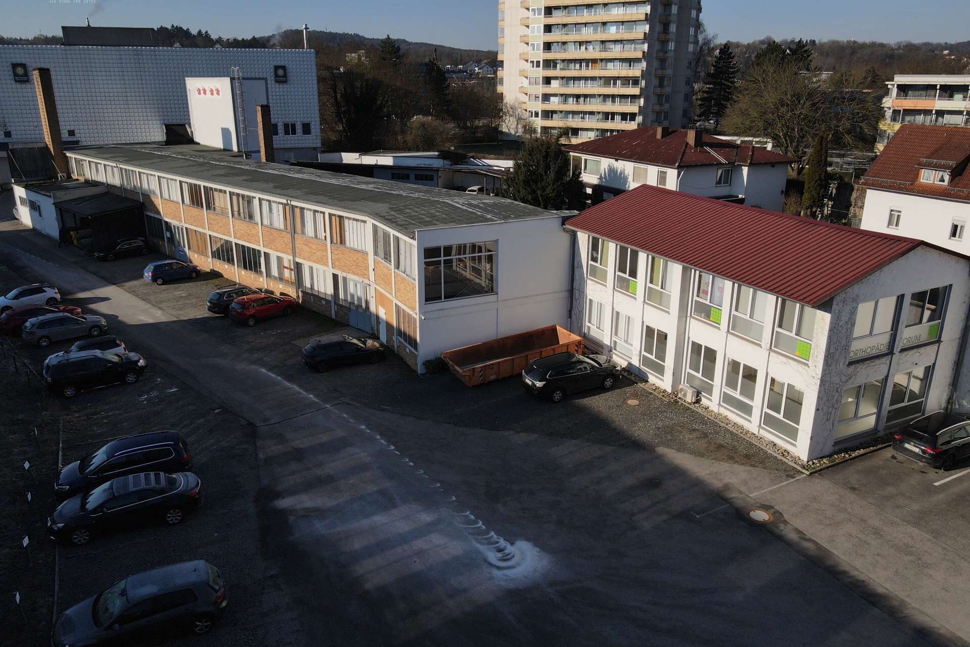 Die Gebäude wurden fortlaufend renoviert und modernisiert. Ursprünglich wurden diese als Möbelwerkstatt genutzt, dadurch bietet dieses Objekt große Flächen zur Vermietung. Auf dem 7445 m² großen Grundstück befinden sich neben den Lagerflächen 67 Stellplätze. Des Weiteren verfügt der Komplex über zwei Wohn/Geschäftshäuser. Die Gebäude bieten gesammt eine Nutzfläche von 3400m².
