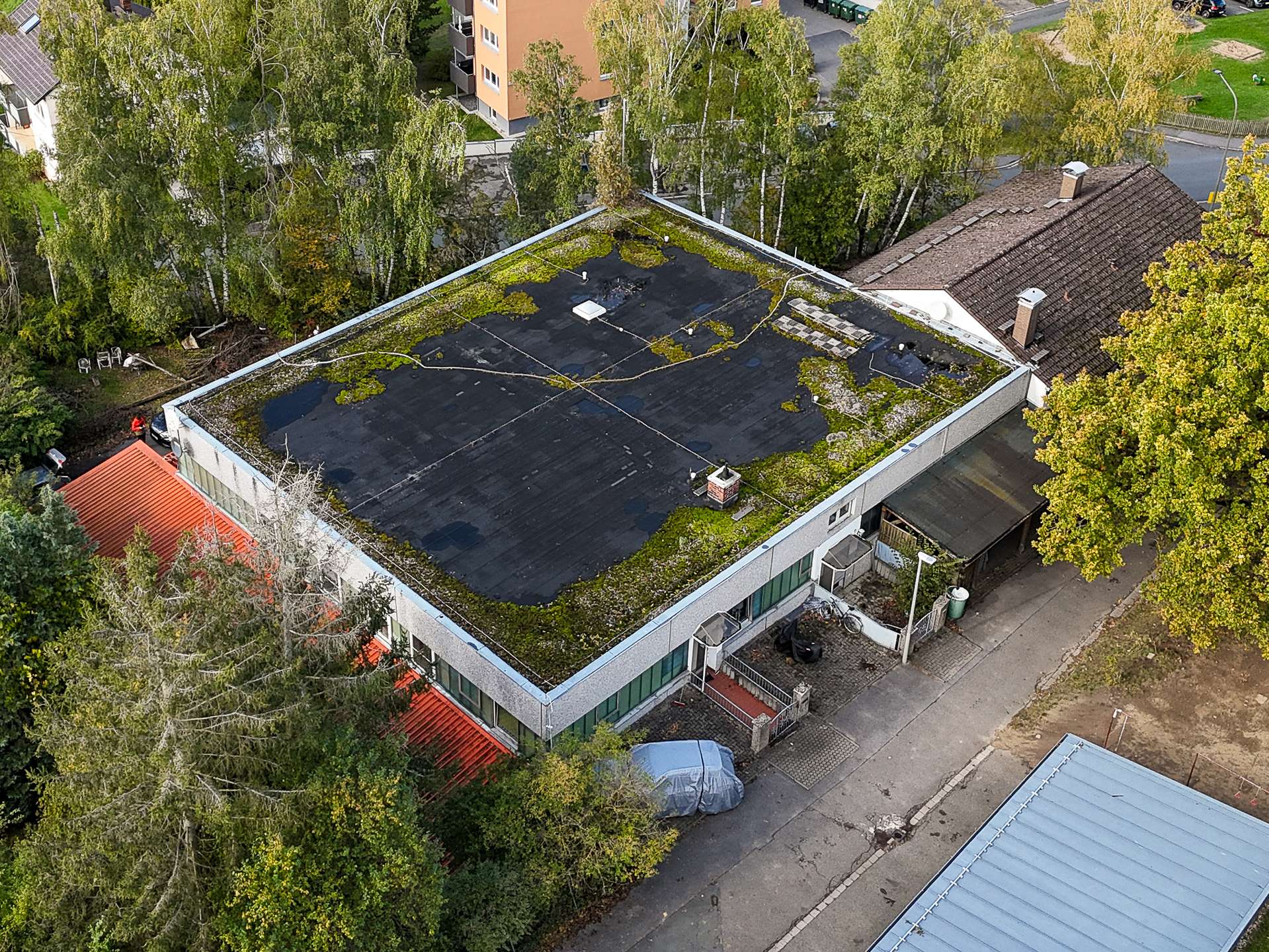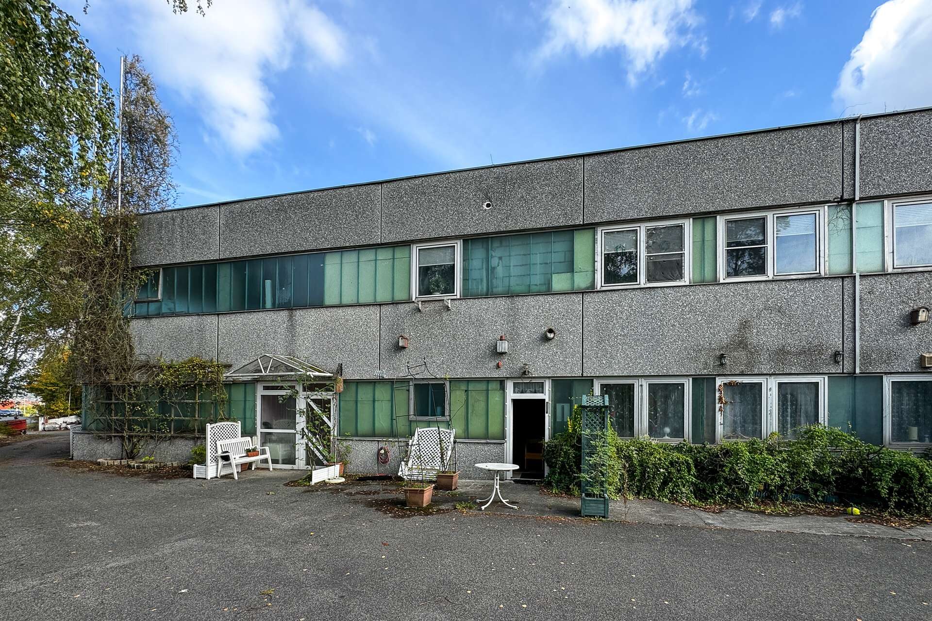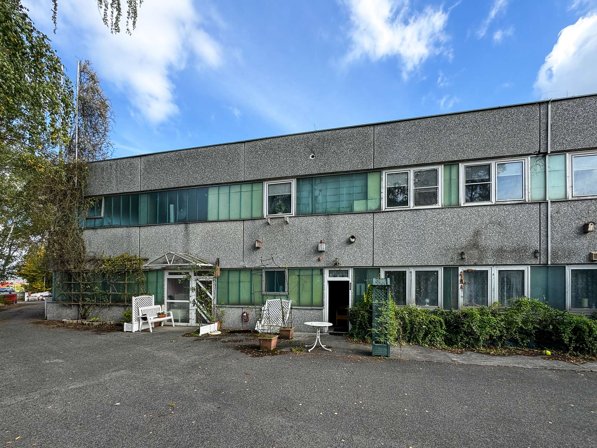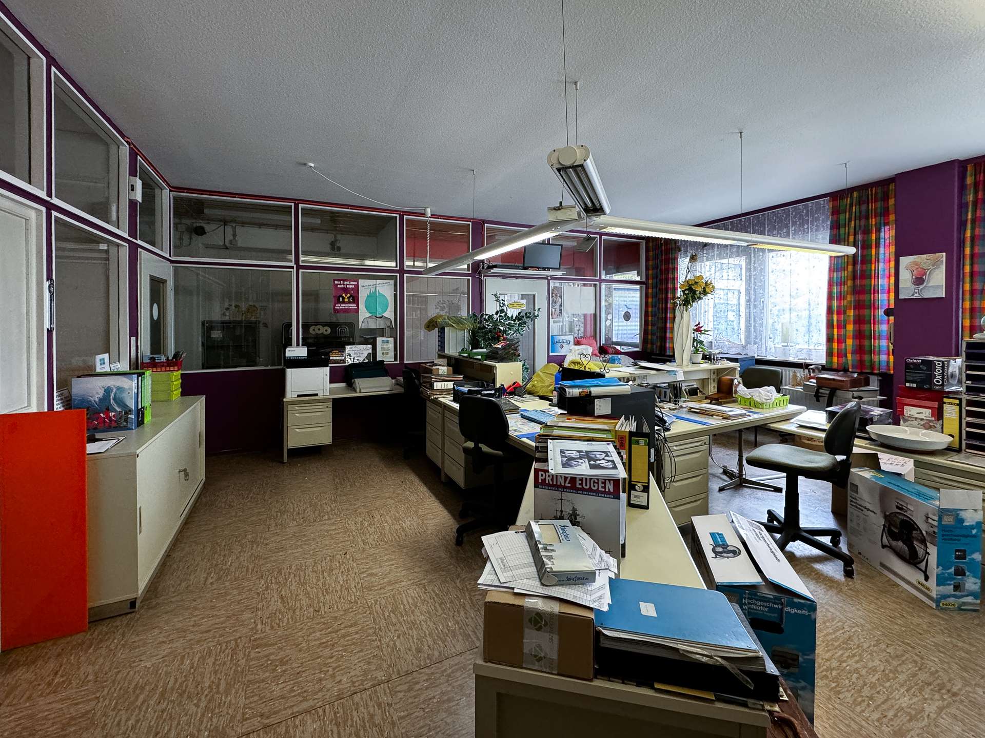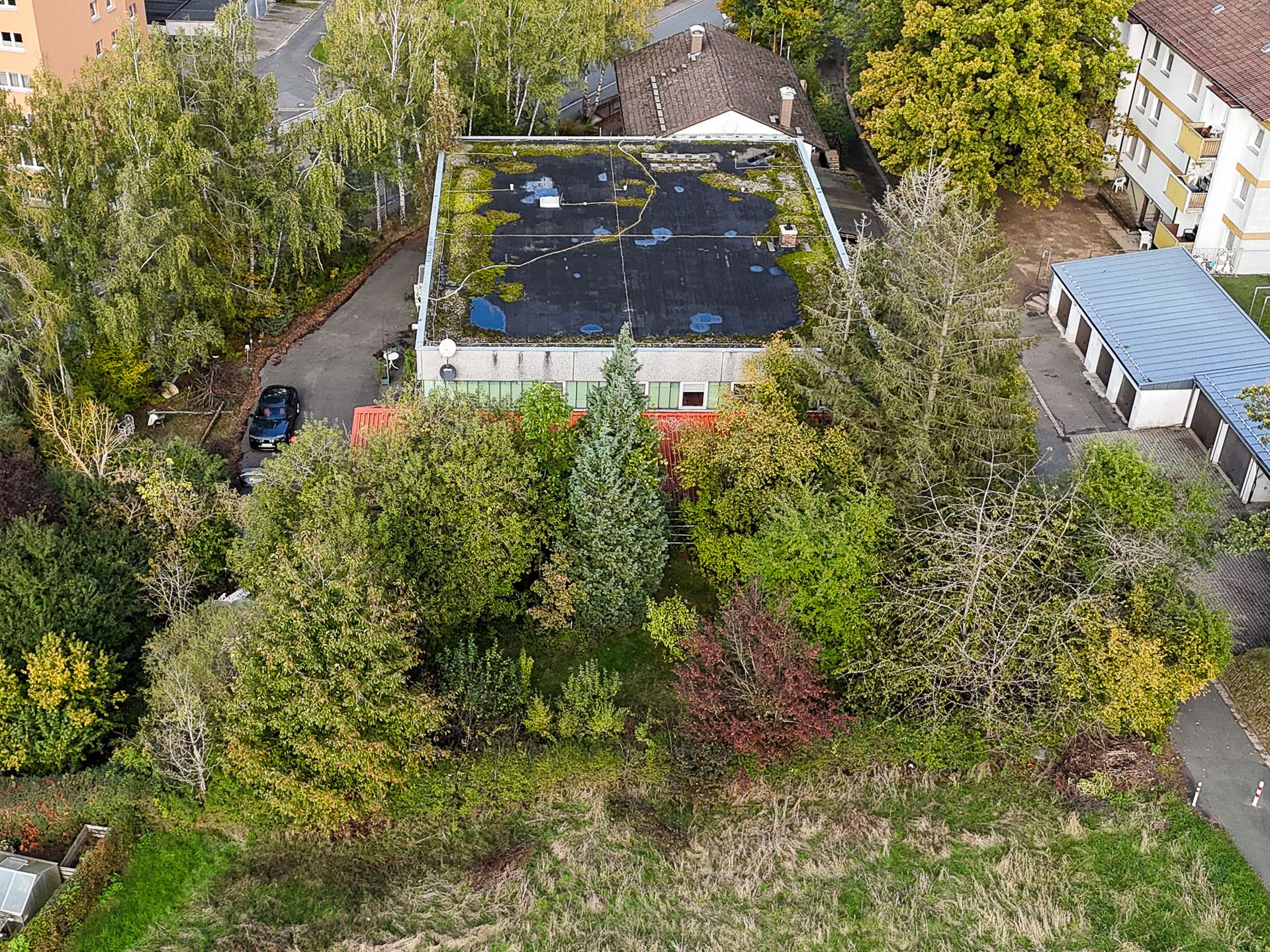 Der Gebäudekomplex wurde 1976 in massiver Bauweise erbaut, im Jahr 1985 erweitert und seitdem fortlaufend Instand gehalten. Dieser befindet sich auf einem ca. 3170 m² großen Grundstück, welches über eine Einfriedung aus Zäunen und Bäumen verfügt. Zudem gibt es mehrere Eingänge und Zufahrten, was eine Teilung der Flächen vereinfacht. Das Objekt befindet sich in zentraler Lage und ist somit ideal für Unternehmen, die eine gute Sichtbarkeit und Erreichbarkeit wünschen.