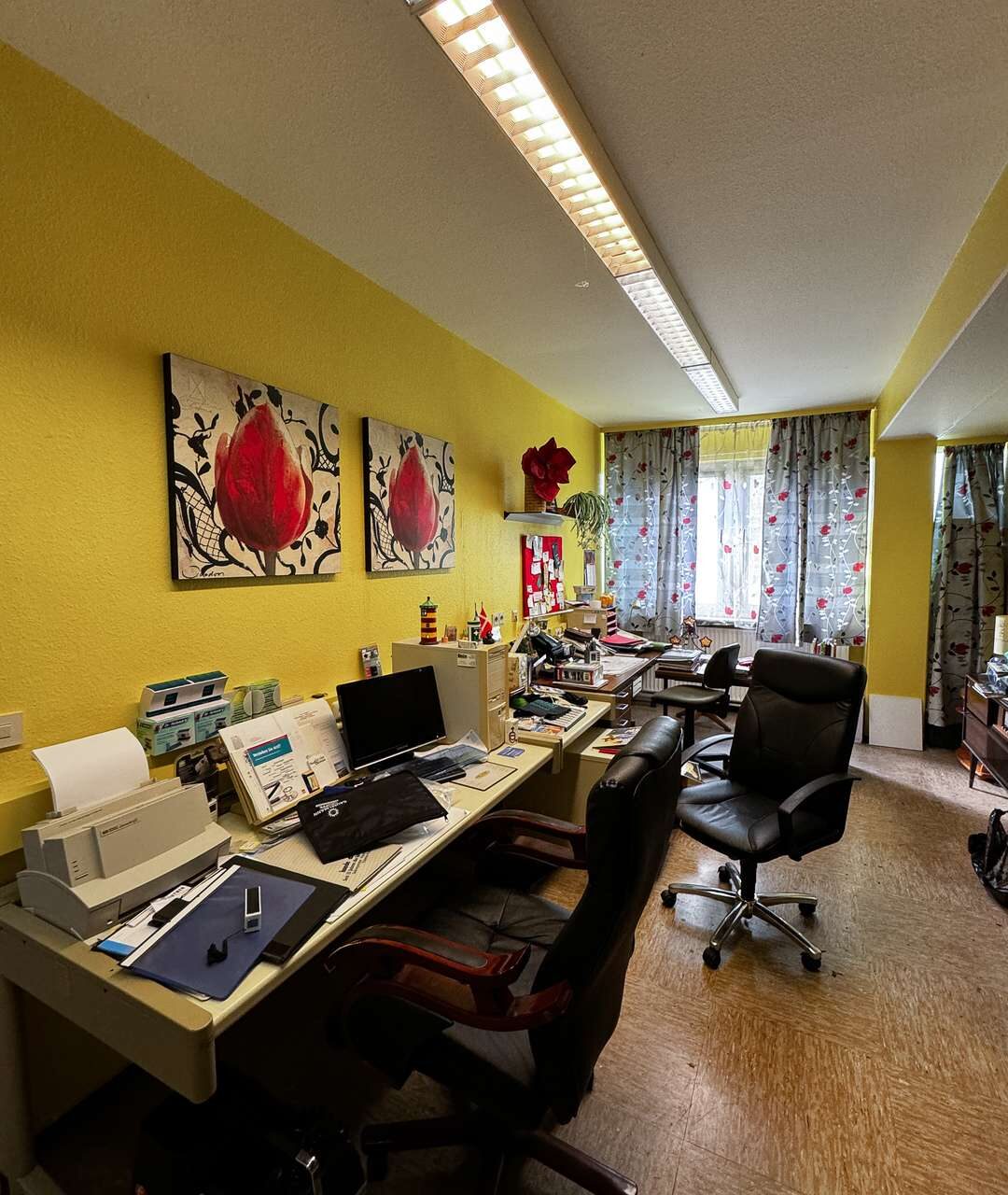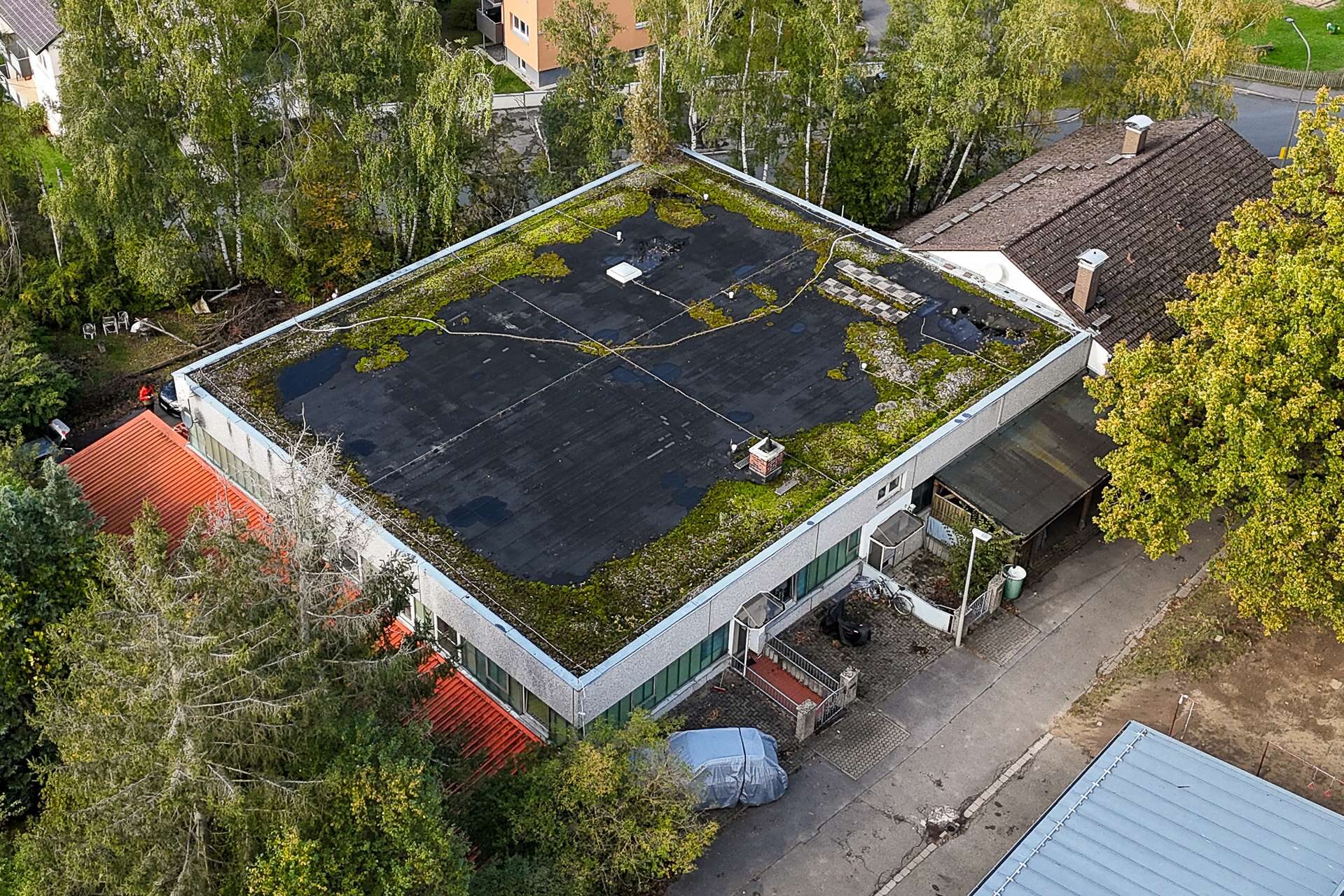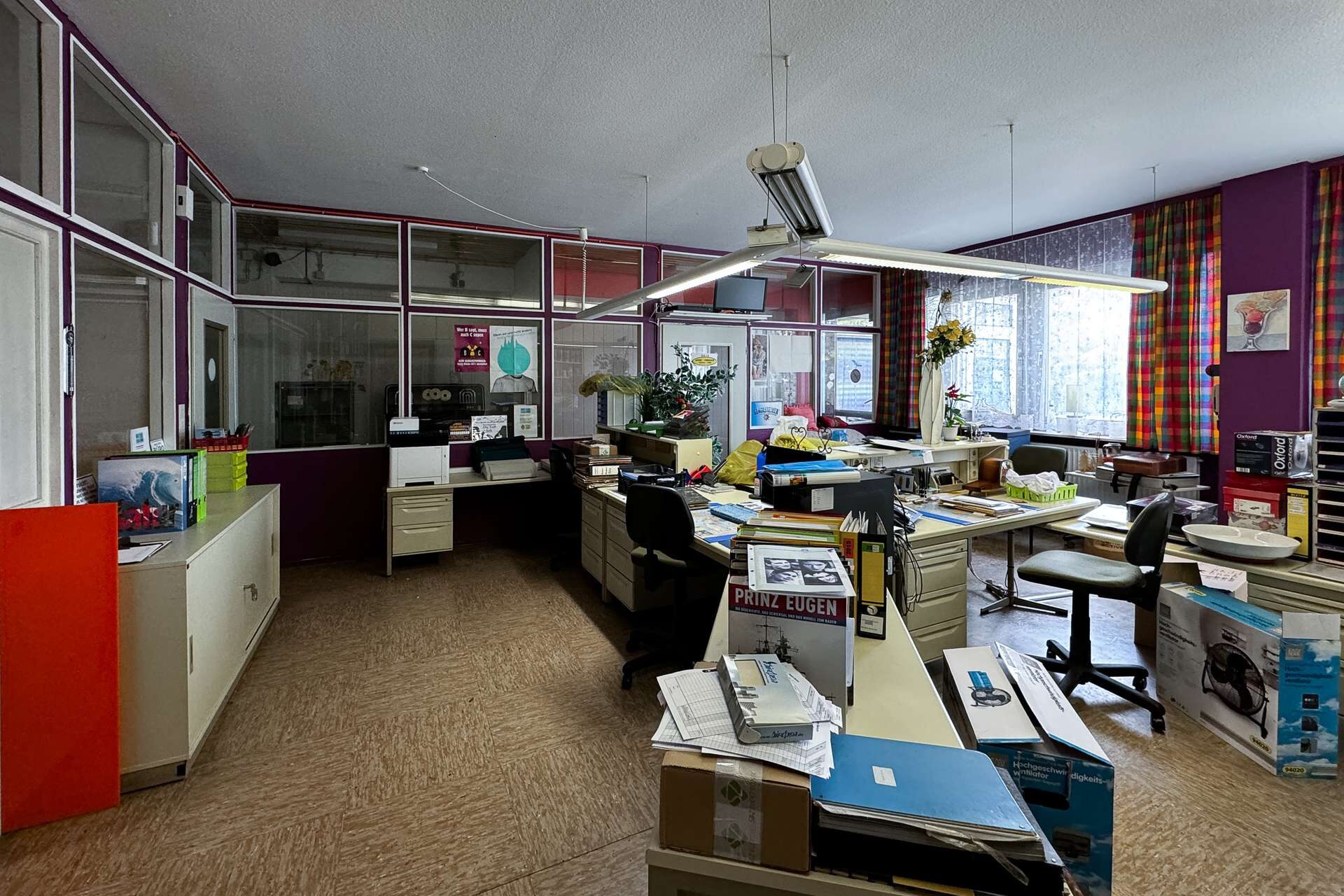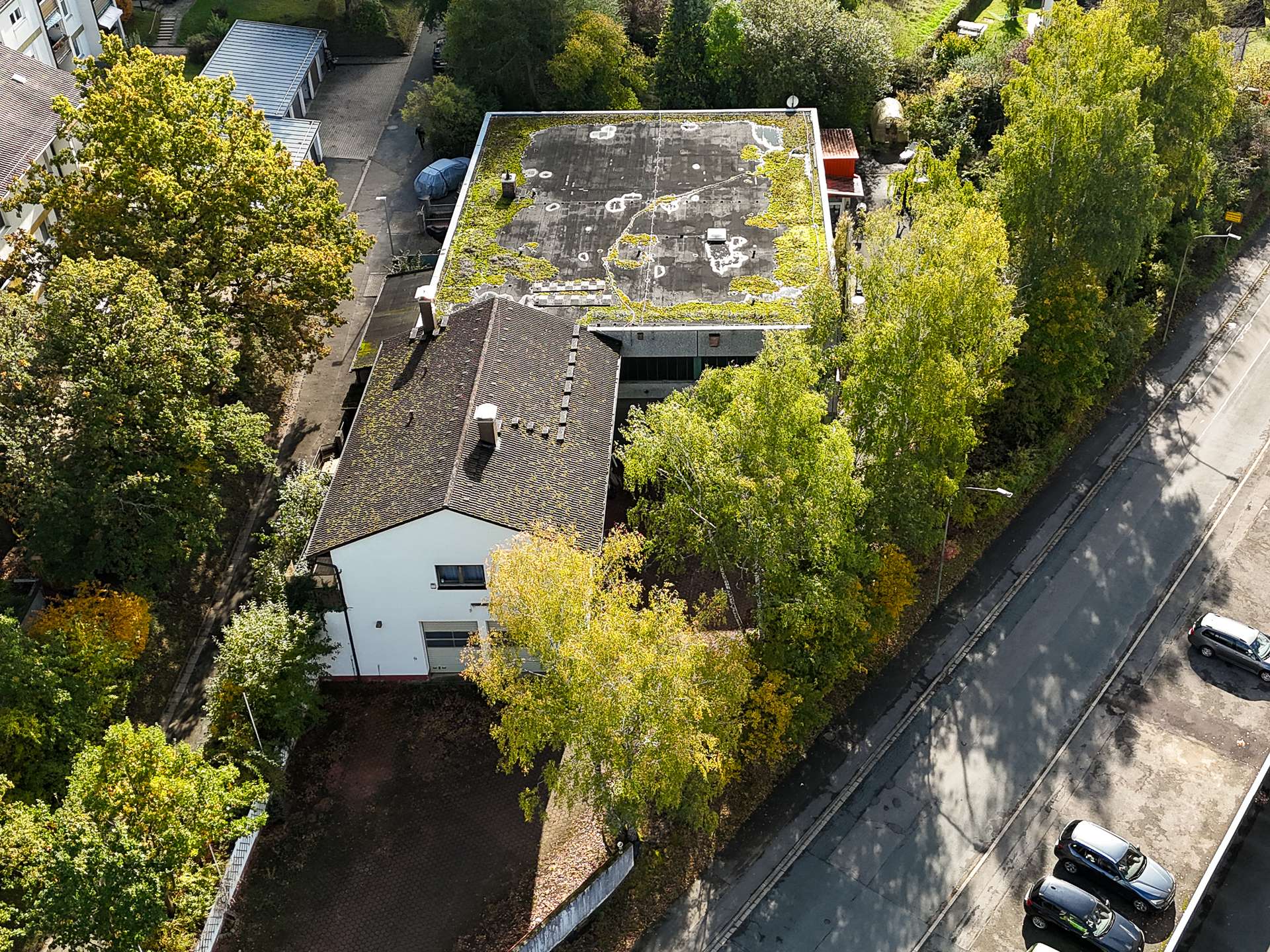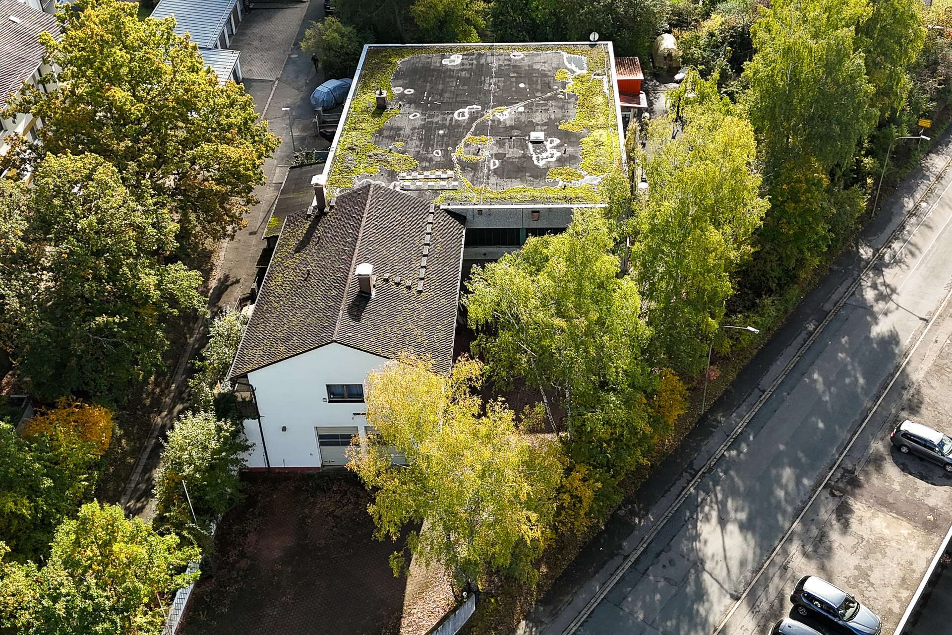 Der Gebäudekomplex wurde 1976 in massiver Bauweise erbaut, im Jahr 1985 erweitert und seitdem fortlaufend Instand gehalten. Dieser befindet sich auf einem ca. 3170 m² großen Grundstück, welches über eine Einfriedung aus Zäunen und Bäumen verfügt. Zudem gibt es mehrere Eingänge und Zufahrten, was eine Teilung der Flächen vereinfacht. Das Objekt befindet sich in zentraler Lage und ist somit ideal für Unternehmen, die eine gute Sichtbarkeit und Erreichbarkeit wünschen.