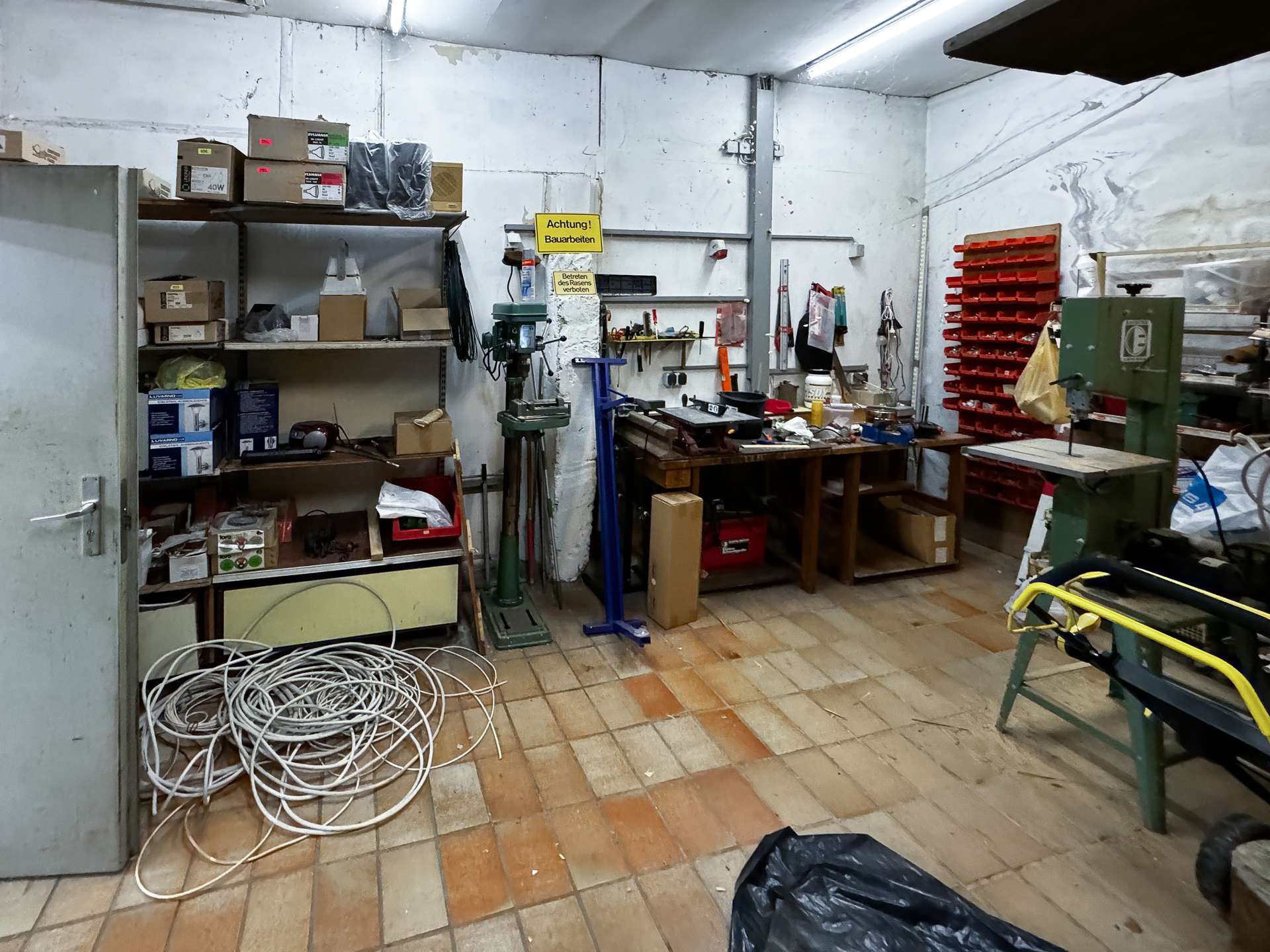Das große elektrische Hoftor bietet die Zufahrt zum Gewerbe im Erdgeschoss, durch den großen Hof ist eine Anlieferung hier problemlos möglich. Im Erdgeschoss gelangen Sie über verschiedene Türen und Tore auf die Gewerbeflächen. Diese werden aktuell als Lager/ Werkstatt und Büro genutzt, und verfügen über eine Fläche von 730 m². Zudem gibt es noch Garagen mit einer Fläche von 120 m². Diese können Sie individuell nutzen. Auch Parkplätze für Kunden oder Mitarbeiter sind vor der Türe in einer Vielzahl vorhanden.