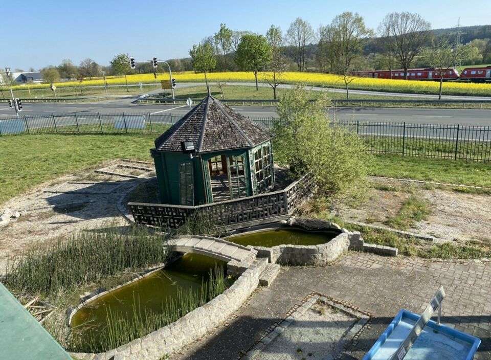 Im Außenbereich befindet sich ein Teich und ein Gartenpavillon. Das gesamte
