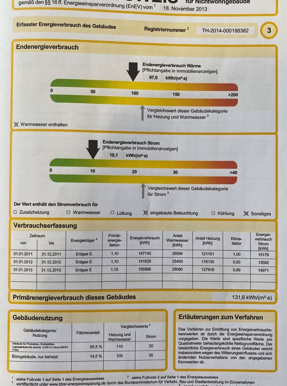 Dazu gehören die 40 m breite Fensterfront im derzeitigen Ausstellungsbereich, sowie die vorhandenen großflächigen Dachfenster welche dem Showroom einen optimalen Lichteinfall garantieren. Weitere exklusive Annehmlichkeiten sind eine Fußbodenheizung, Sanitärbereiche für Kunden und Mitarbeiter, LED-Beleuchtung im Ausstellungs/Bürobereich sowie eine hochwertige Marken-Einbauküche aus dem Jahr 2020. Zur Sicherheit Ihres Unternehmens befindet sich eine hochwertige Sicherheitsanlage auf dem Grundstück. Das Objekt wird mittels 10 Full-HD Outdoor-Kameras (20m Nachtsicht), sowie einer Alarmanlage mit Fernüberwachung gesichert. Als weiteres Sicherheitsmerkmal ist ein Tresor mit ca. 450 Liter Volumen zur Sicherung von Wertsachen vorhanden. Das Gebäude wird mittels einer Gaszentralheizung beheizt und verfügt außerdem über eine 9,9 kW Photovoltaikanlage mit Batterieeinspeisung.