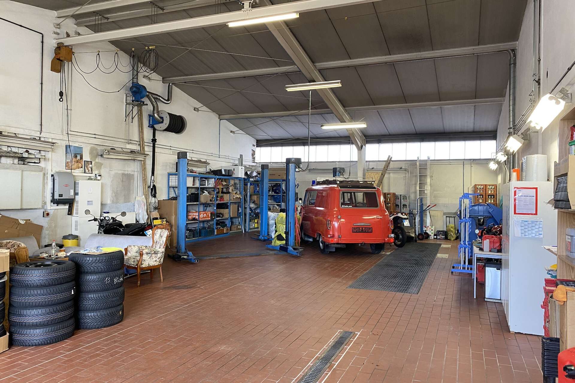 Des Weiteren verfügt diese Immobilie auch im Auto Servicebereich über zahlreiche hochwertige Ausstattungsmerkmale. So ermöglichen Ihnen fünf Rolltore mit einer Höhe von ca. 4 m eine problemlose Ein- und Ausfahrt von sämtlichen Fahrzeugen. Der Werkstattbereich verfügt neben zwei Hebebühnenstellplätzen auch über einen 3 KW starken Kolbenkompressor aus dem Jahr 2020, diverse Gruben ermöglichen die Reparatur an Fahrzeugen in fast allen Dimensionen. Eine eigene Waschhalle rundet das Angebot des Werkstattbereiches optimal ab.
