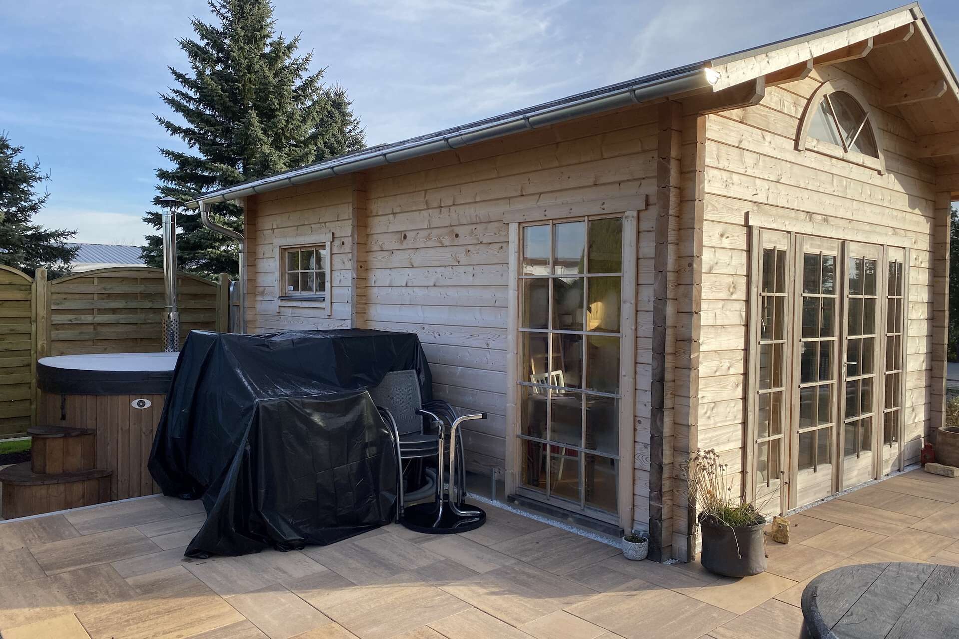 Ein weiteres Highlight dieses Objektes befindet sich im hinteren Teil des Grundstückes. Hier wurde im Jahre 2020 eine exklusive Wellness Oase geschaffen. Diese besteht aus einem 25 m² großen Schwedenhaus aus Vollholz, mit Terrasse, Kinderspielbereich und einem Badezuber für bis zu 8 Personen auf dem hinteren Teil des Geländes.