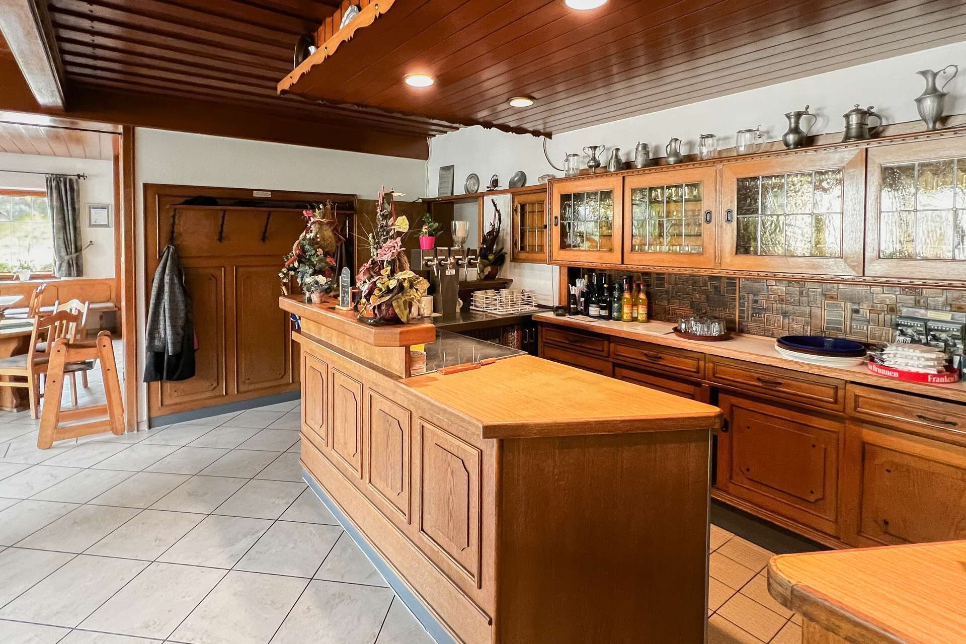 Im Obergeschoss und Dachgeschoss des Hauses befinden sich insgesamt 11 Gästezimmer, sowie ein Appartement und 2 Einzelzimmer. Diese sind alle bezugsfertig und können ohne großen Aufwand zu einer positiven Rendite beitragen.