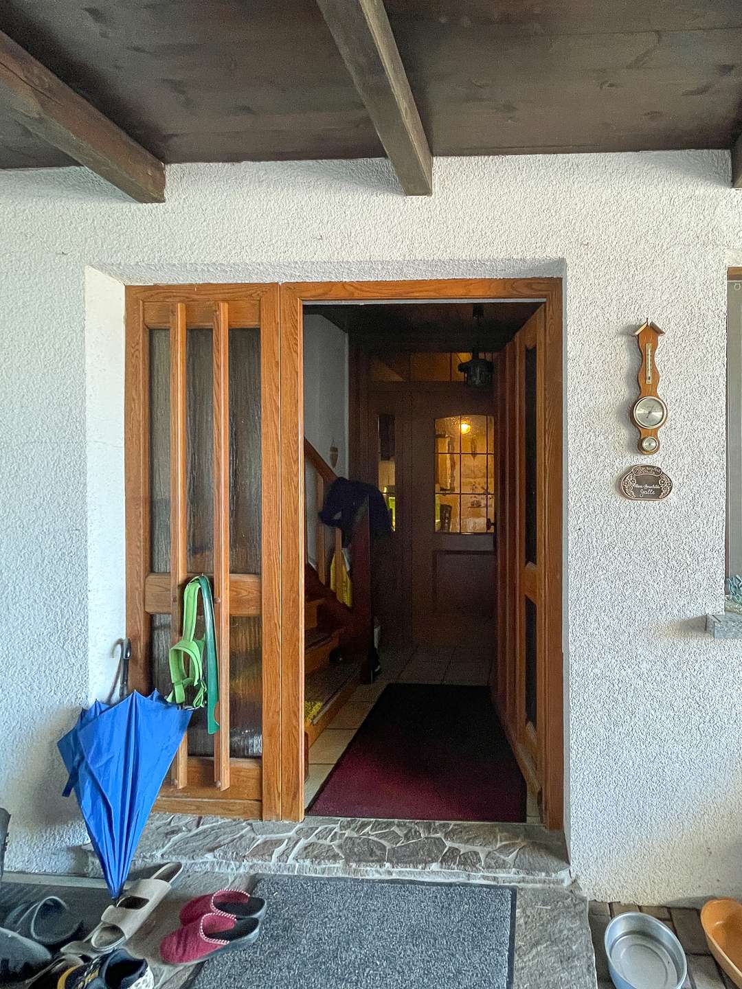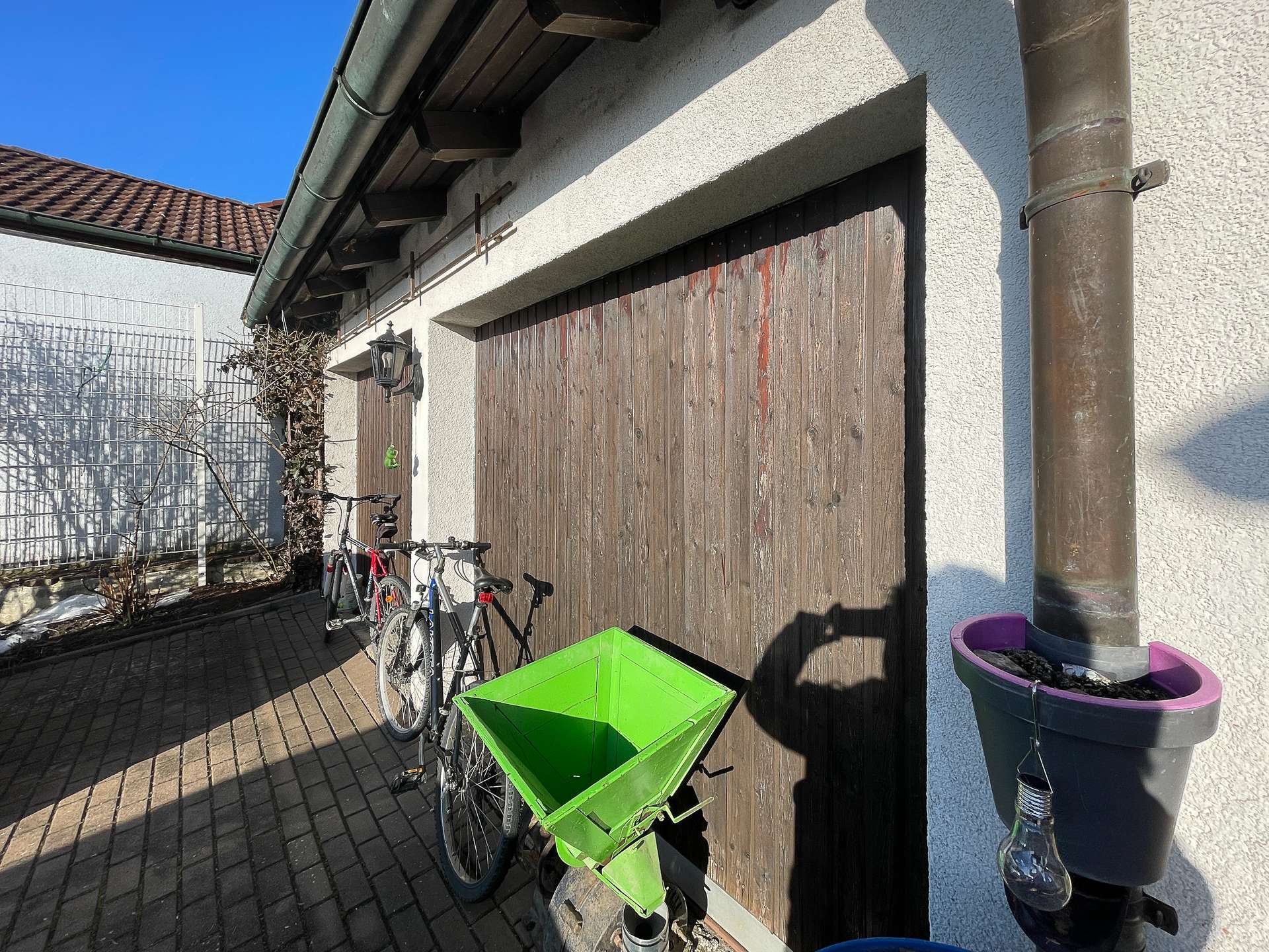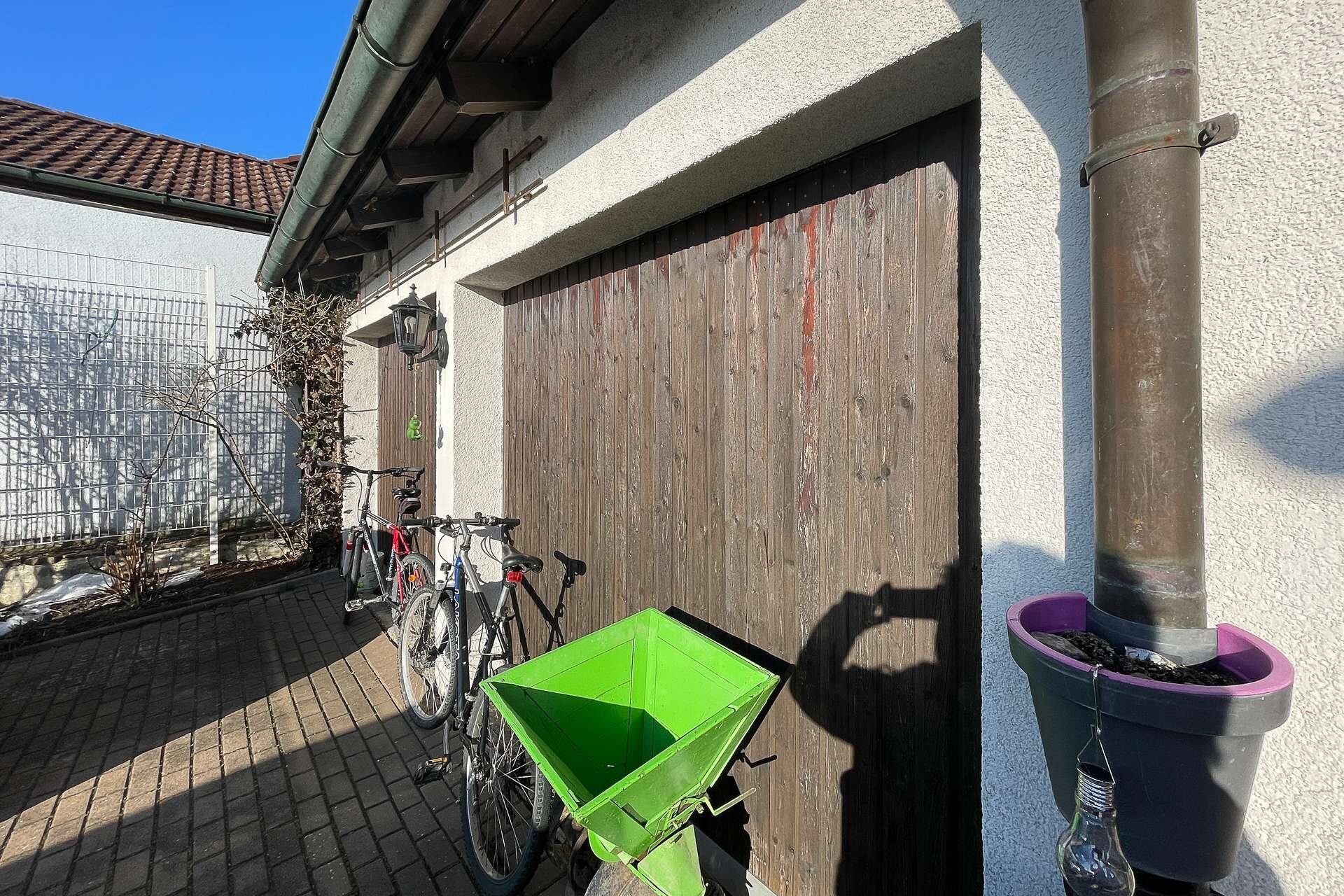 Gegenüber der Eingangstür des Hauses befindet sich der direkte Zugang zur vollunterkellerten Doppelgarage, die nicht nur Platz für Fahrzeuge bietet, sondern auch über zusätzlichen Stauraum verfügt. Diese funktionale Anordnung sorgt für kurze Wege und unterstreicht den praktischen Charakter des Anwesens.