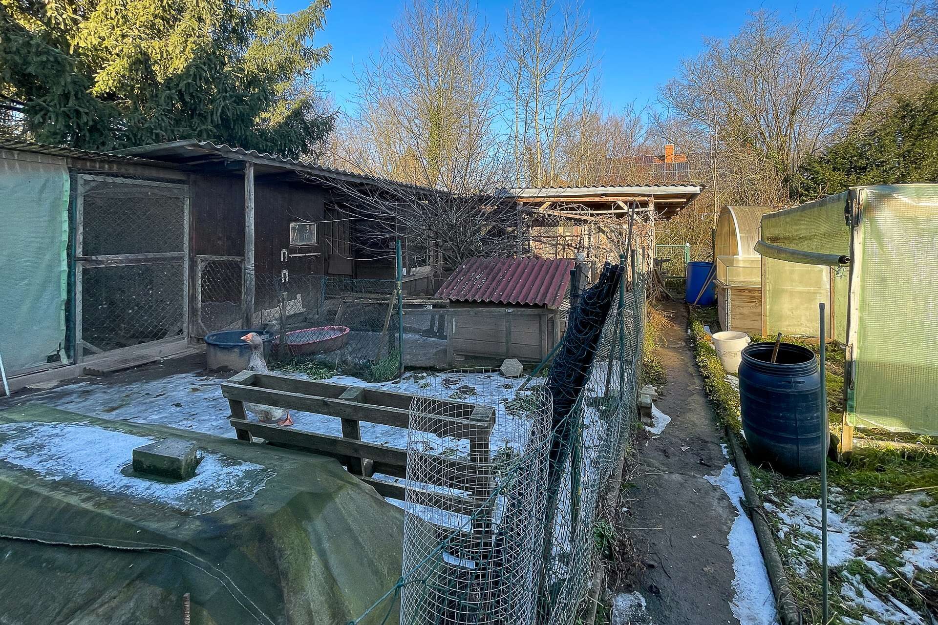 Ein besonderes Highlight der Immobilie ist der großzügige Garten, der sich weitläufig über das Grundstück erstreckt. Neben gepflegten Grünflächen finden sich hier mehrere Stallungen für Tierhaltung, wodurch sich das Anwesen hervorragend für Tierfreunde oder Selbstversorger eignet.