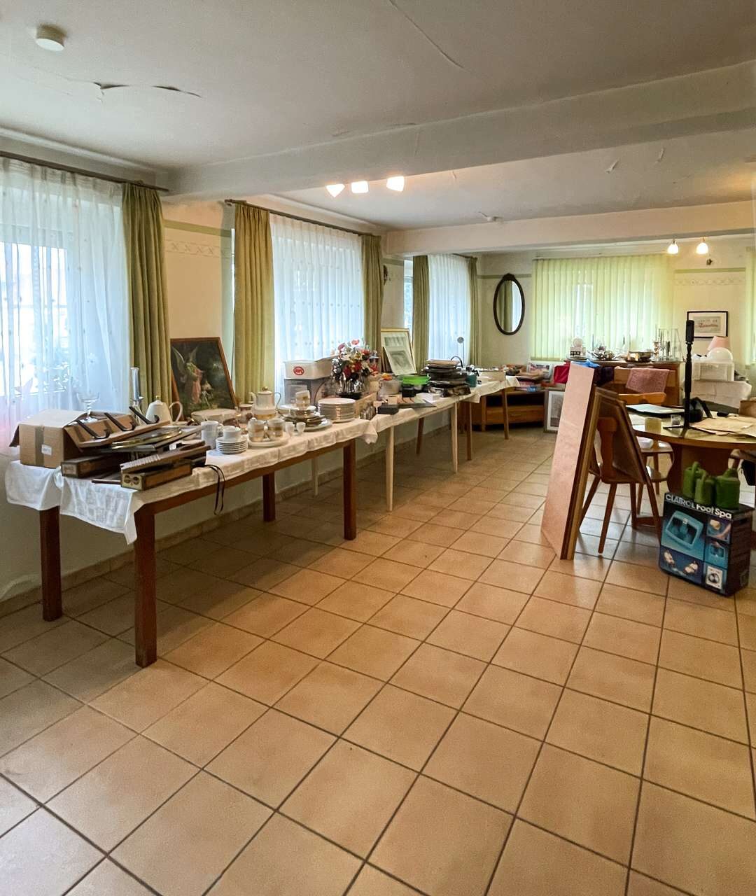 Das Erdgeschoss verfügt über ca. 300 m² Nutzfläche, die aktuell in mehrere Räume aufgeteilt sind. Auf dieser Etage können Sie Ihren Visionen freien Lauf lassen und sich Ihren Wohntraum einrichten.