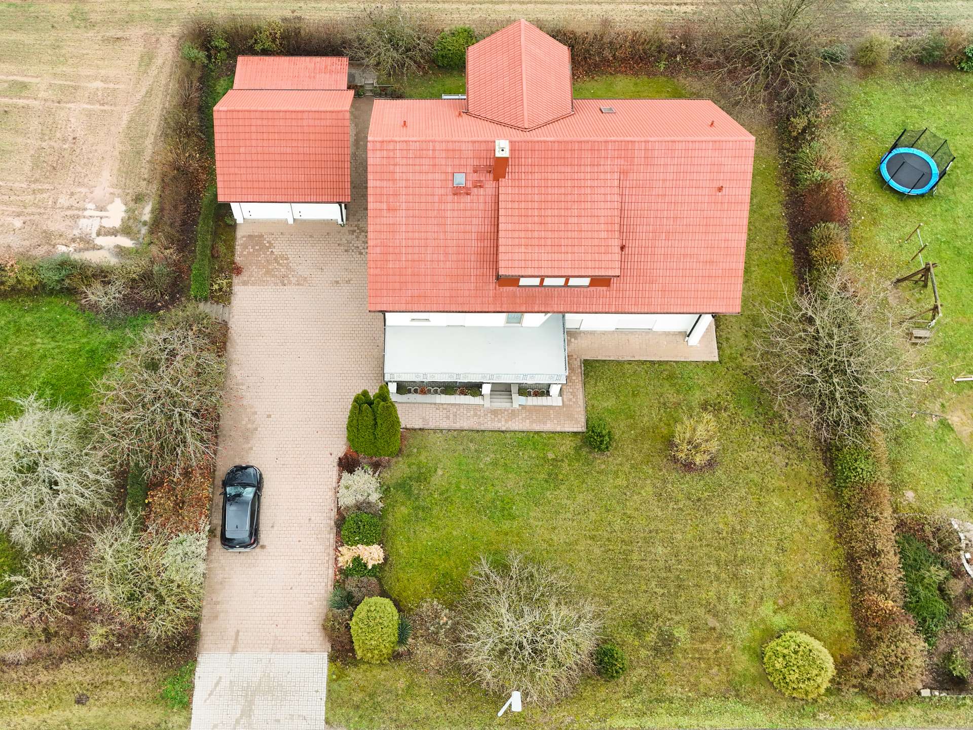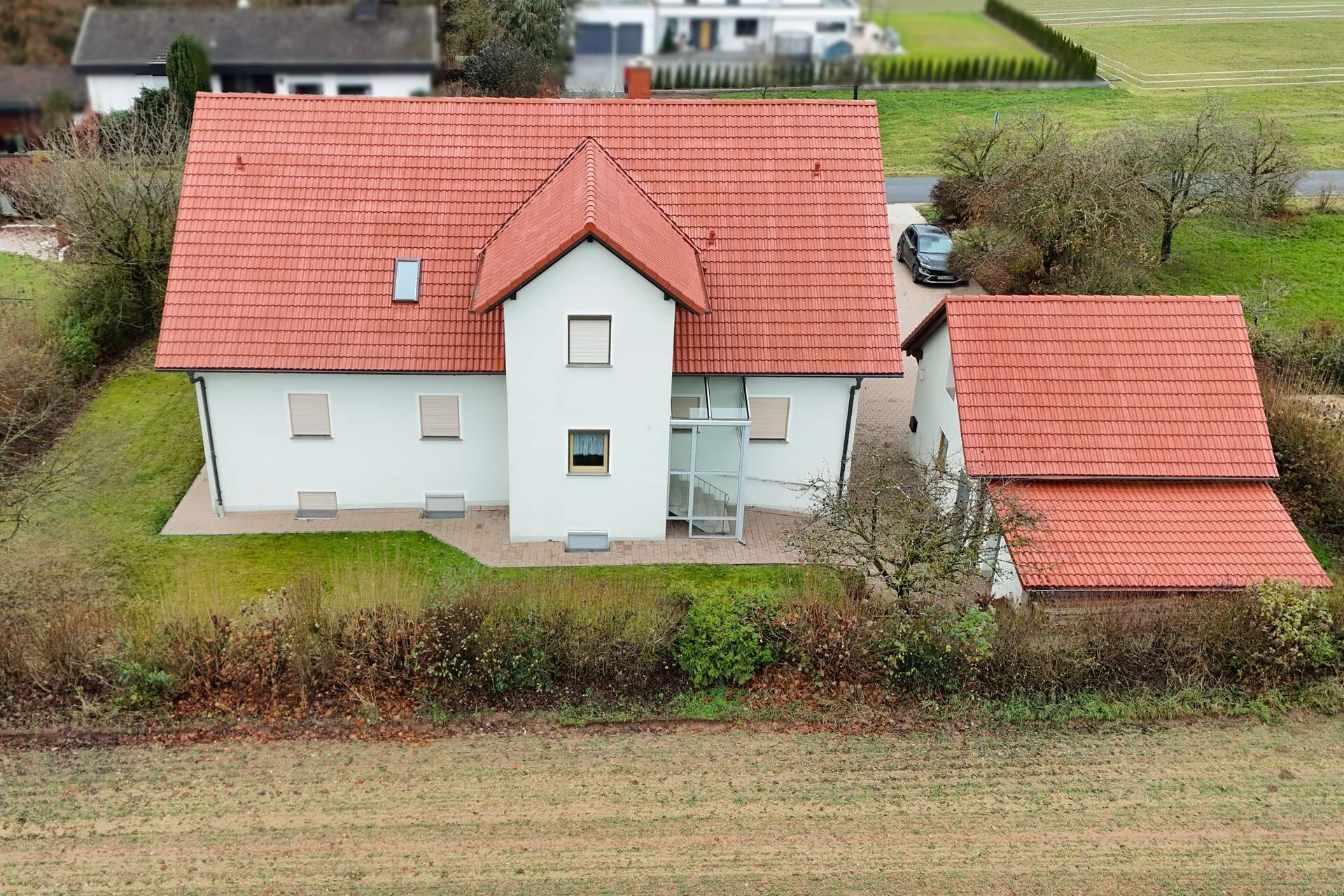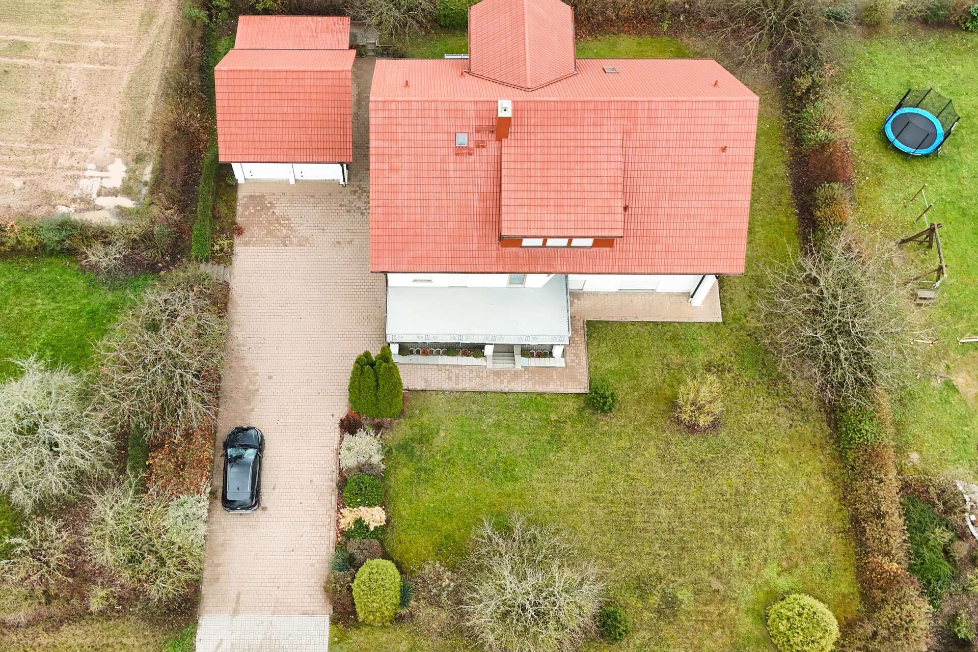 Das Grundstück bietet reichlich Fläche für Garten, Freizeit und Gestaltungsideen. Die Doppelgarage sorgt für komfortables Parken und zusätzlichen Stauraum für Fahrzeuge, Fahrräder oder Arbeitsgeräte. Weitere Stellflächen sind im Außenbereich vorhanden.