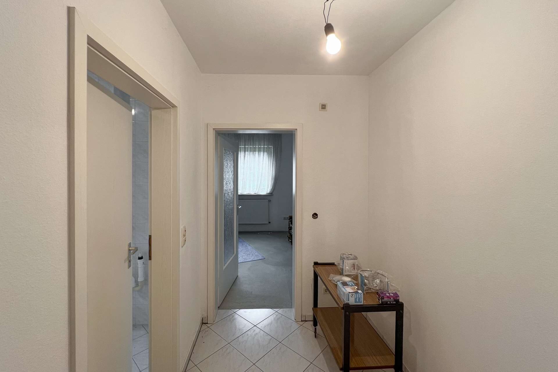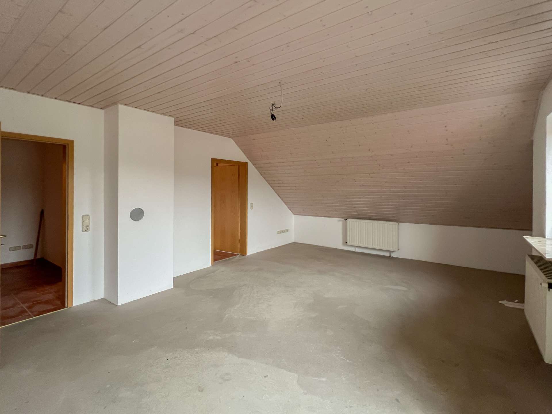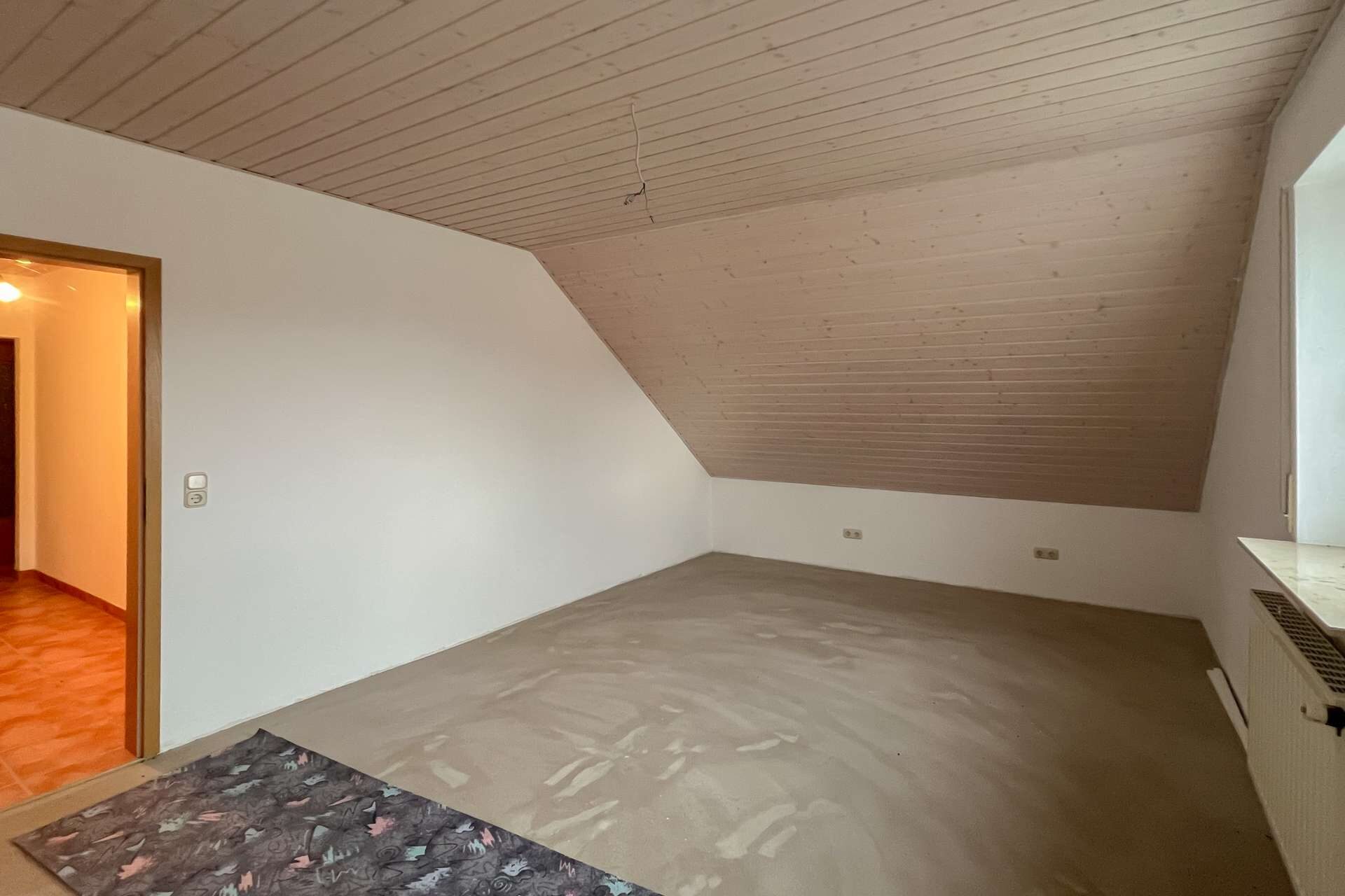 Auch hier sind einige Bereiche noch nicht mit Bodenbelägen versehen, wodurch sich Modernisierung und individuelle Gestaltung unkompliziert realisieren lassen. Die abgeschlossene Struktur dieser Etage macht sie ideal zur Vermietung oder als eigenständigen Wohnbereich für Angehörige.