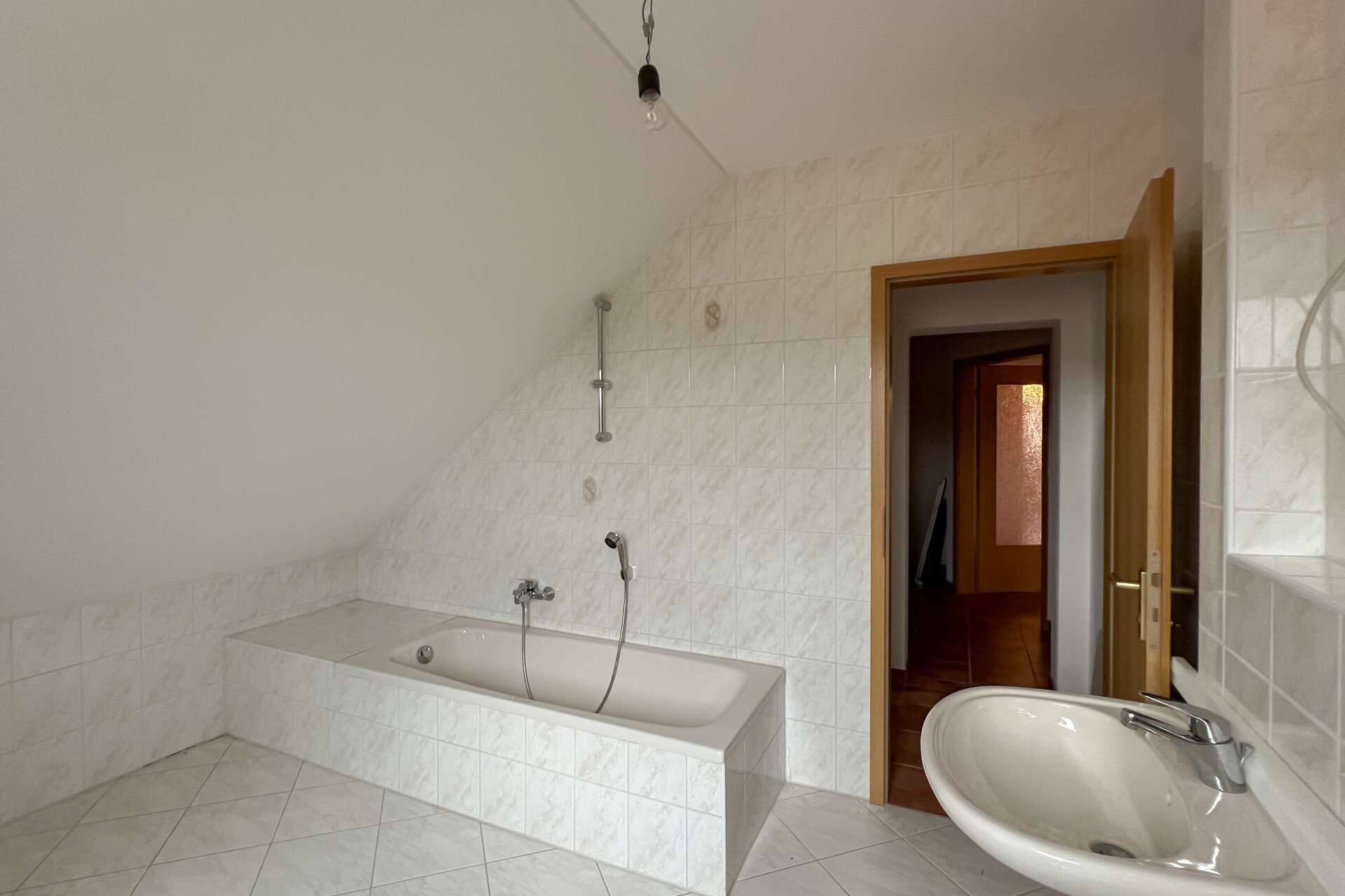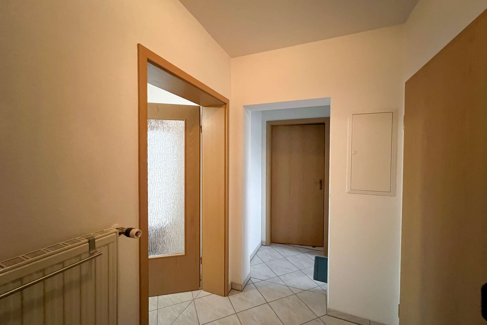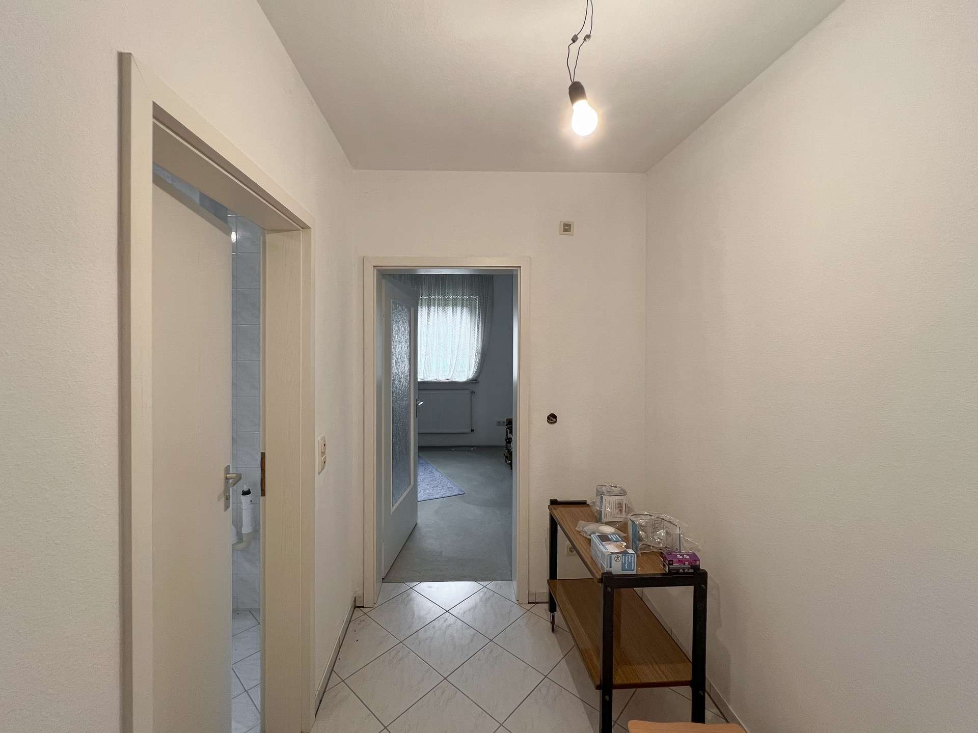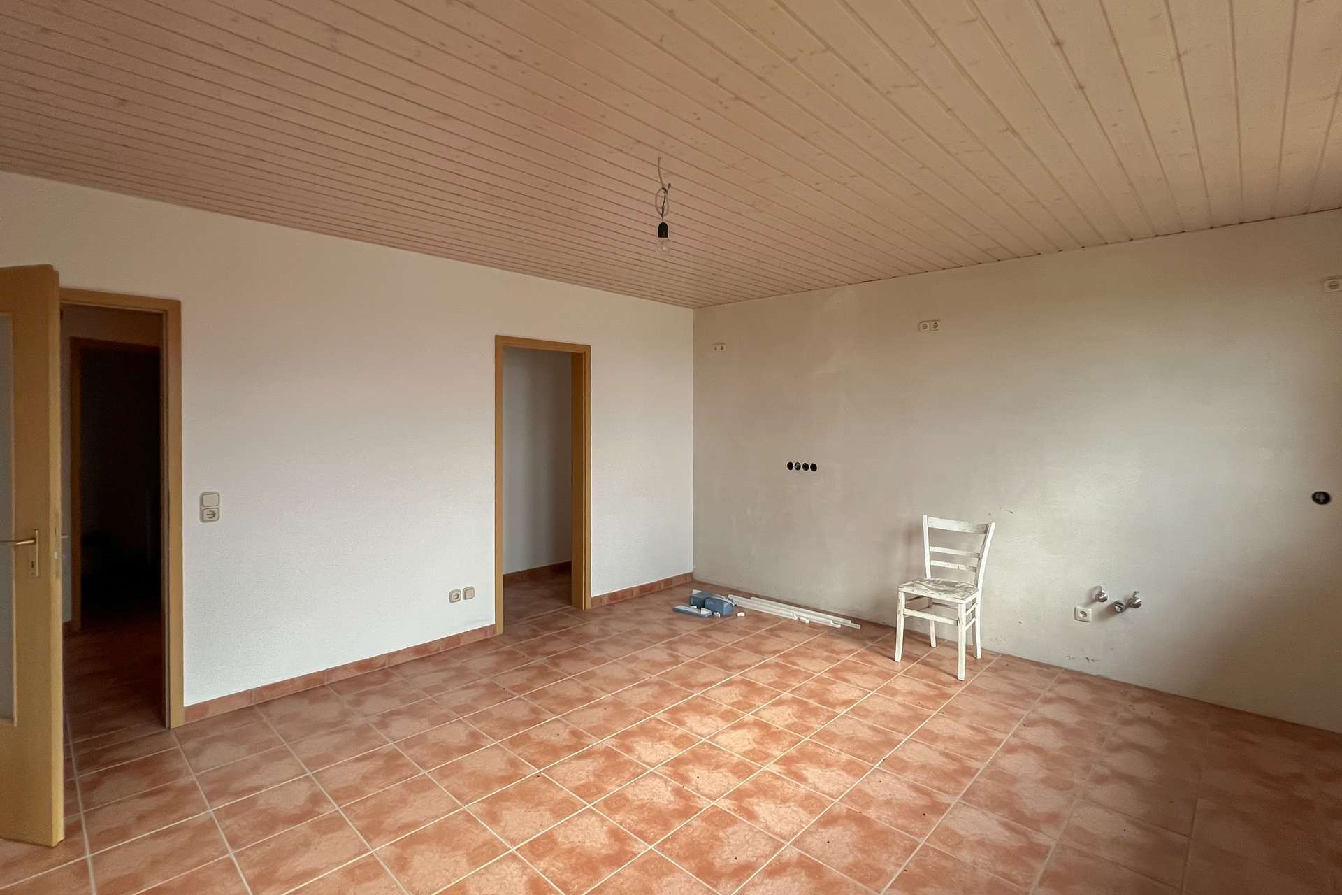 Auch hier sind einige Bereiche noch nicht mit Bodenbelägen versehen, wodurch sich Modernisierung und individuelle Gestaltung unkompliziert realisieren lassen. Die abgeschlossene Struktur dieser Etage macht sie ideal zur Vermietung oder als eigenständigen Wohnbereich für Angehörige.
