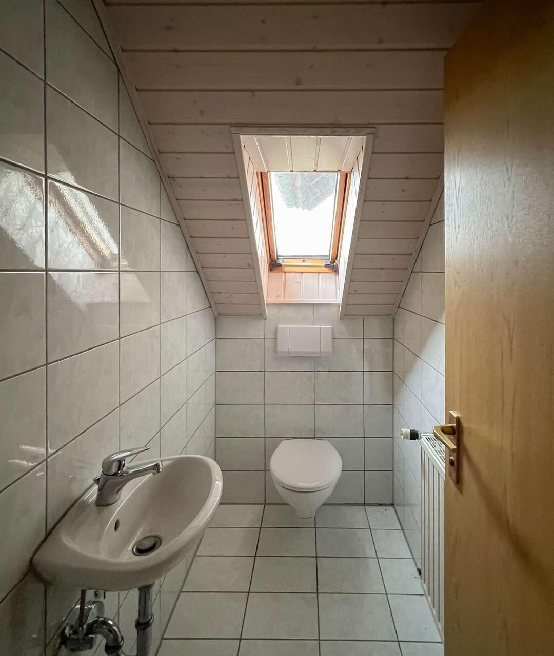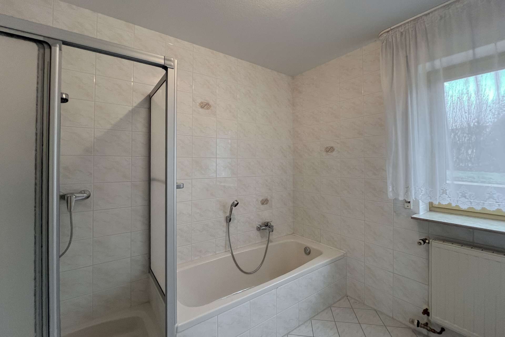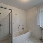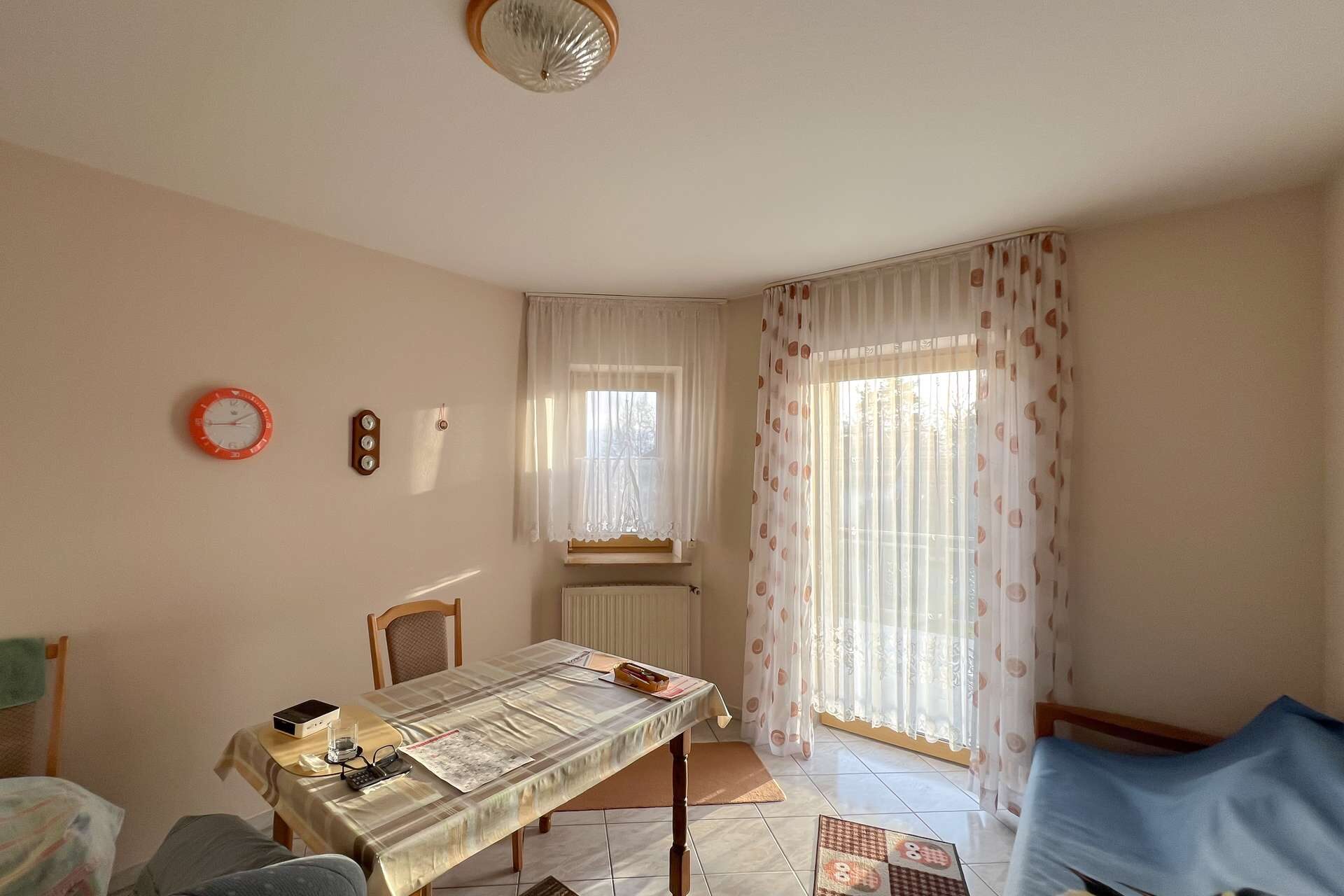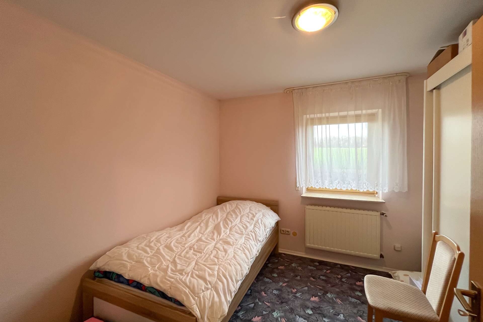 Die obere Wohneinheit entspricht in ihrem Aufbau weitgehend dem Erdgeschoss und bietet vier Zimmer, eine Küche mit angrenzender Speisekammer sowie ein Tageslichtbad und ein separates Gäste-WC. Vom Wohnzimmer aus besteht zudem Zugang zu einem Balkon, der zusätzlichen Freiraum im Außenbereich schafft und den Wohnkomfort dieser Etage spürbar erhöht.