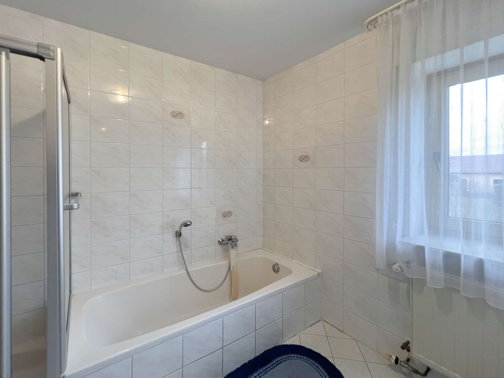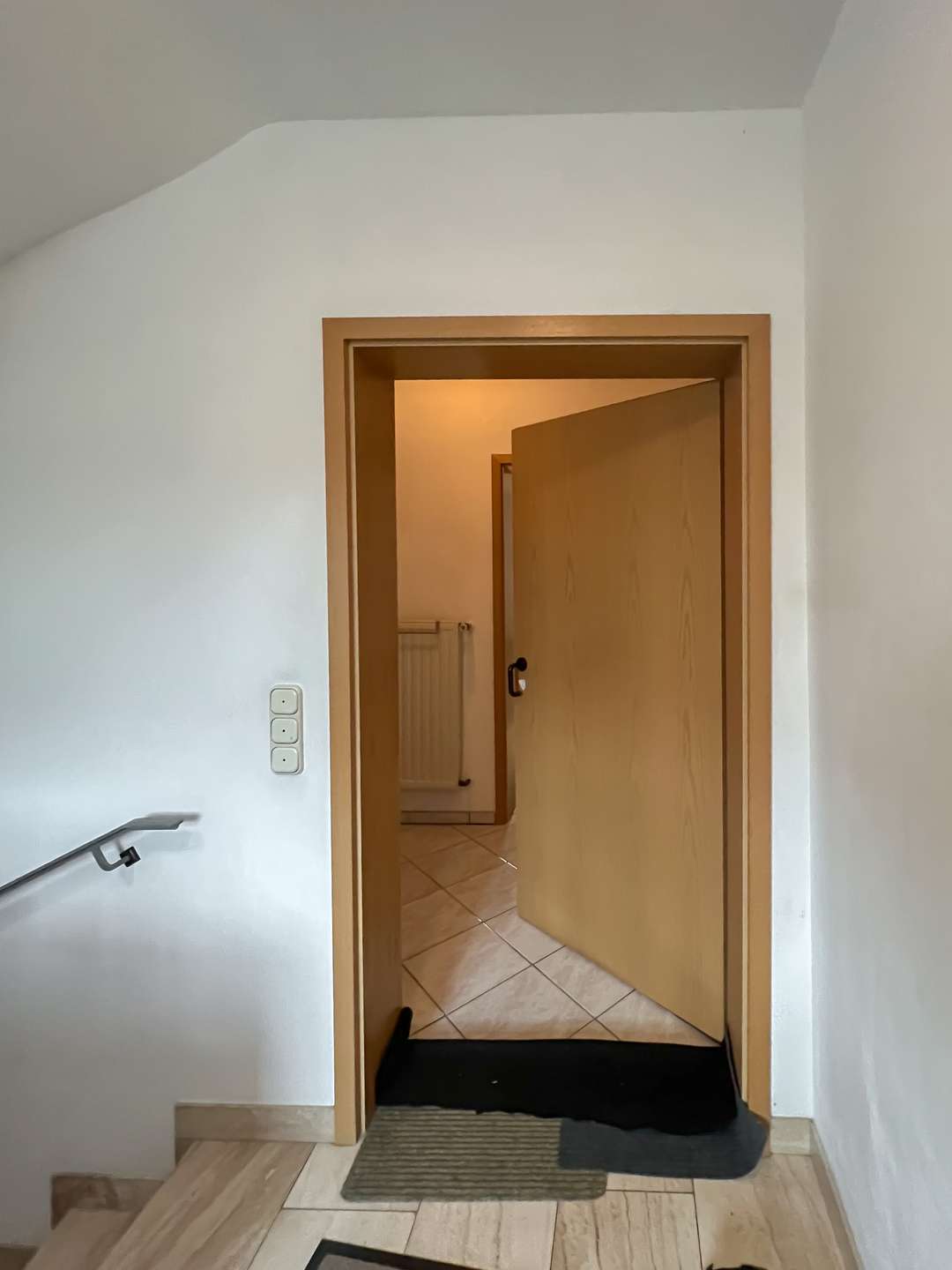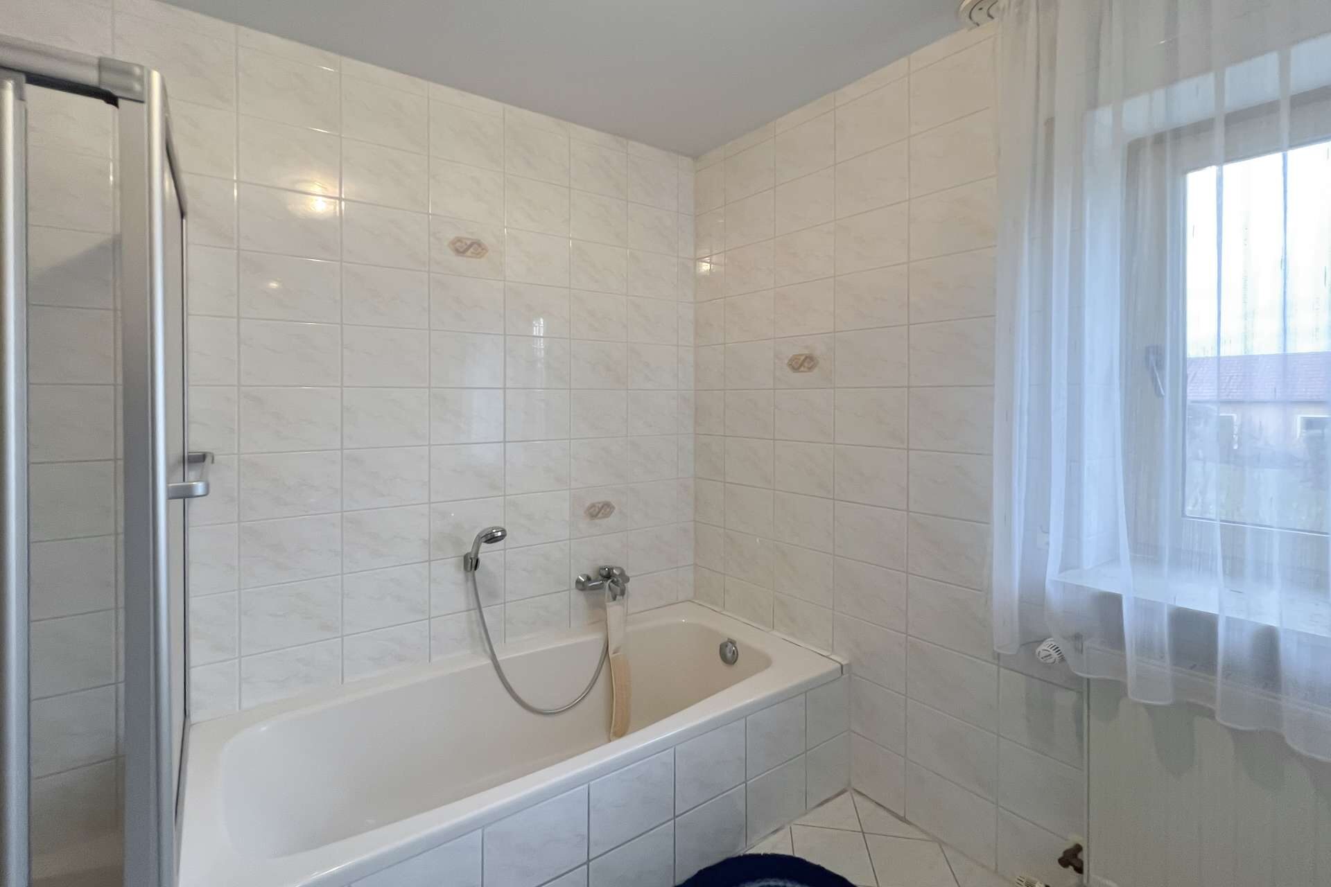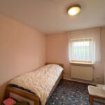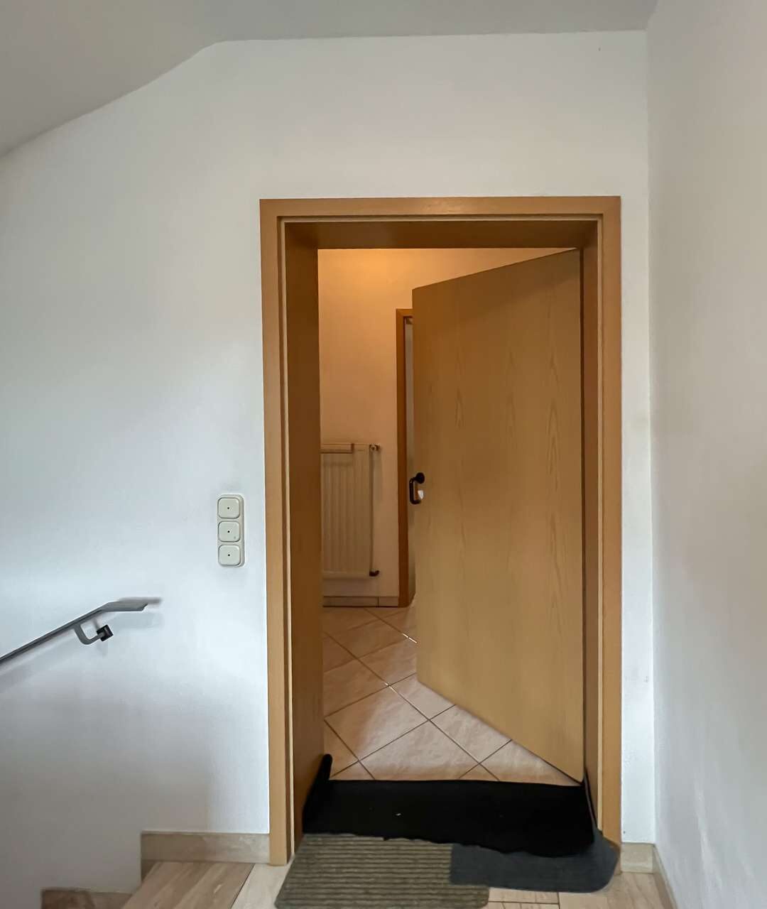 Die obere Wohneinheit entspricht in ihrem Aufbau weitgehend dem Erdgeschoss und bietet vier Zimmer, eine Küche mit angrenzender Speisekammer sowie ein Tageslichtbad und ein separates Gäste-WC. Vom Wohnzimmer aus besteht zudem Zugang zu einem Balkon, der zusätzlichen Freiraum im Außenbereich schafft und den Wohnkomfort dieser Etage spürbar erhöht.