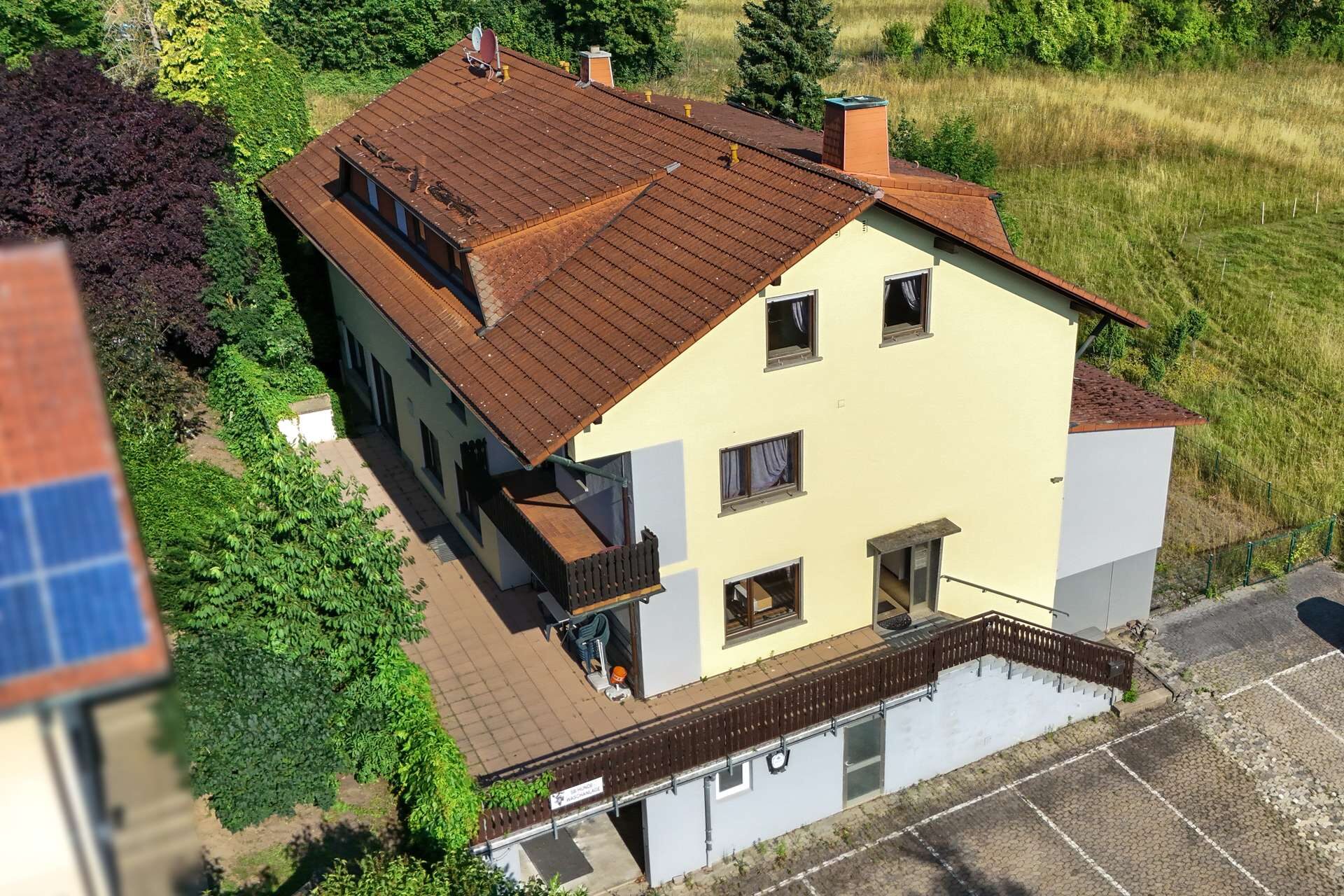 Zur Immobilie gehören eine Garage sowie acht Außenstellplätze, die komfortable Parkmöglichkeiten für Gäste und Mitarbeitende bieten. Ein praktischer Keller und weitere Abstellflächen ermöglichen eine effiziente Lagerung von Vorräten und Betriebsmitteln. Der großzügige Garten rundet das Angebot ab – ideal als grüner Rückzugsort oder als Außenbereich für Gäste.