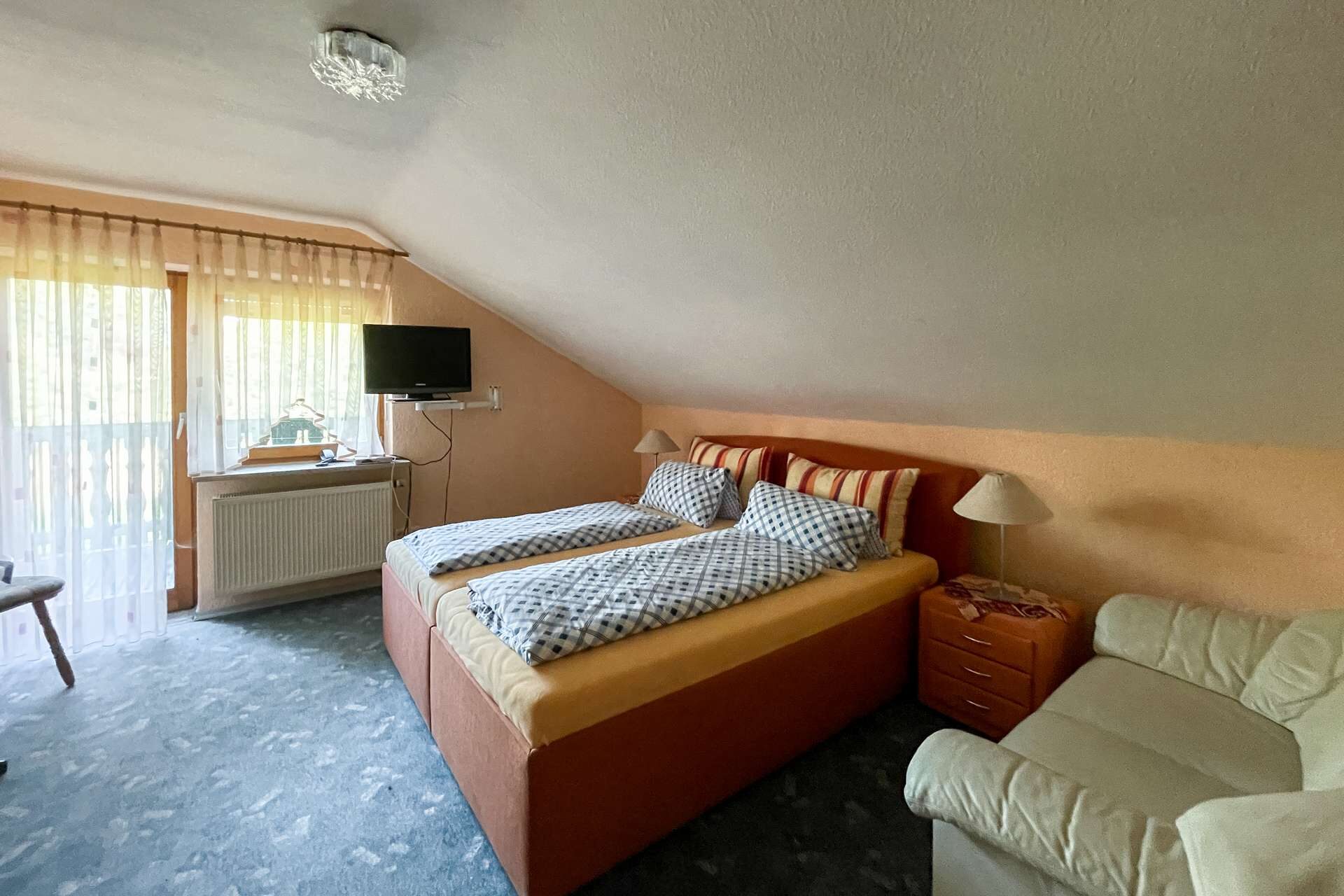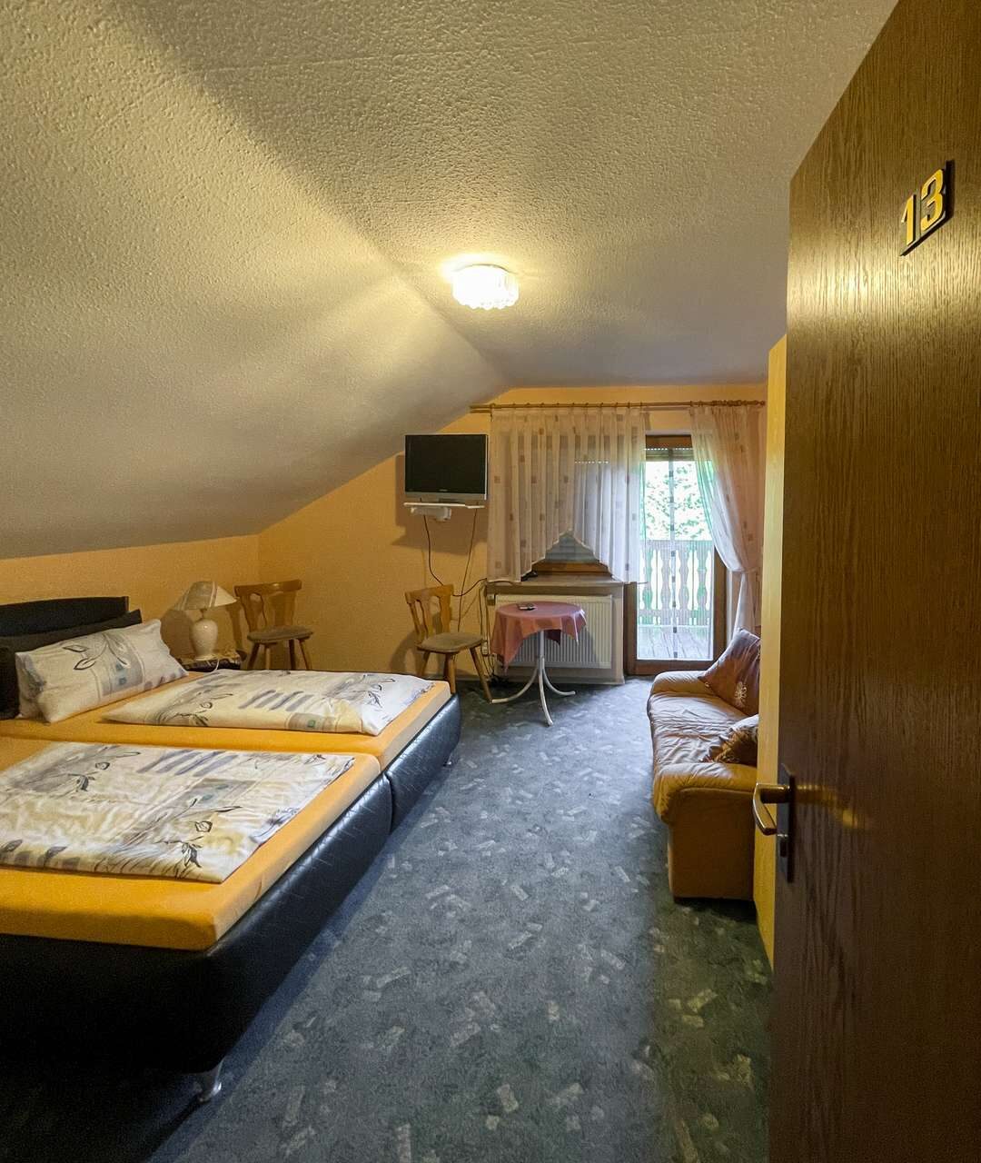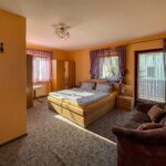 Auf drei Etagen erstreckt sich eine durchdachte Wohn- und Nutzfläche, die viel Raum für kreative Nutzungskonzepte lässt. Dazu kommen insgesamt 13 Gästezimmer – alle mit Dusche und WC, viele davon mit Balkon – bieten komfortable Übernachtungsmöglichkeiten. Ein separates Massagezimmer schafft zusätzlichen Mehrwert, ob für Wellnessangebote oder als ruhiger Rückzugsort.