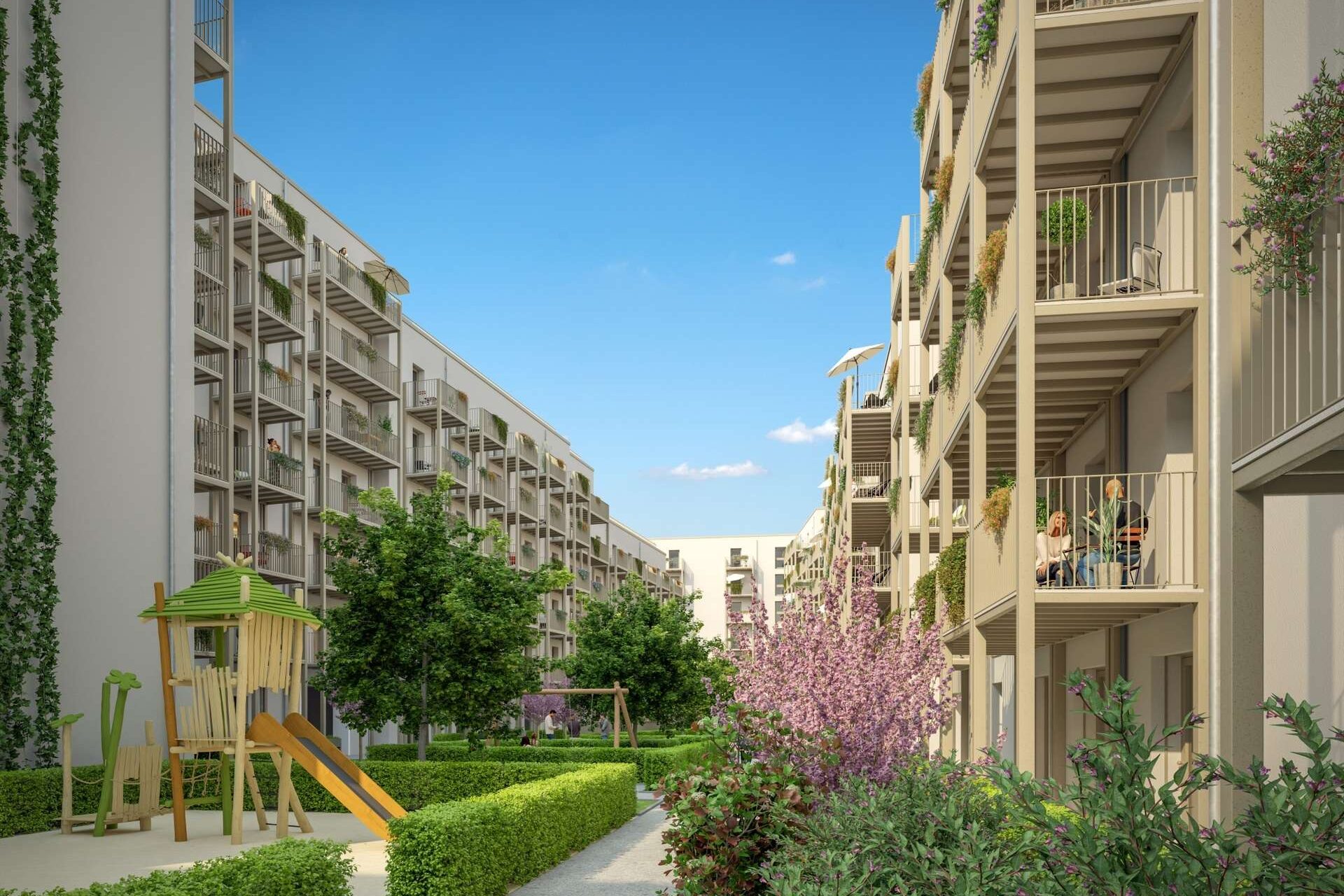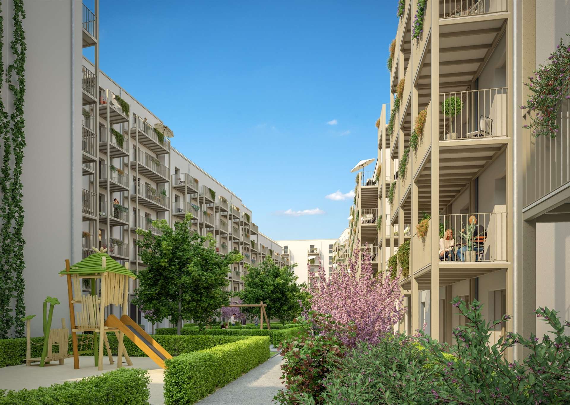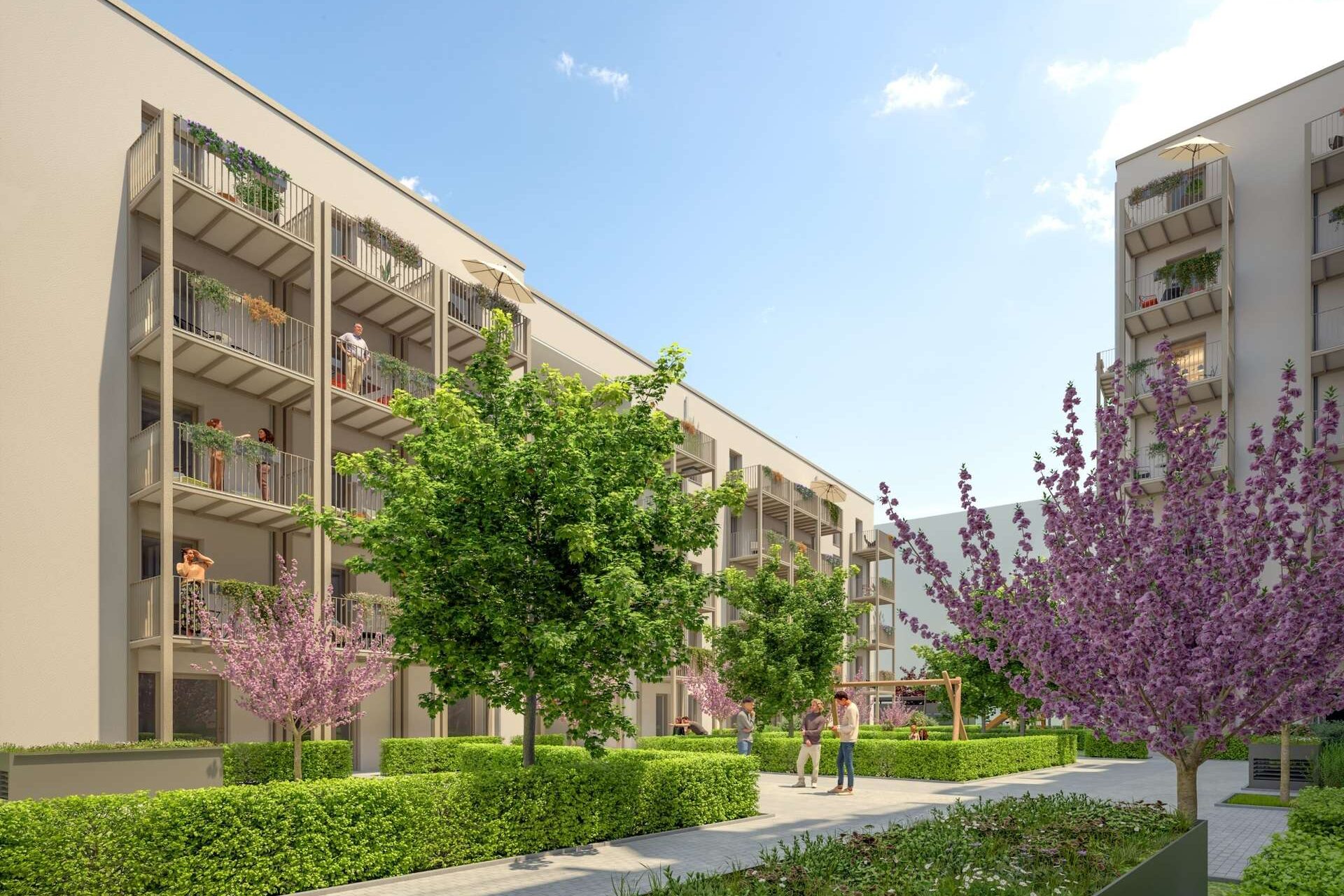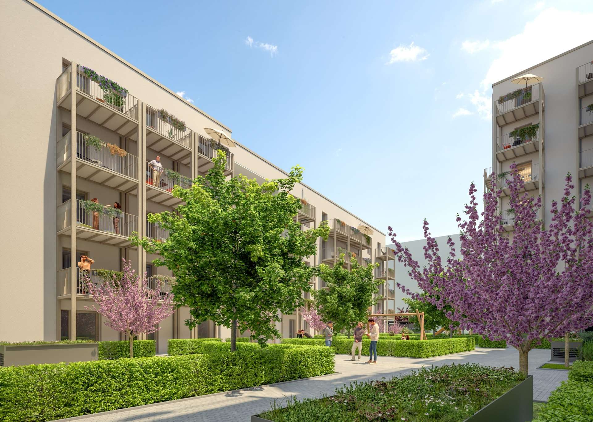 Zugleich bietet das Quartier eine hohe Lebensqualität: Begrünte Wege, neue Aufenthaltsflächen und kurze Wege zu Naherholungsgebieten schaffen ein angenehmes Wohnumfeld, das urbanes Leben und Ruhe ideal vereint.