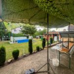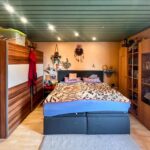 Die zweite Wohneinheit umfasst großzügige 146 m² und erstreckt sich ebenfalls über zwei Etagen. Hier finden sich sechs Zimmer, drei Badezimmer und eine Küche sowie ein Dachboden und ein Balkon.