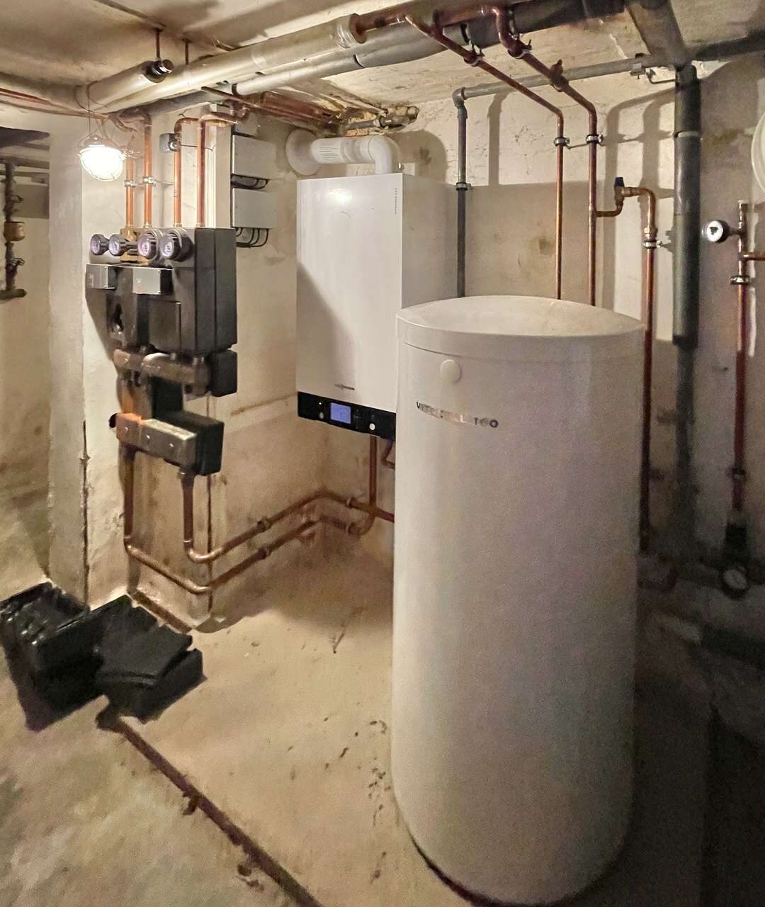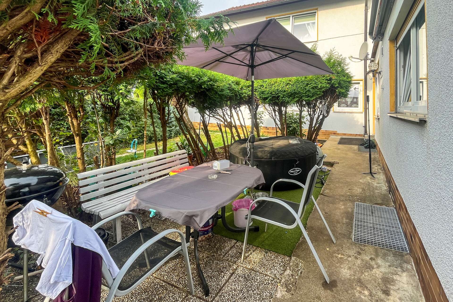 Die erste Wohneinheit erstreckt sich über 120 m² und wurde im Jahr 2022 komplett renoviert. Sie bietet insgesamt fünf Zimmer, zwei Badezimmer, zwei Küchen und einen Balkon, der sich über zwei Etagen zieht.