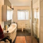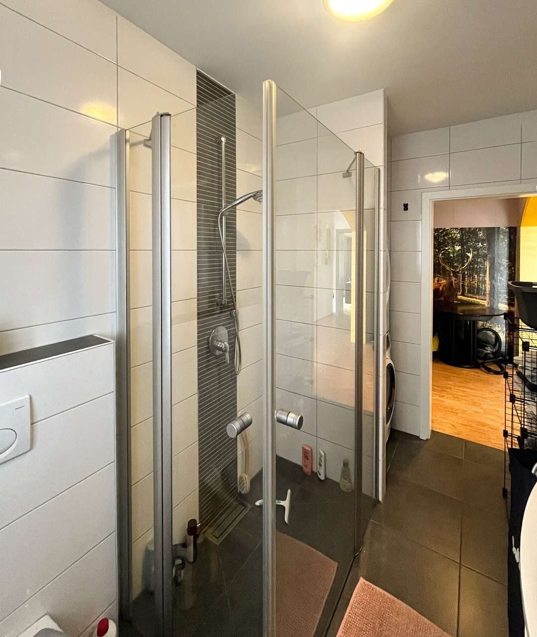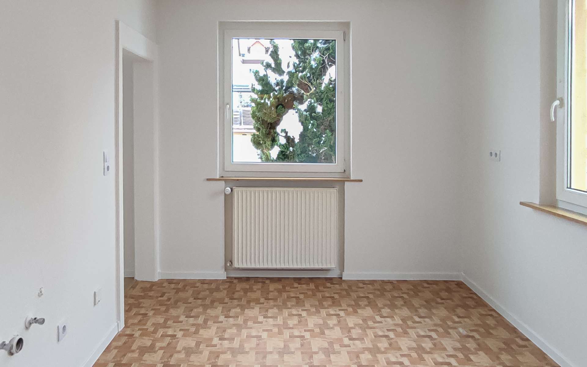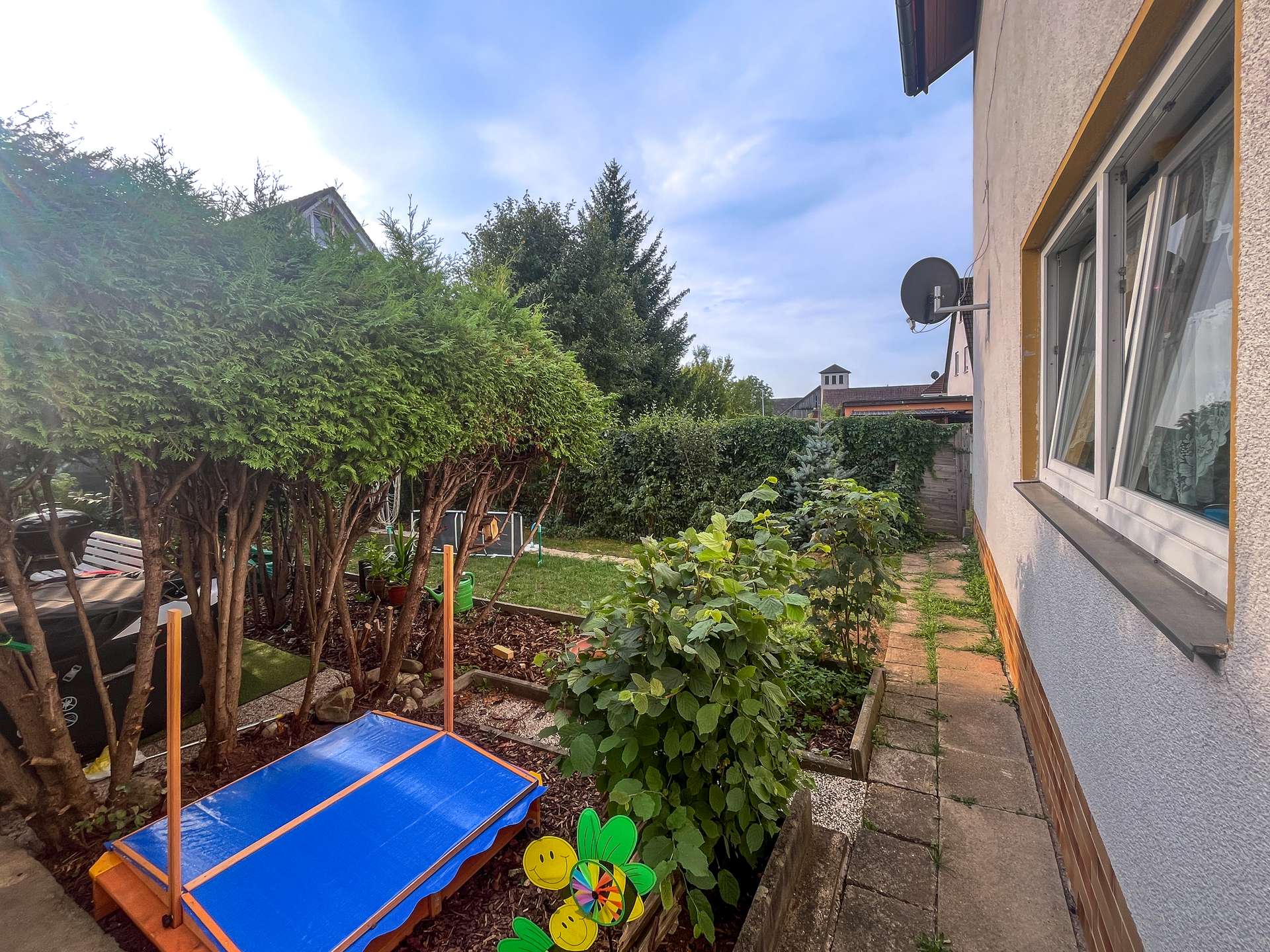 Die dritte Wohneinheit befindet sich im Erdgeschoss und bietet eine Wohnfläche von 81 m². Sie teilt sich in drei Zimmer, eine Küche und ein modernes Duschbad auf. Vom Wohnzimmer aus gelangen die Mieter direkt in ihren eigenen Gartenanteil, der ideal für entspannte Stunden im Freien ist.