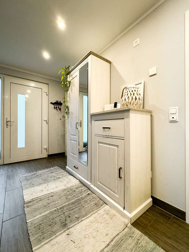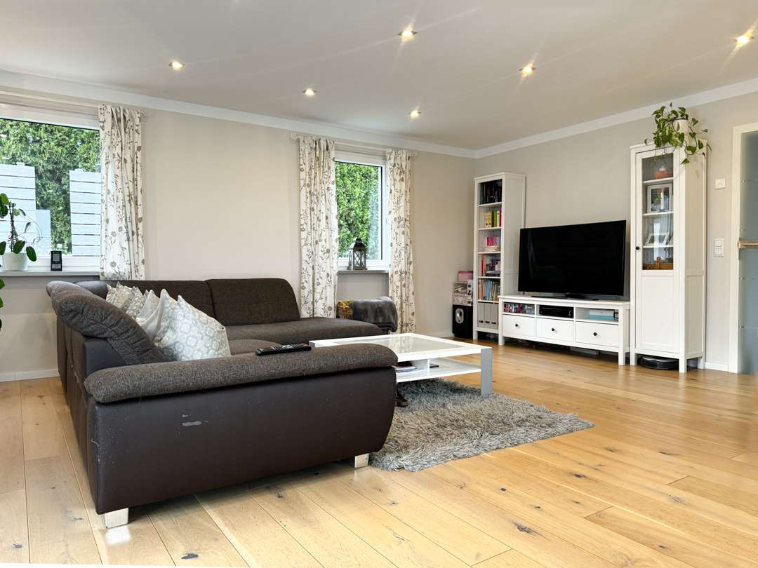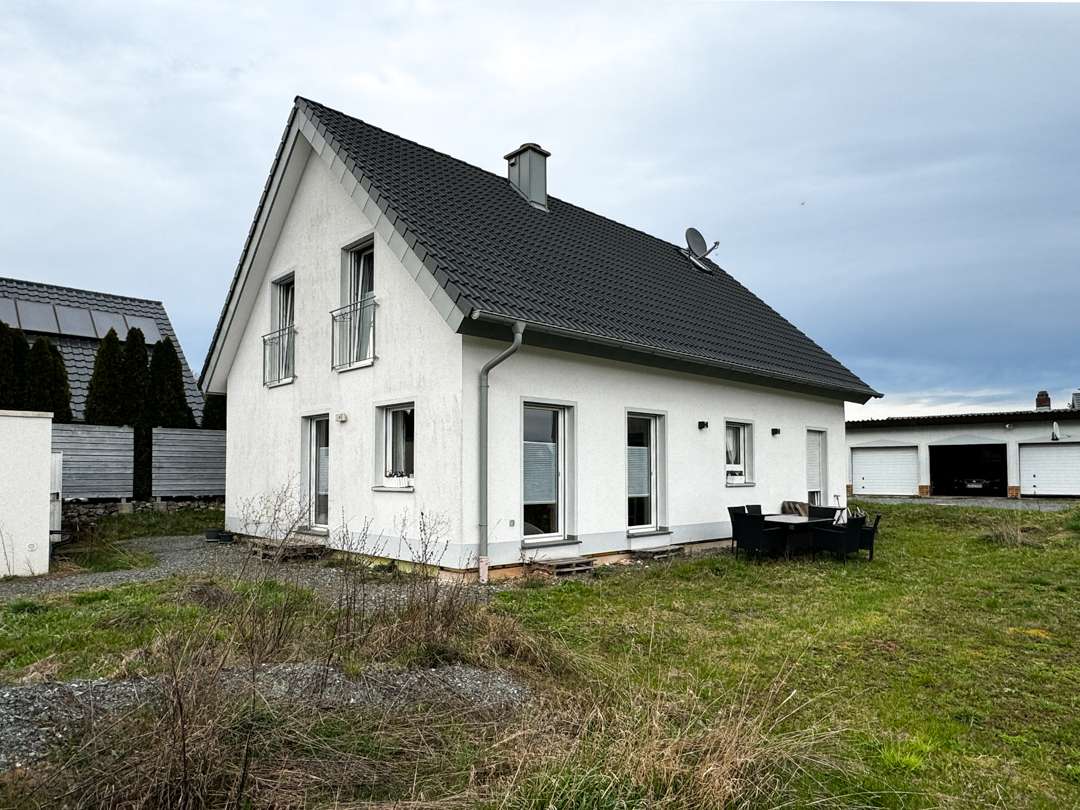 Das frei stehende Einfamilienhaus mit 149 m² Wohnfläche wurde erst 2015 auf dem 658 m² großen Grundstück erbaut und mit modernster Technik im Bereich der Energieeffizienz ausgestattet. Das Haus bietet zudem einen ca. 320 m² großen Garten, sowie eine Doppelgarage mit Sektionaltoren und geschotterten Hof.